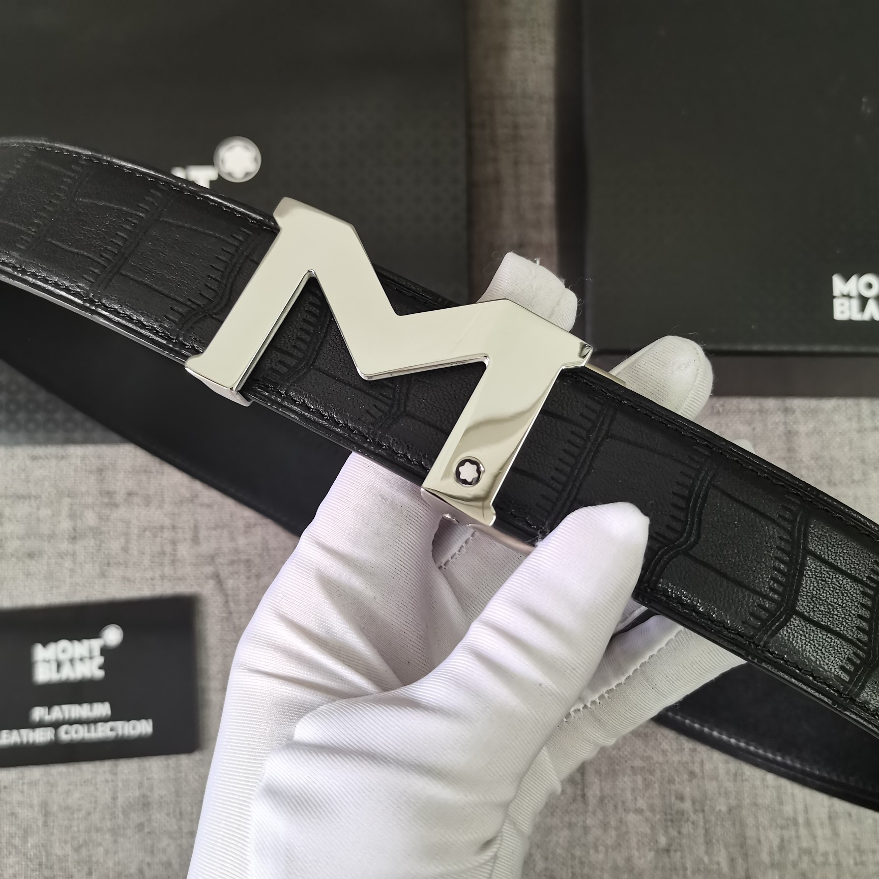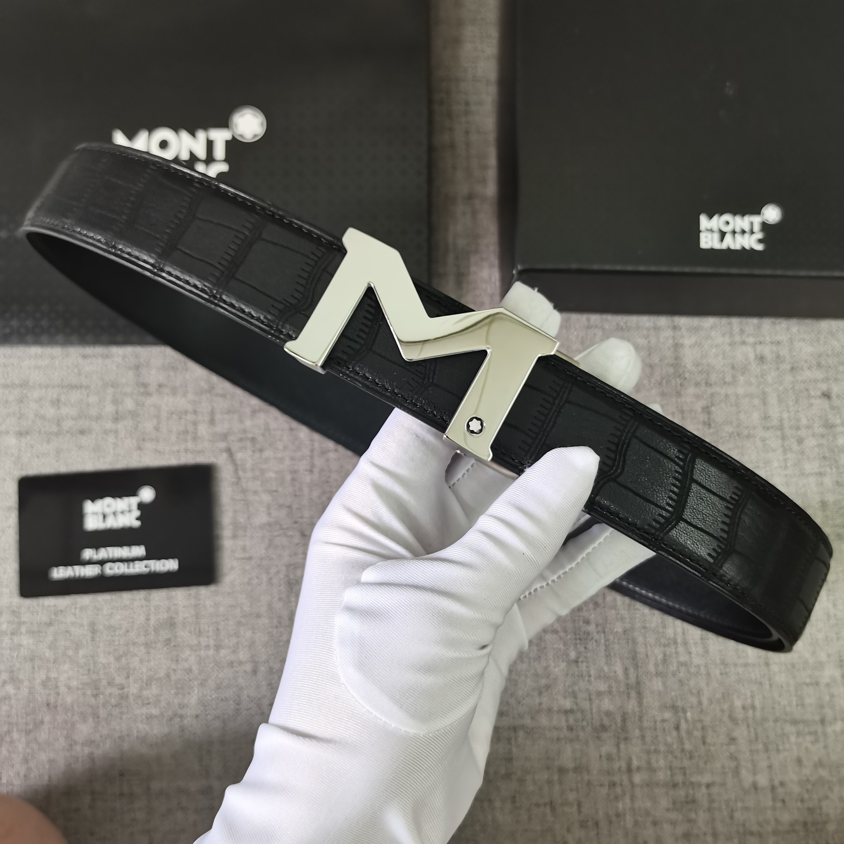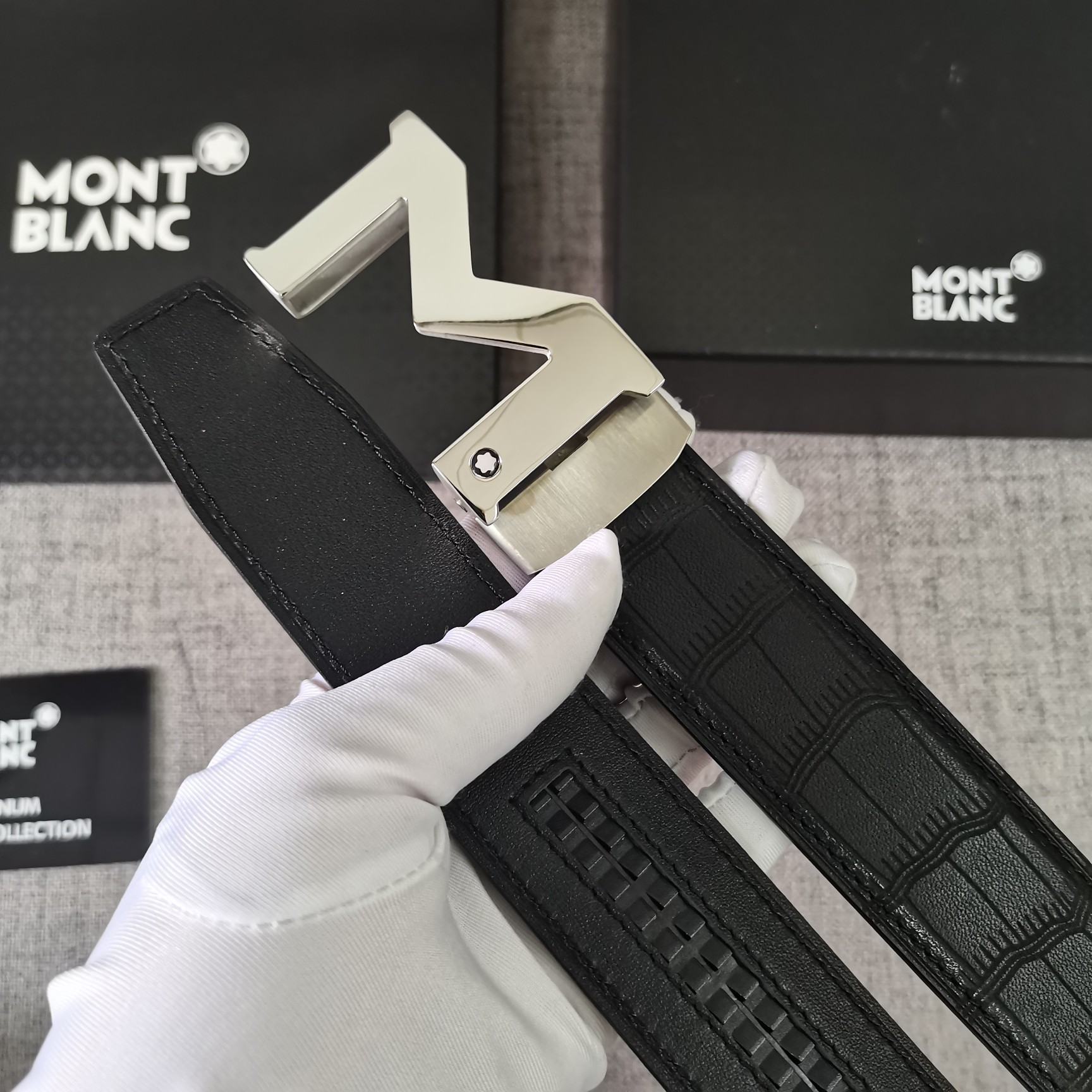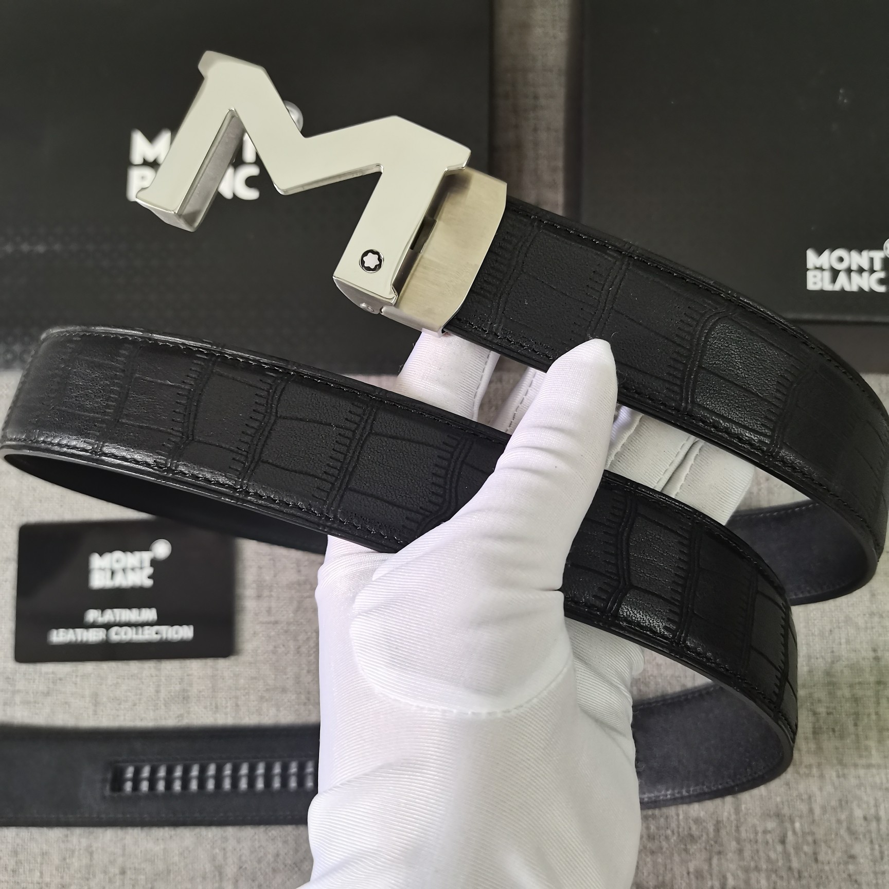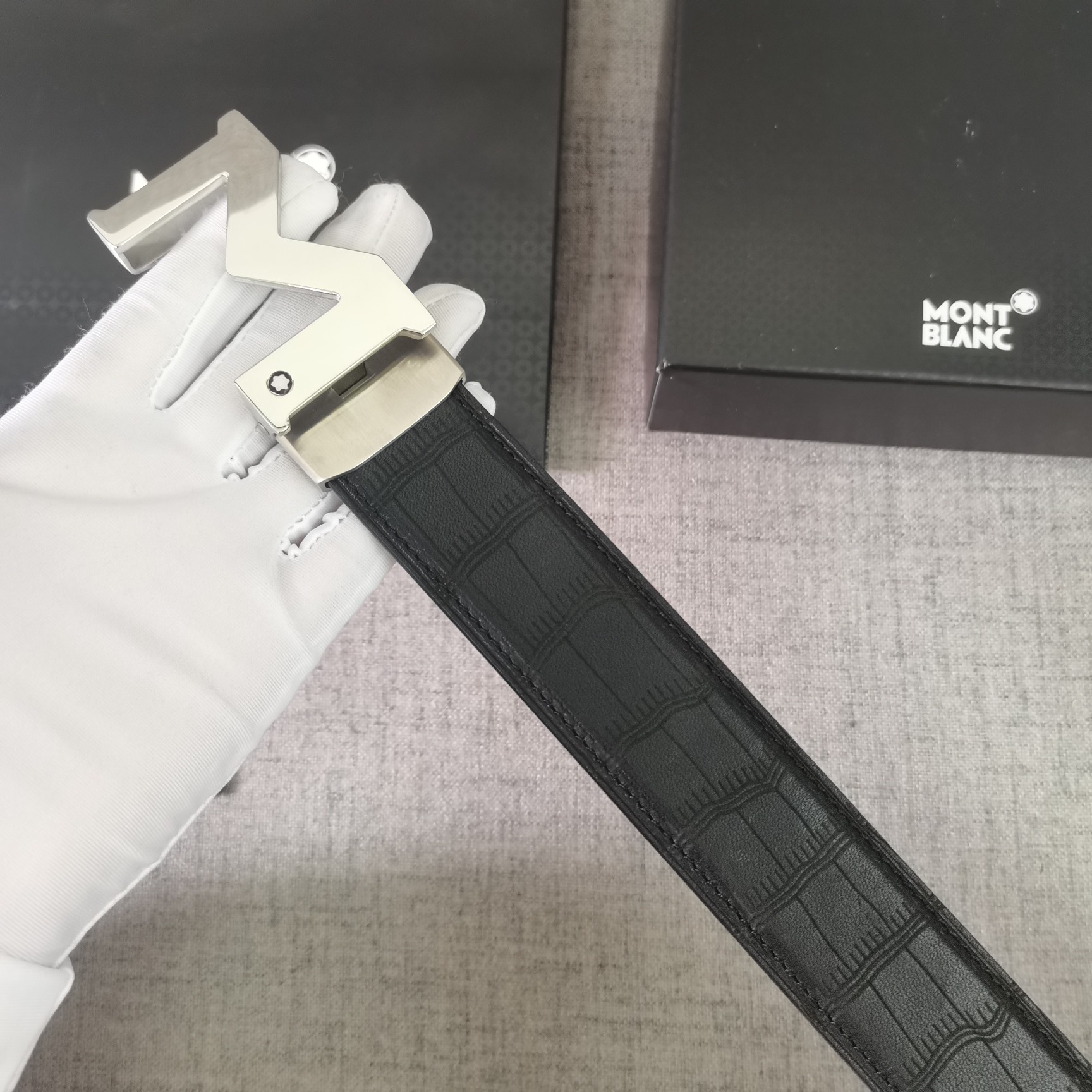 This belt is AAAAA 1:1 quality (superb). Materials used are identical to the original ones. Montblanc trademark marks are indistinguishable to the authentic. Photos take by actual belt, what you receive will be 100% same with our photos.