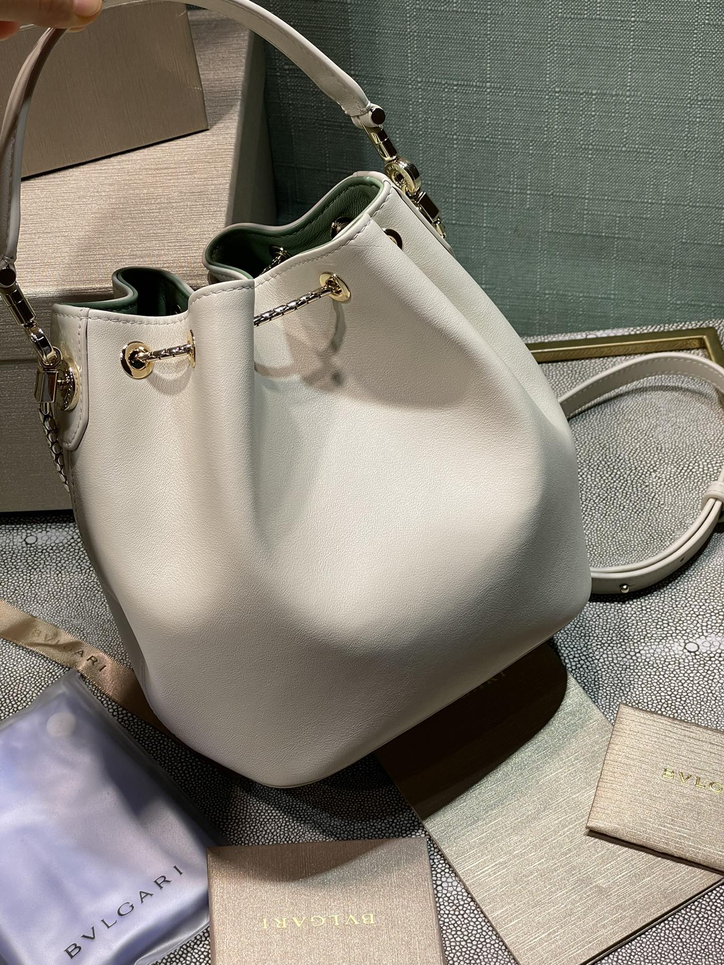 This bags is AAAAA 1:1 quality (superb). Materials used are identical to the original ones. Bulgari trademark marks are indistinguishable to the authentic. Photos take by actual bags, what you receive will be 100% same with our photos.