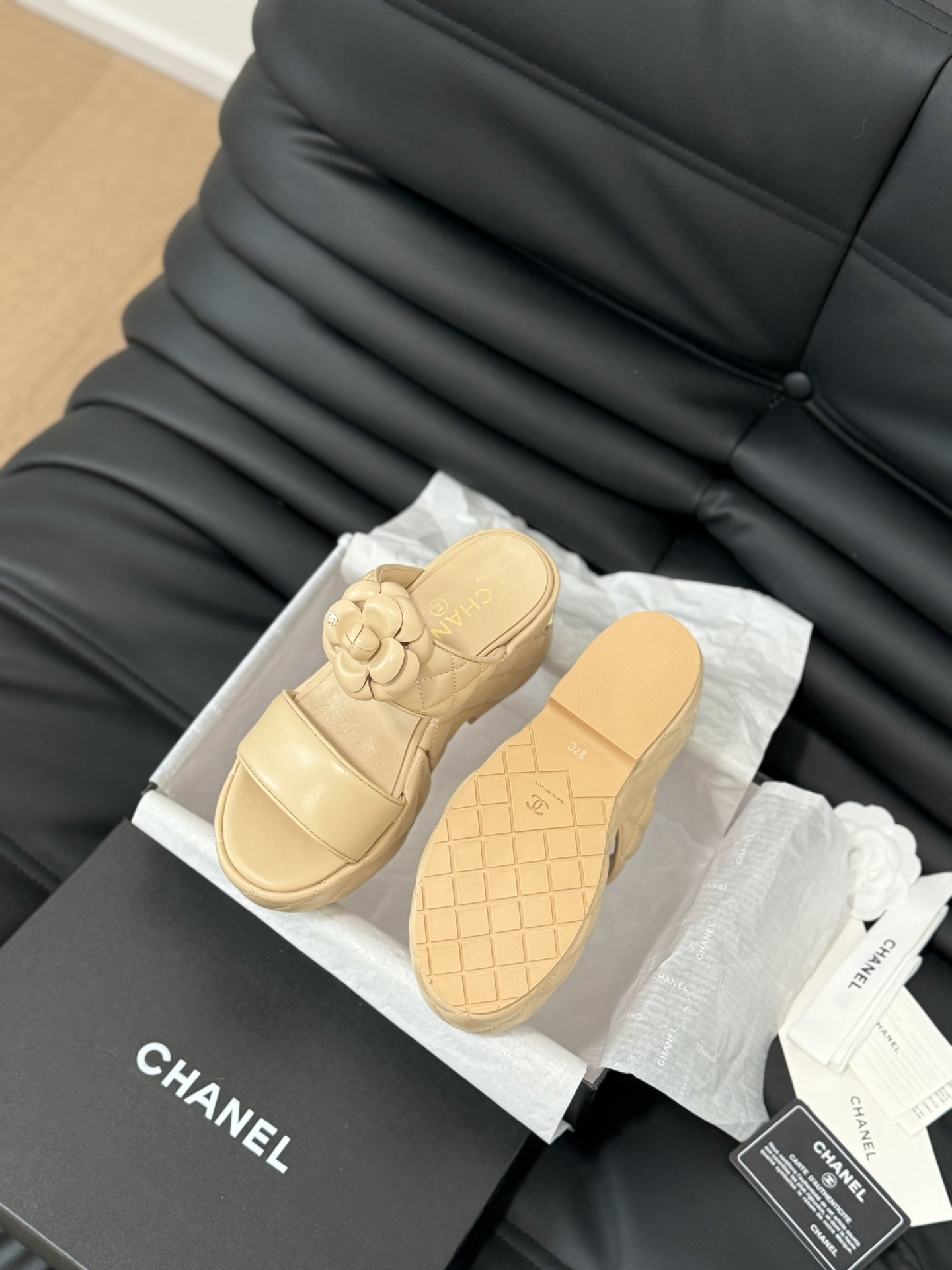 This shoes is AAAAA 1:1 quality (superb). Materials used are identical to the original ones. Chanel trademark marks are indistinguishable to the authentic. Photos take by actual shoes, what you receive will be 100% same with our photos.