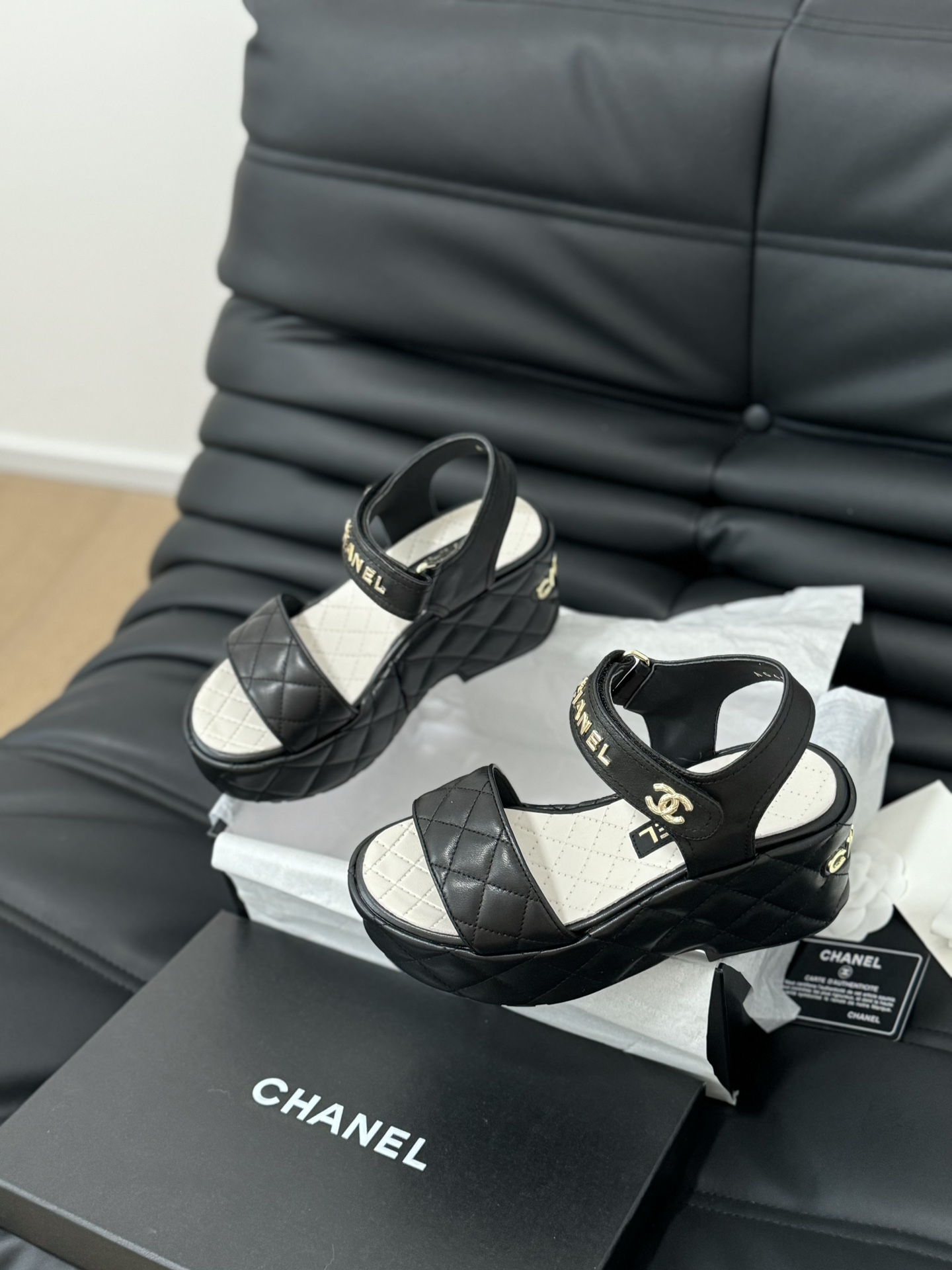 This shoes is AAAAA 1:1 quality (superb). Materials used are identical to the original ones. Chanel trademark marks are indistinguishable to the authentic. Photos take by actual shoes, what you receive will be 100% same with our photos.