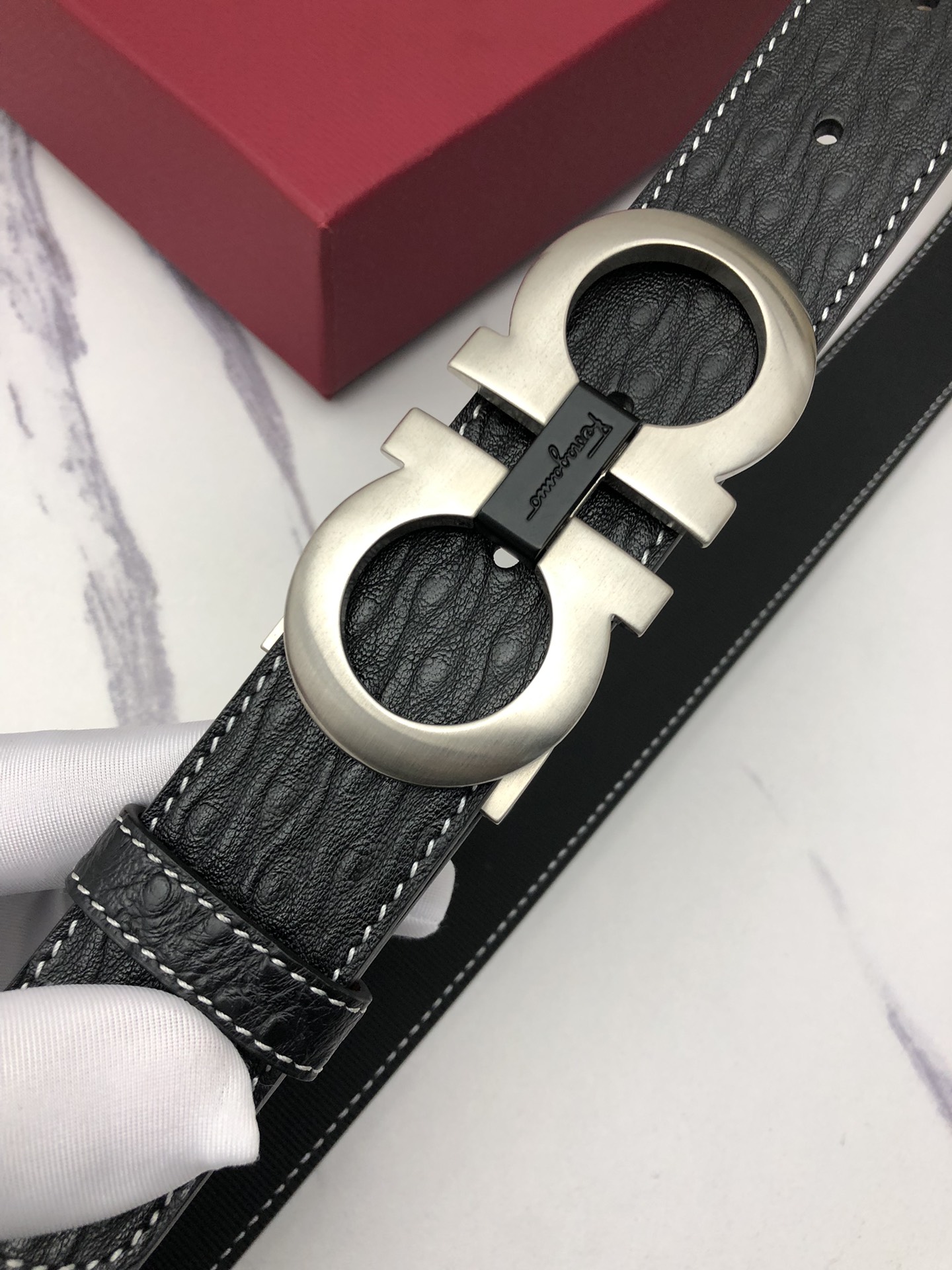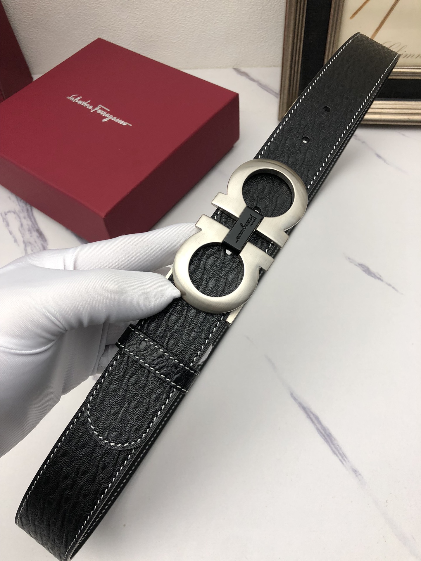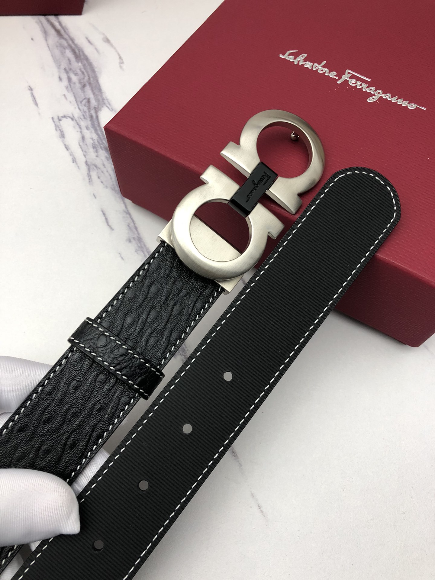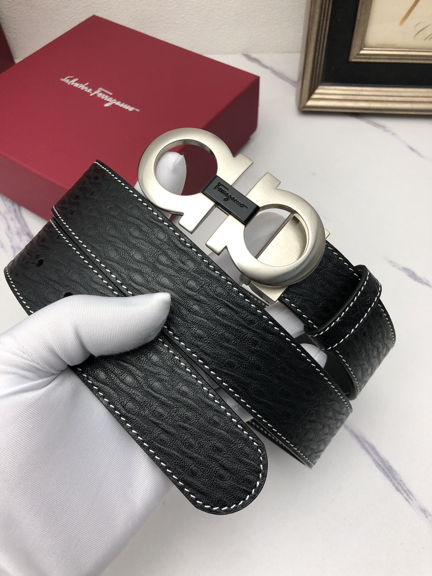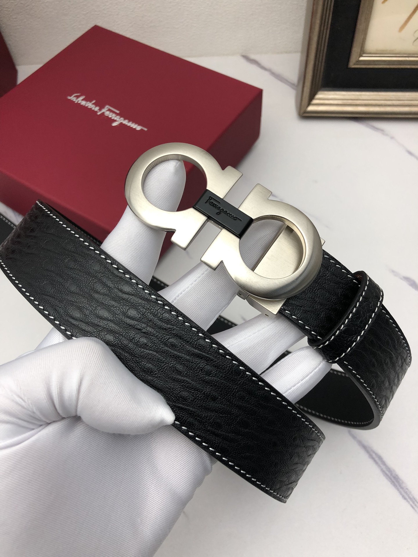 This belt is AAAAA 1:1 quality (superb). Materials used are identical to the original ones. Salvatore Ferragamo trademark marks are indistinguishable to the authentic. Photos take by actual belt, what you receive will be 100% same with our photos.