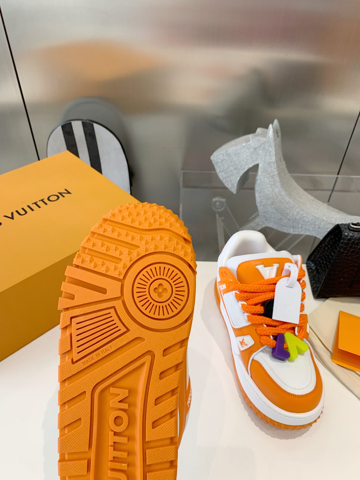 This shoes is AAAAA 1:1 quality (superb). Materials used are identical to the original ones. Louis Vuitton trademark marks are indistinguishable to the authentic. Photos take by actual shoes, what you receive will be 100% same with our photos.