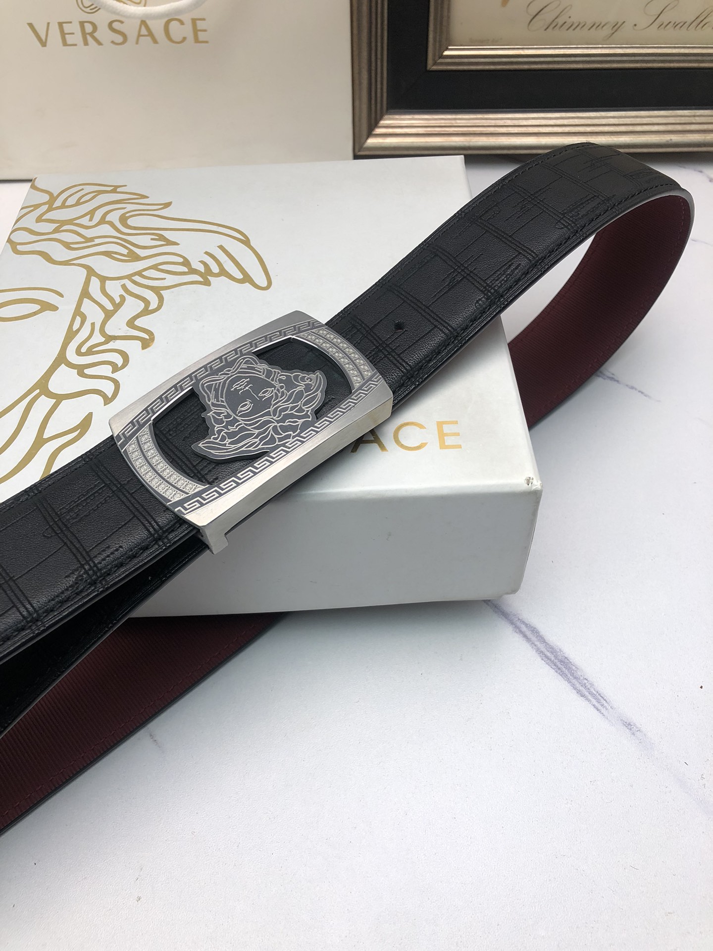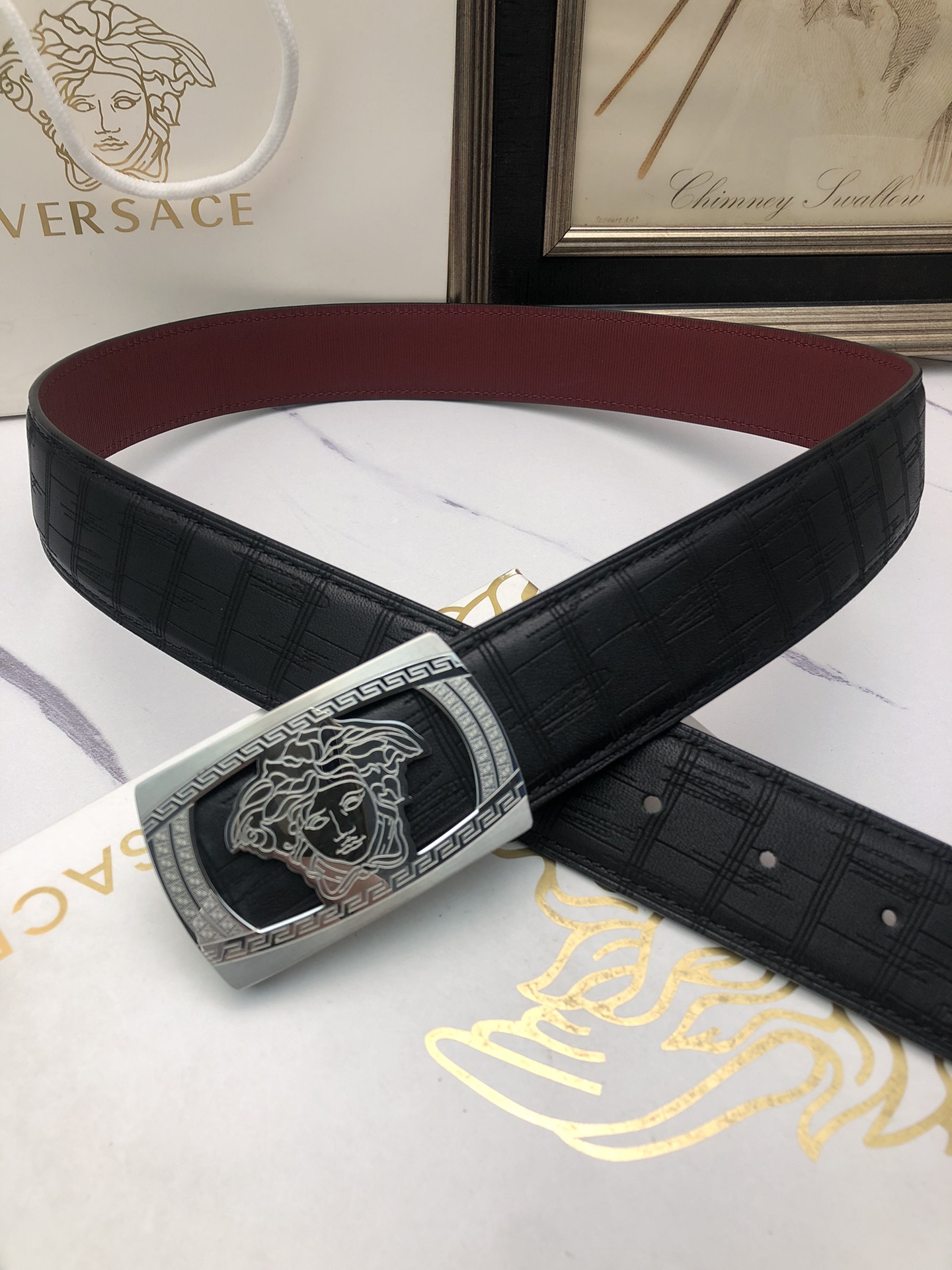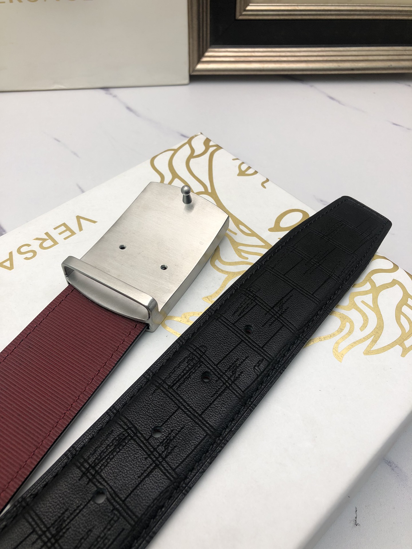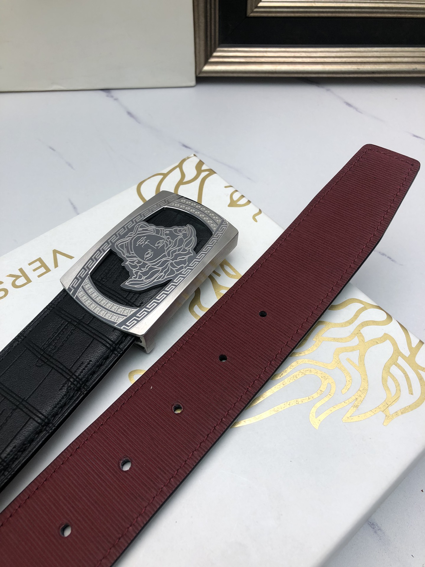 This belt is AAAAA 1:1 quality (superb). Materials used are identical to the original ones. Versace trademark marks are indistinguishable to the authentic. Photos take by actual belt, what you receive will be 100% same with our photos.