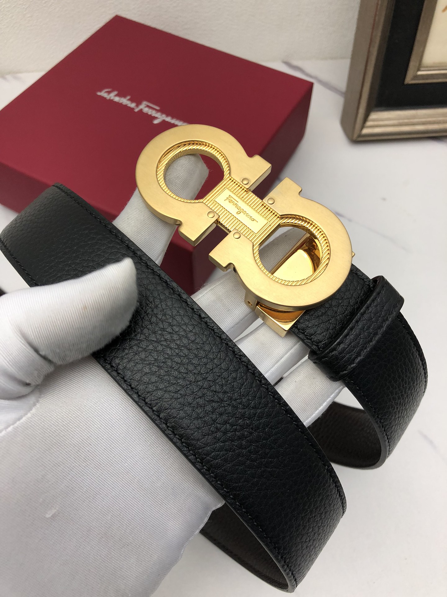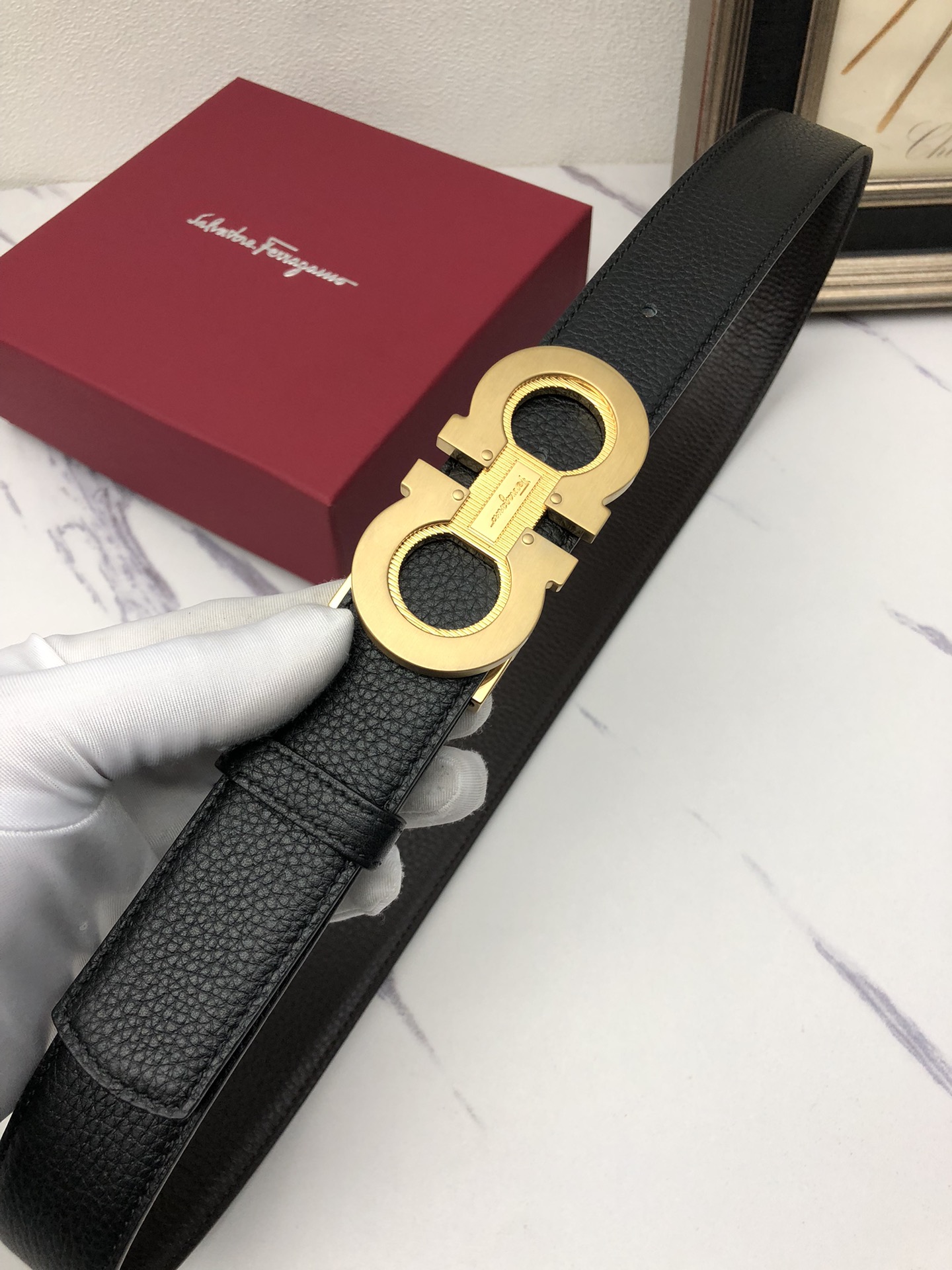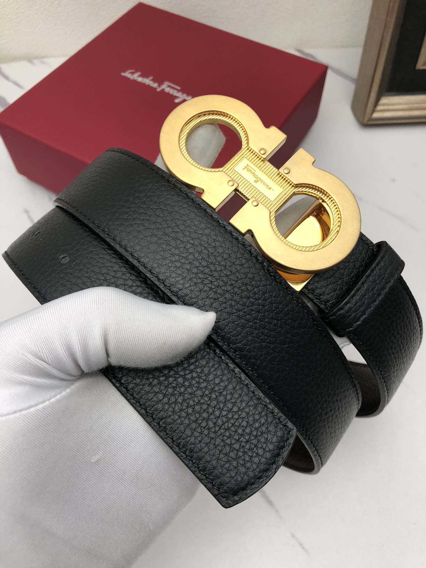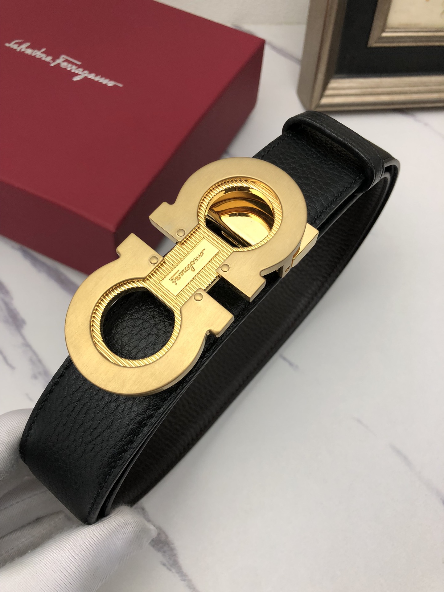 This belt is AAAAA 1:1 quality (superb). Materials used are identical to the original ones. Salvatore Ferragamo trademark marks are indistinguishable to the authentic. Photos take by actual belt, what you receive will be 100% same with our photos.