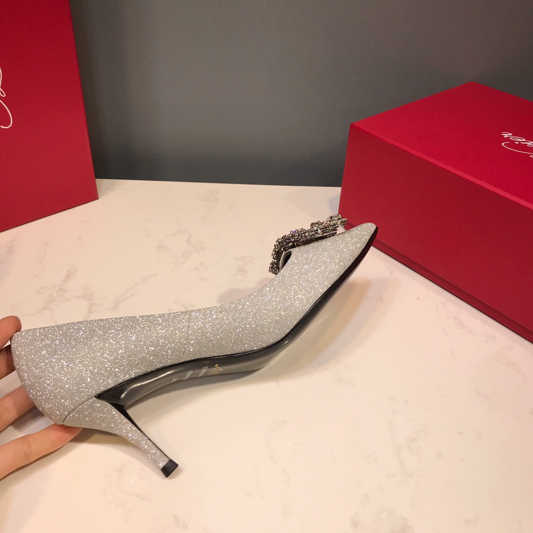 This shoes is AAAAA 1:1 quality (superb). Materials used are identical to the original ones. Roger Vivier trademark marks are indistinguishable to the authentic. Photos take by actual shoes, what you receive will be 100% same with our photos.