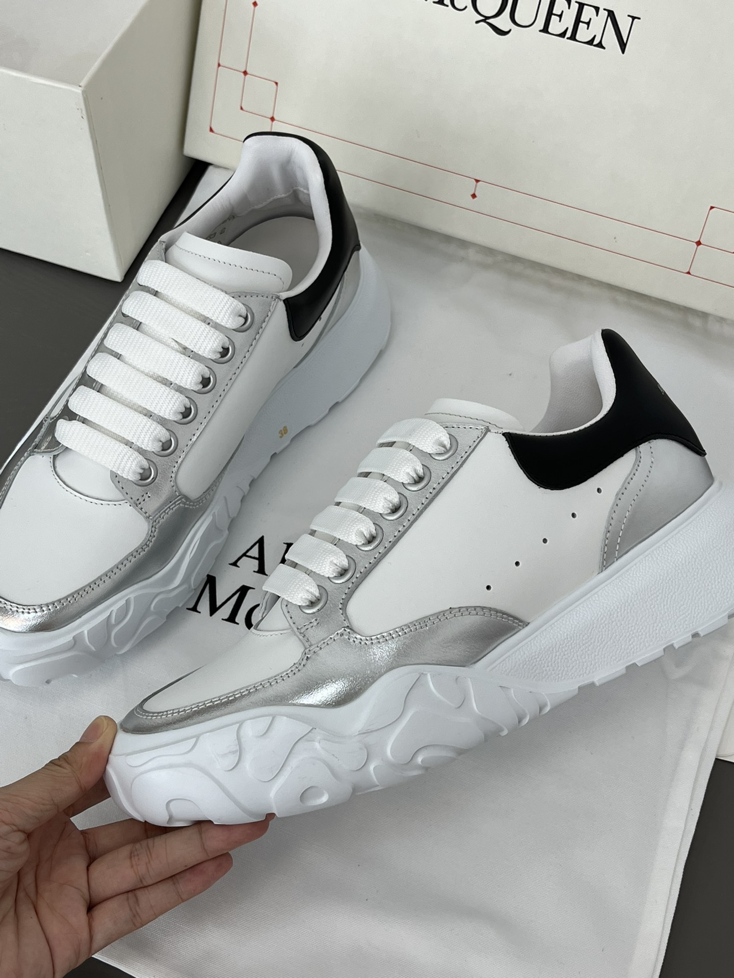 This shoes is AAAAA 1:1 quality (superb). Materials used are identical to the original ones. McQueen trademark marks are indistinguishable to the authentic. Photos take by actual shoes, what you receive will be 100% same with our photos.
