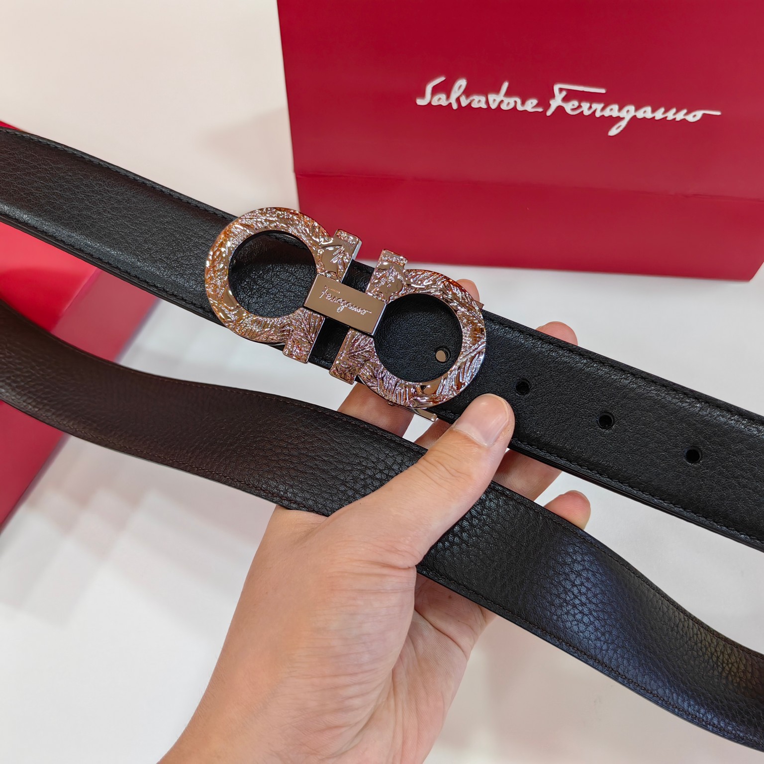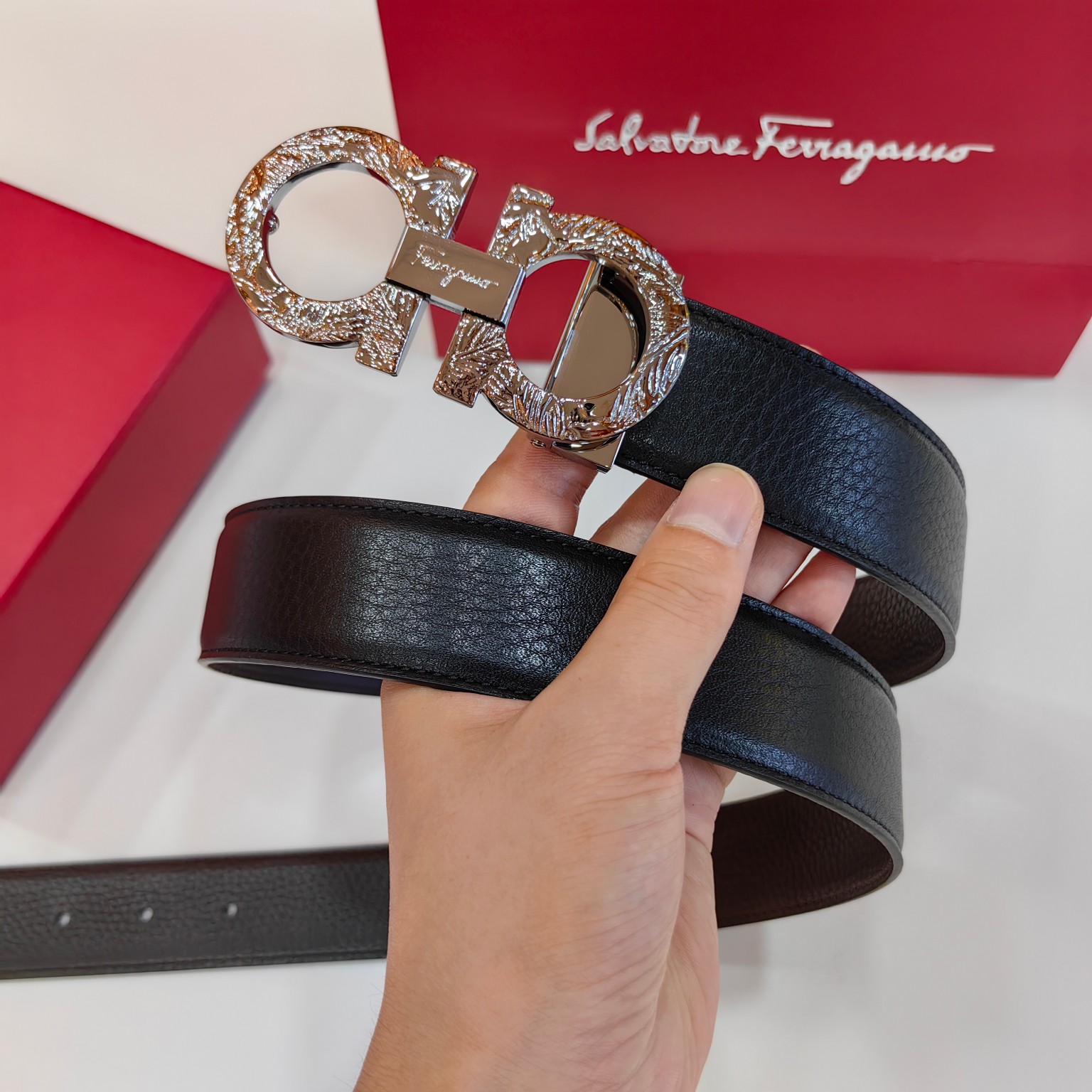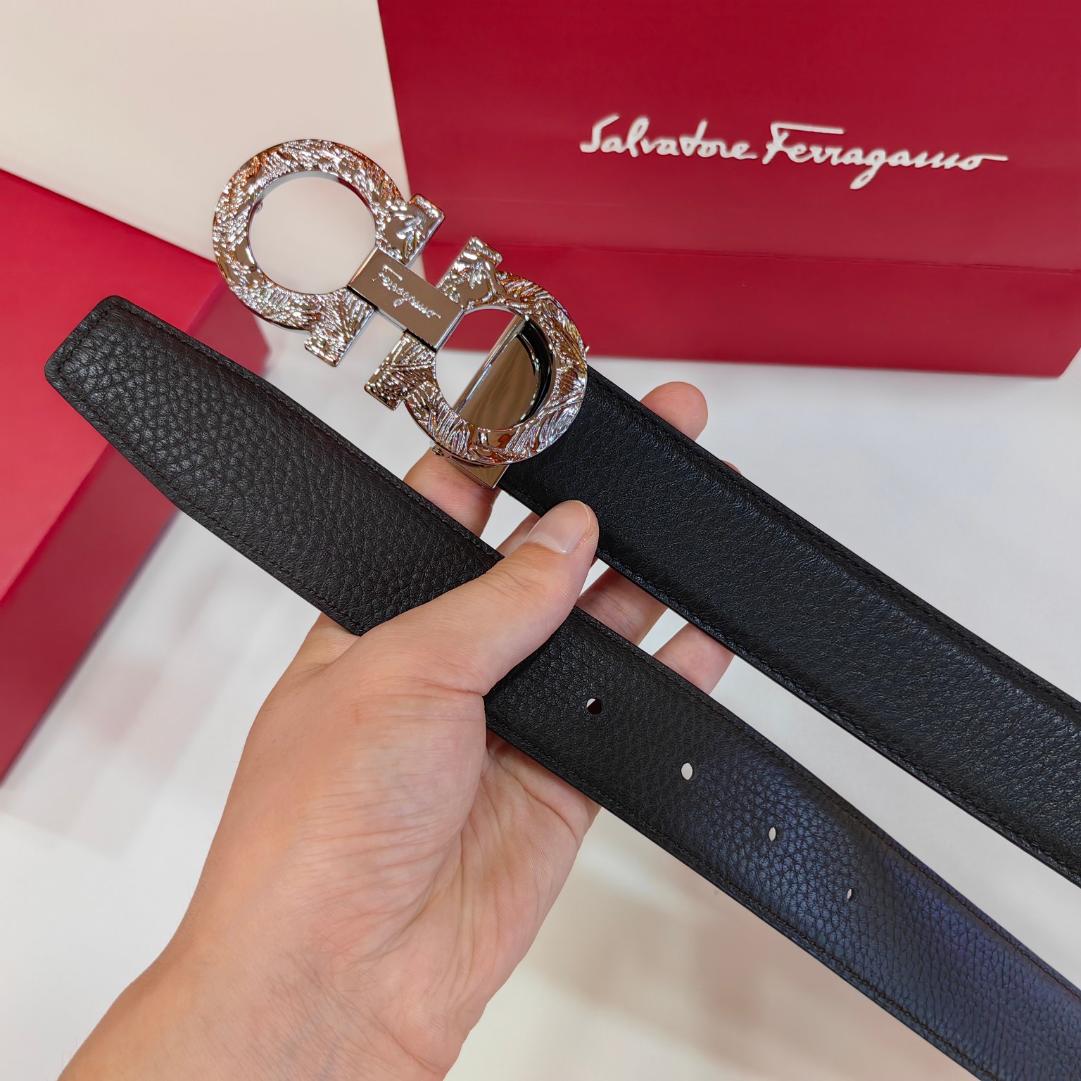 This belt is AAAAA 1:1 quality (superb). Materials used are identical to the original ones. Salvatore Ferragamo trademark marks are indistinguishable to the authentic. Photos take by actual belt, what you receive will be 100% same with our photos.