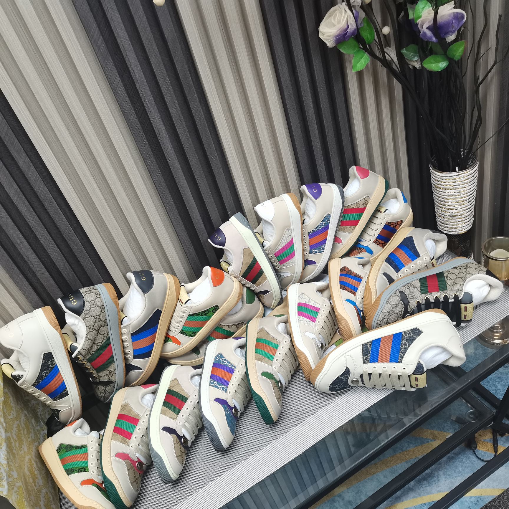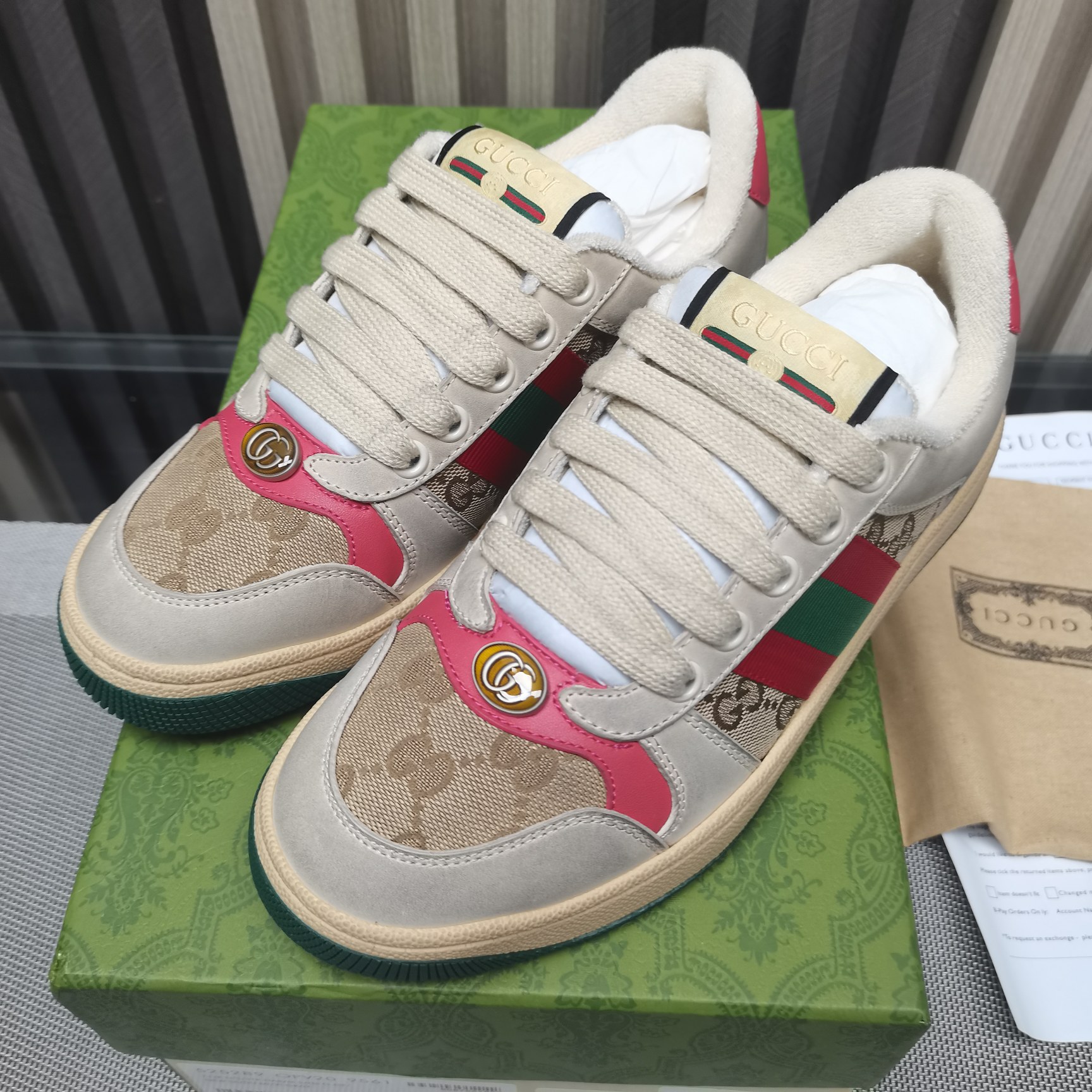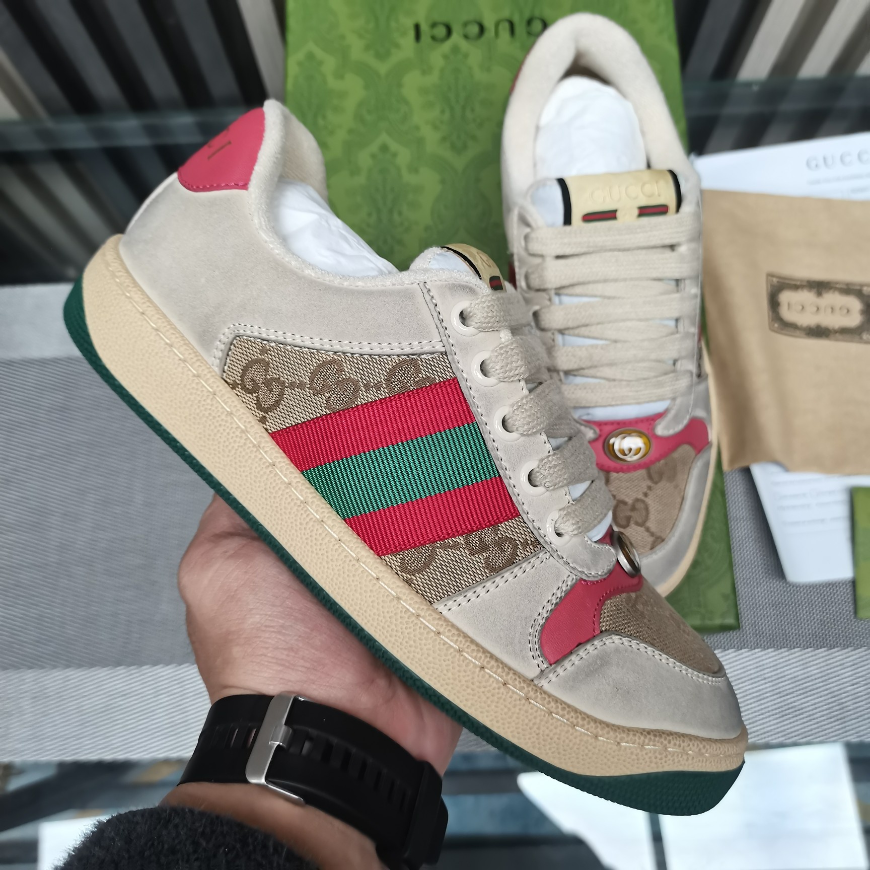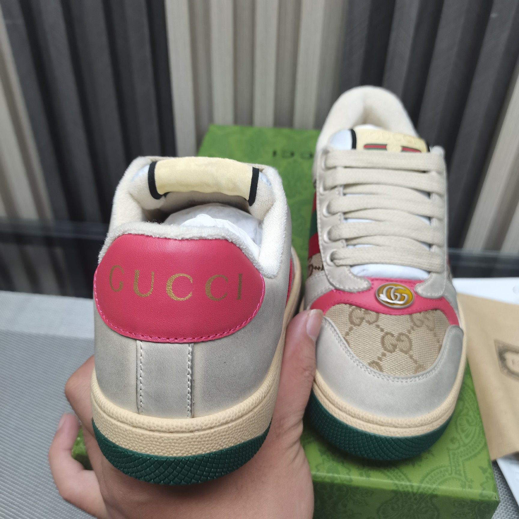 This shoes is AAAAA 1:1 quality (superb). Materials used are identical to the original ones. Gucci trademark marks are indistinguishable to the authentic. Photos take by actual shoes, what you receive will be 100% same with our photos.