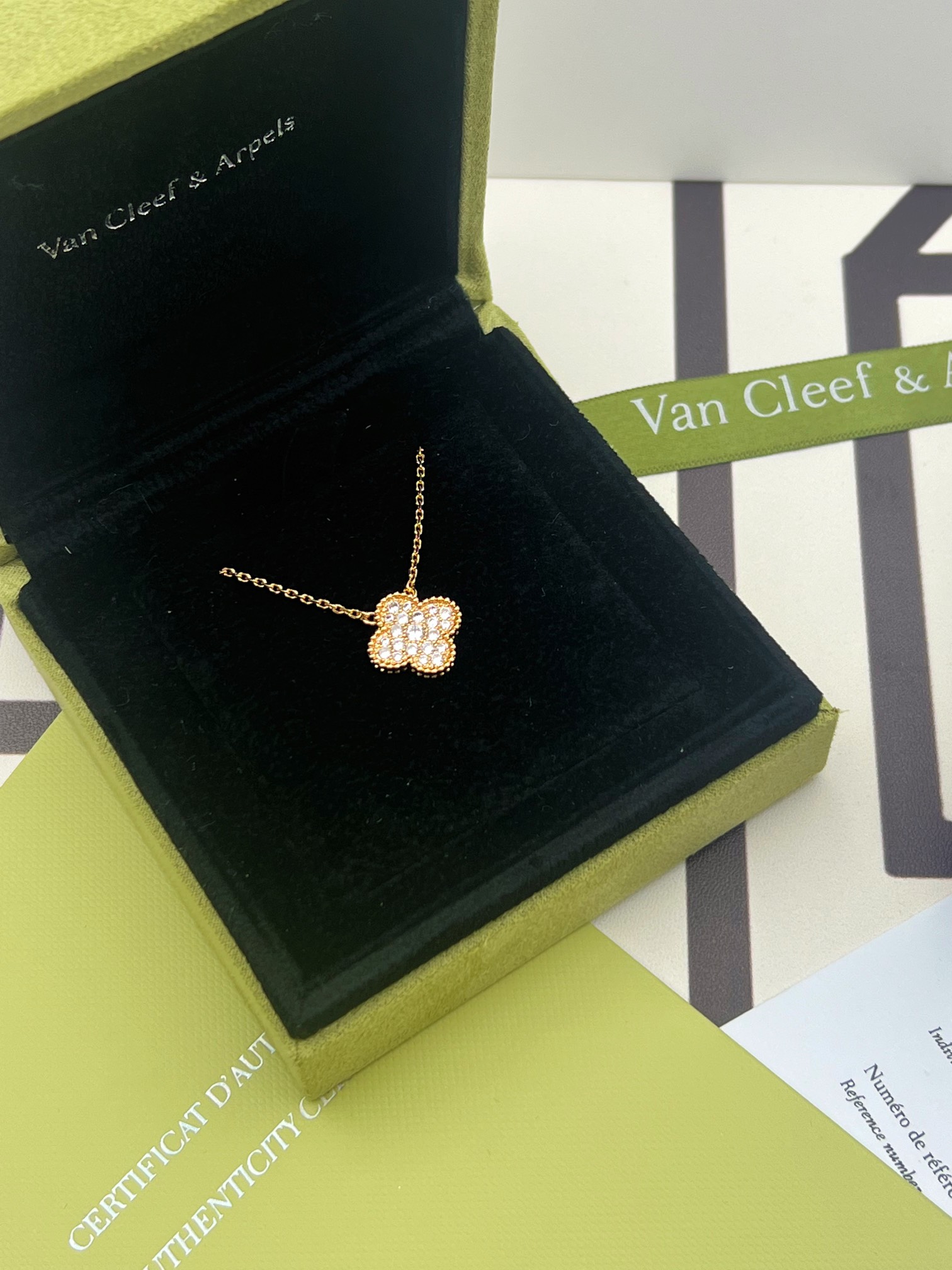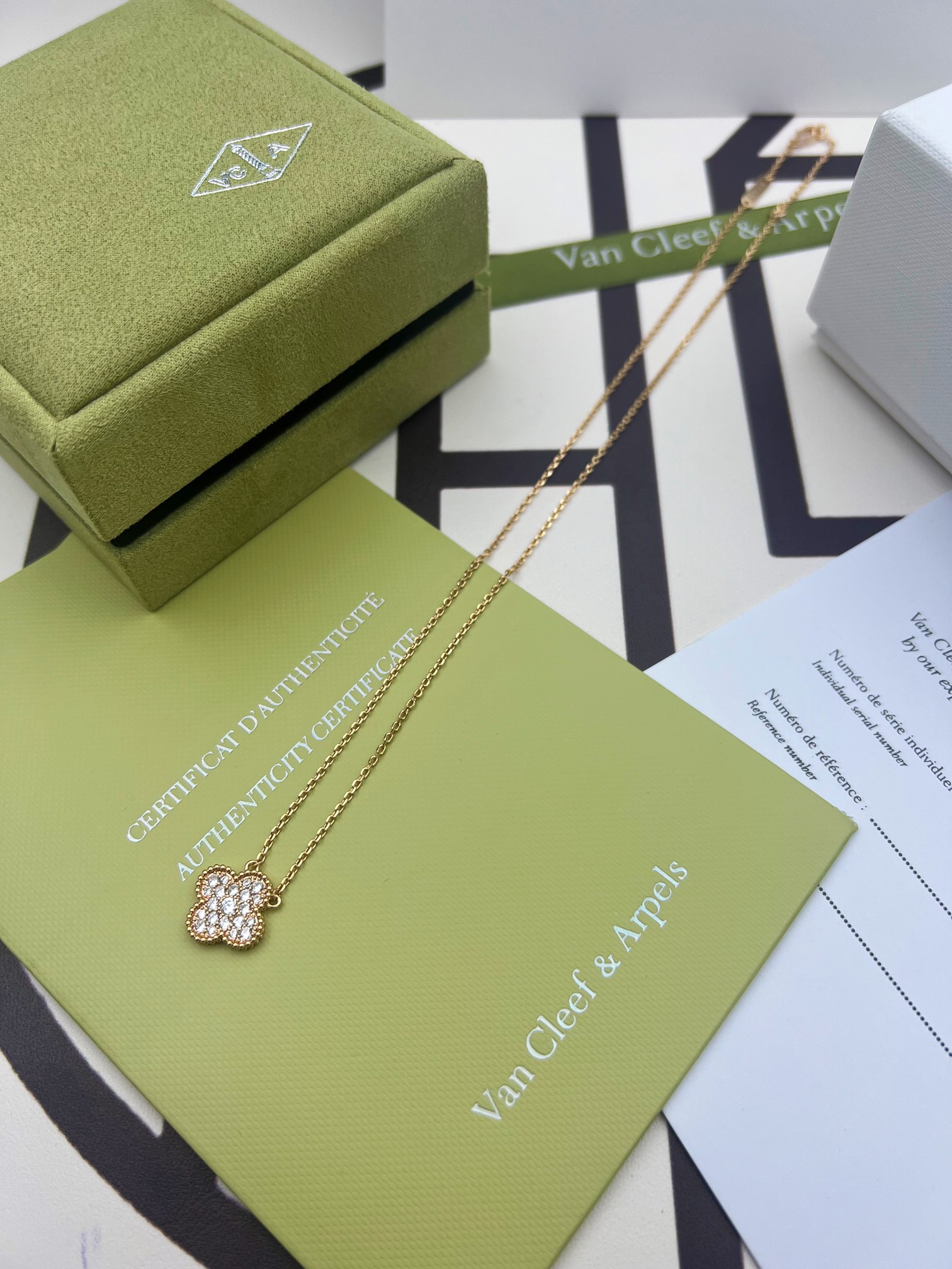 This jewelry is AAAAA 1:1 quality (superb). Materials used are identical to the original ones. Van Cleef & Arpels trademark marks are indistinguishable to the authentic. Photos take by actual jewelry, what you receive will be 100% same with our photos.