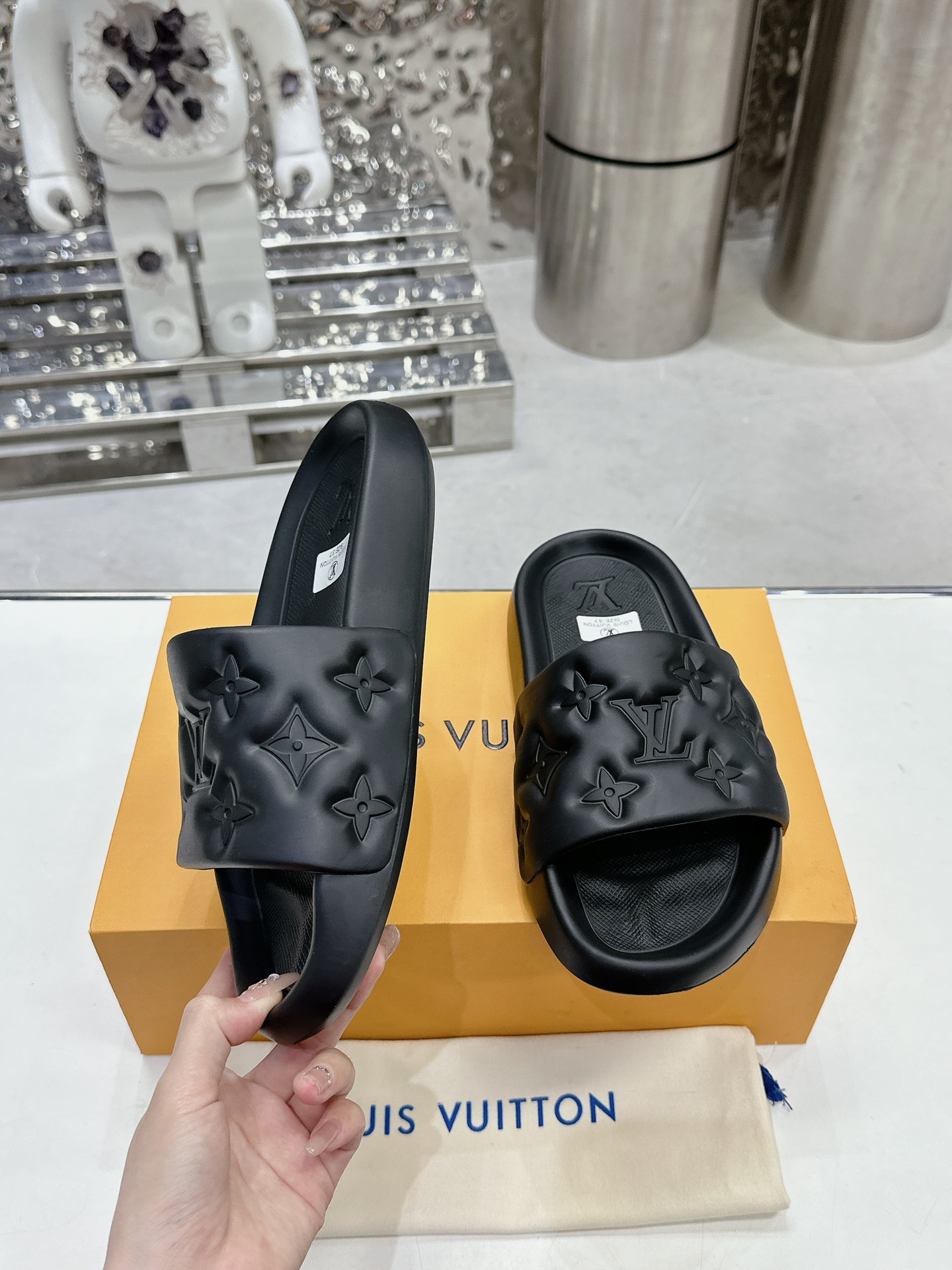 This shoes is AAAAA 1:1 quality (superb). Materials used are identical to the original ones. Louis Vuitton trademark marks are indistinguishable to the authentic. Photos take by actual shoes, what you receive will be 100% same with our photos.