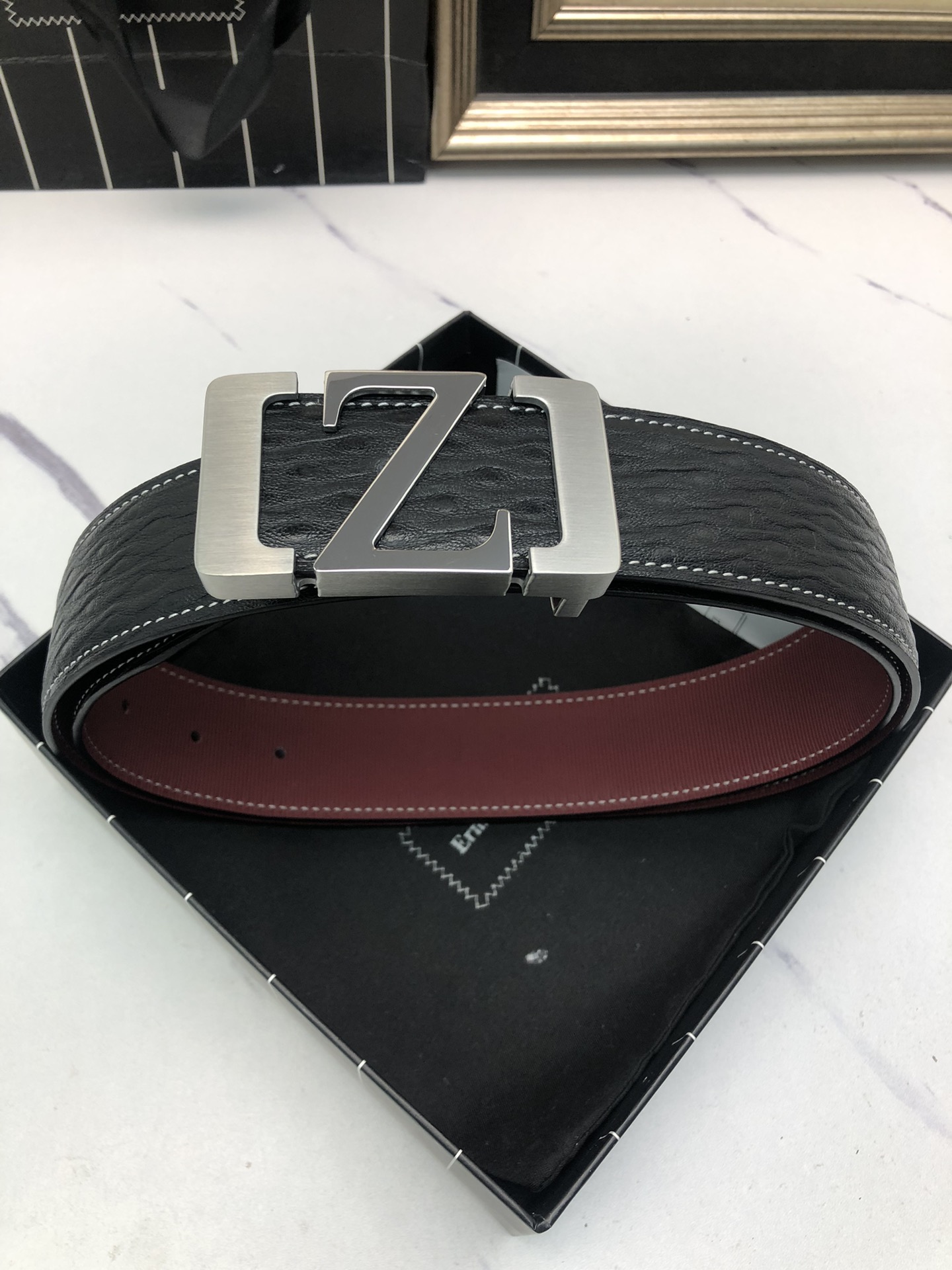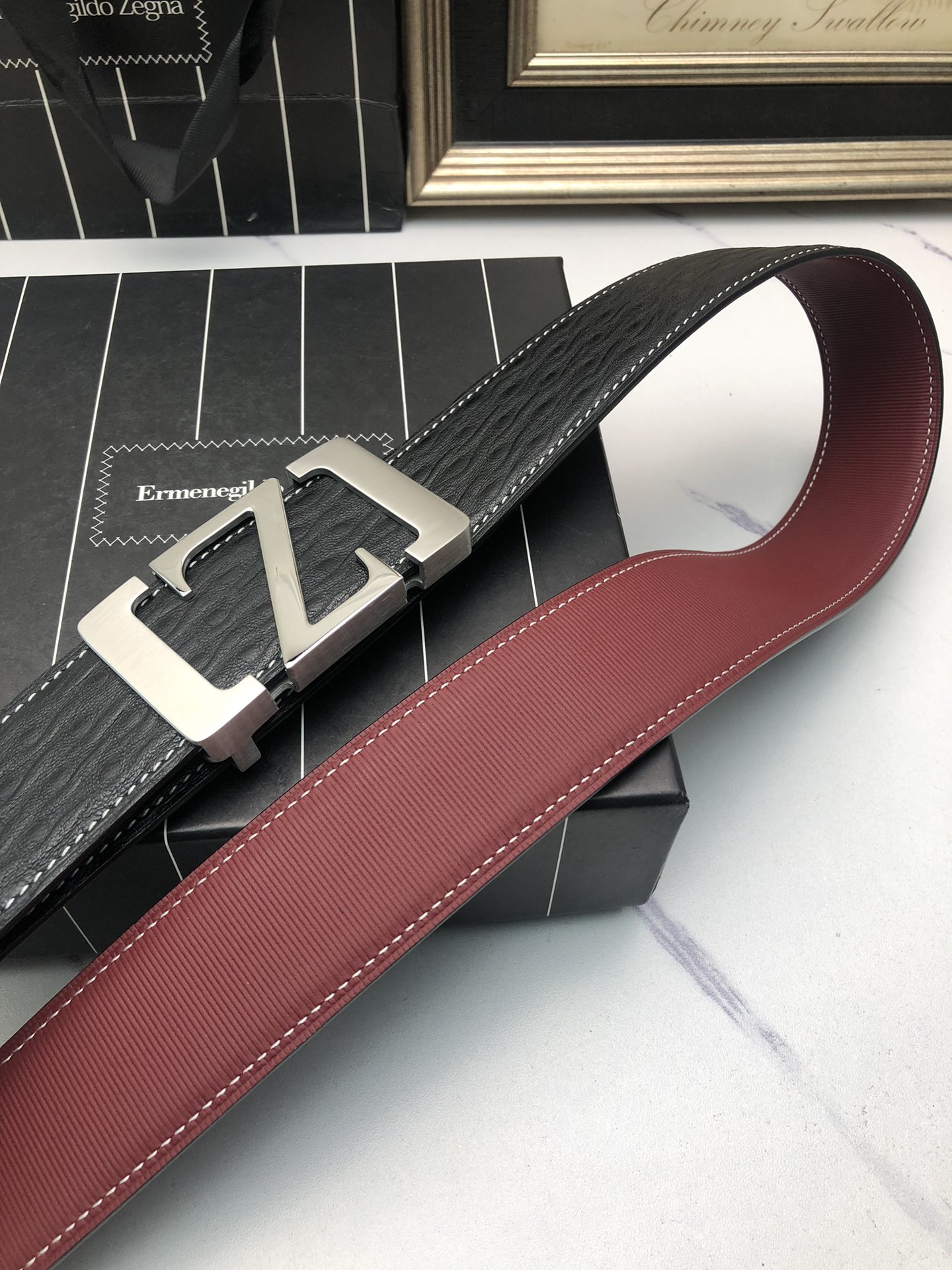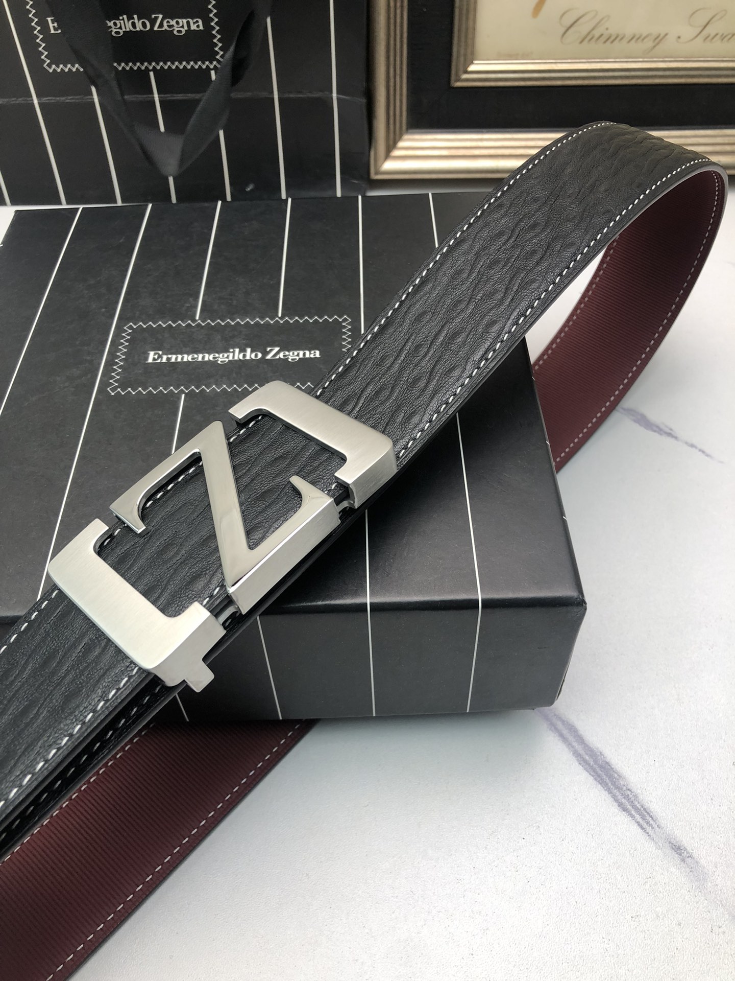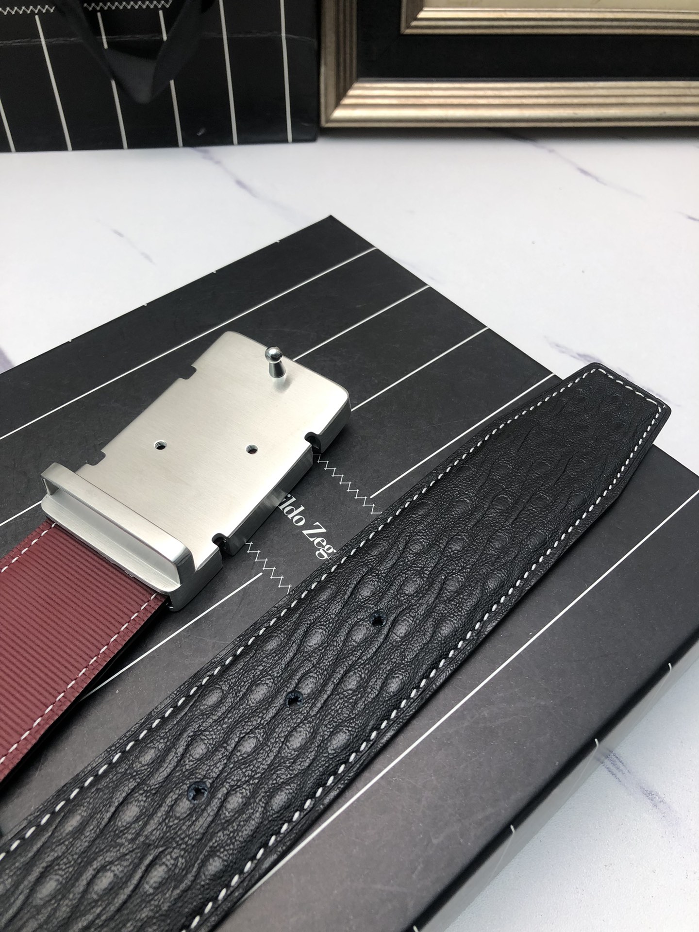 This belt is AAAAA 1:1 quality (superb). Materials used are identical to the original ones. Zegna trademark marks are indistinguishable to the authentic. Photos take by actual belt, what you receive will be 100% same with our photos.