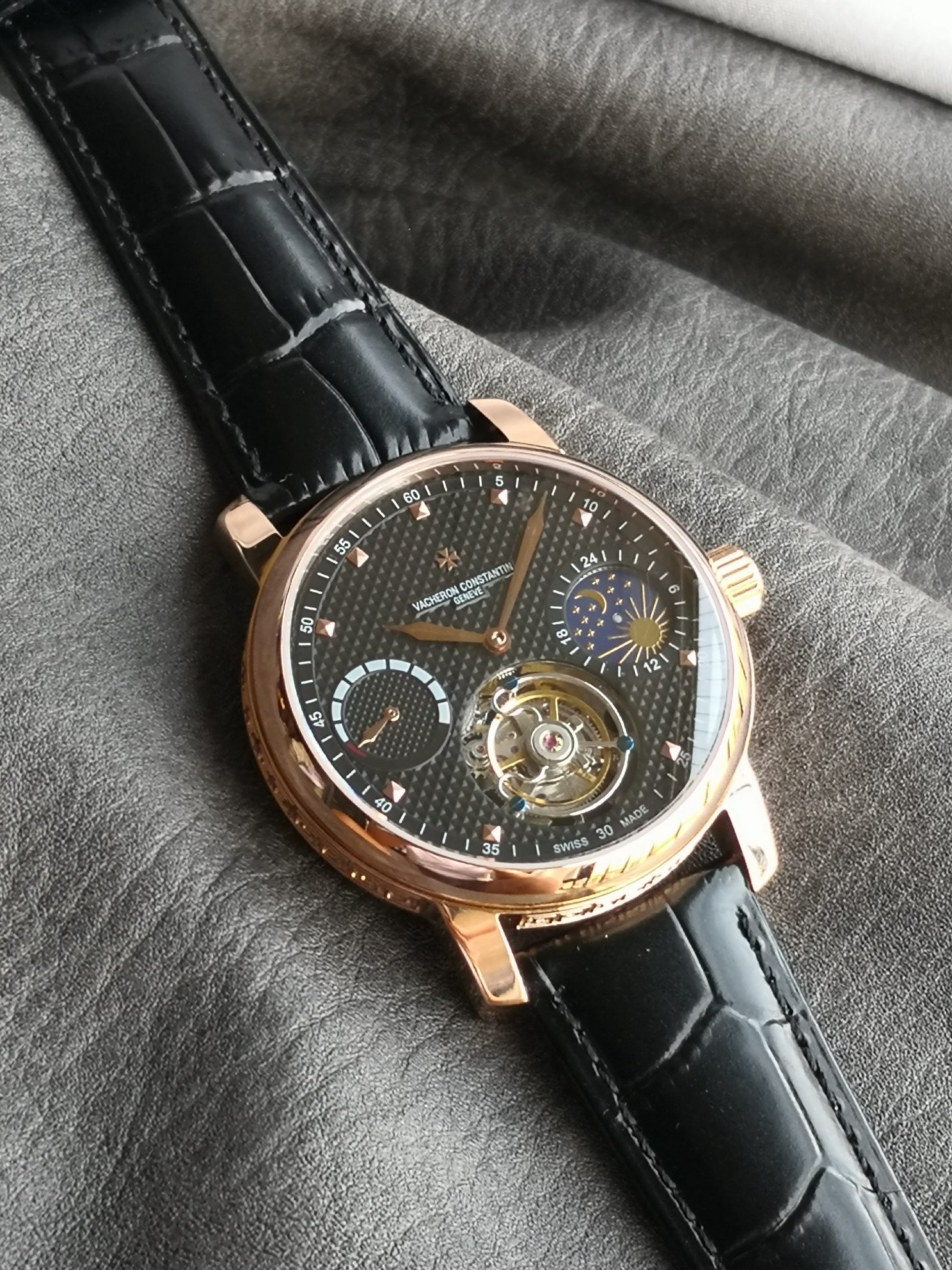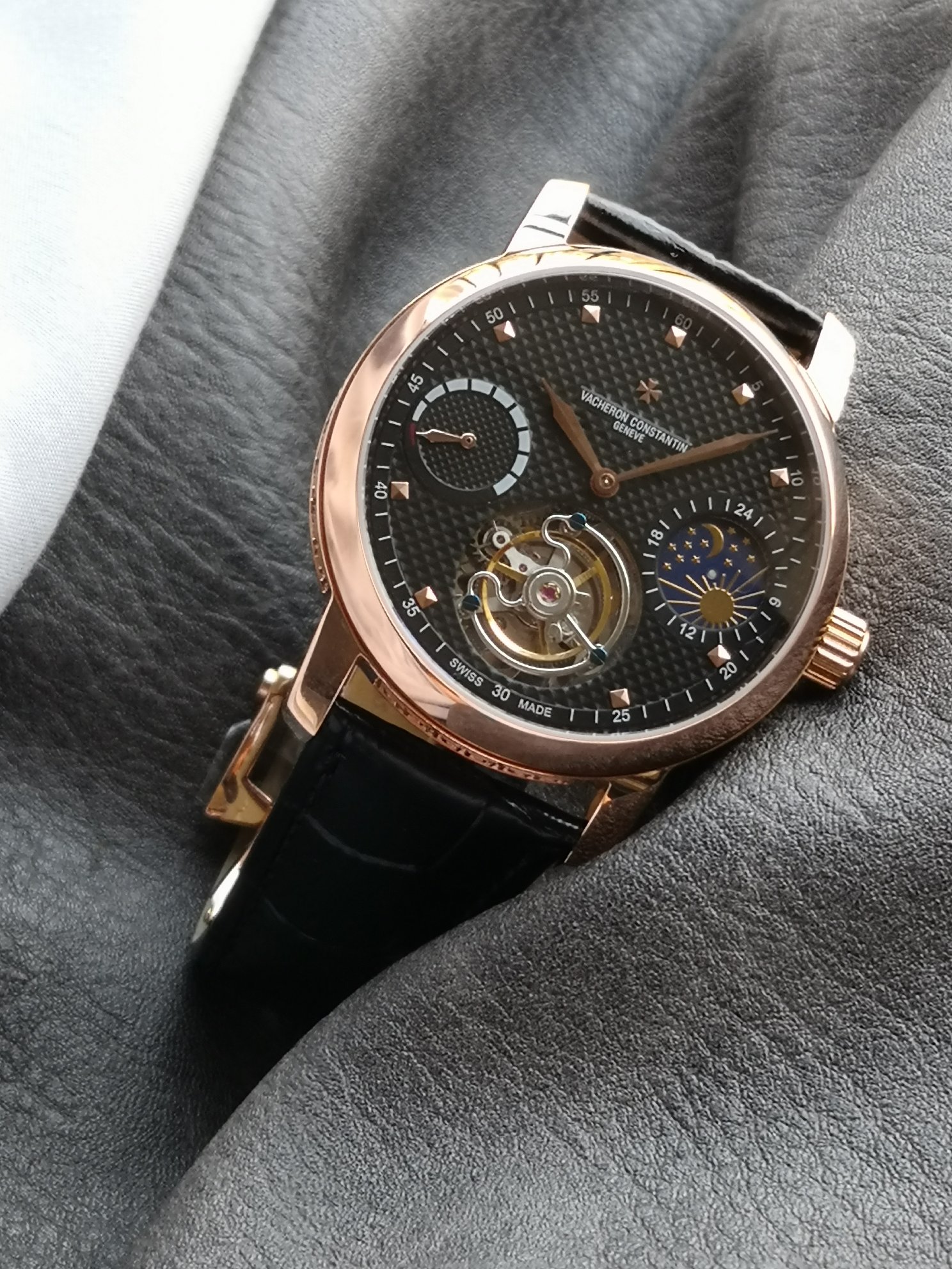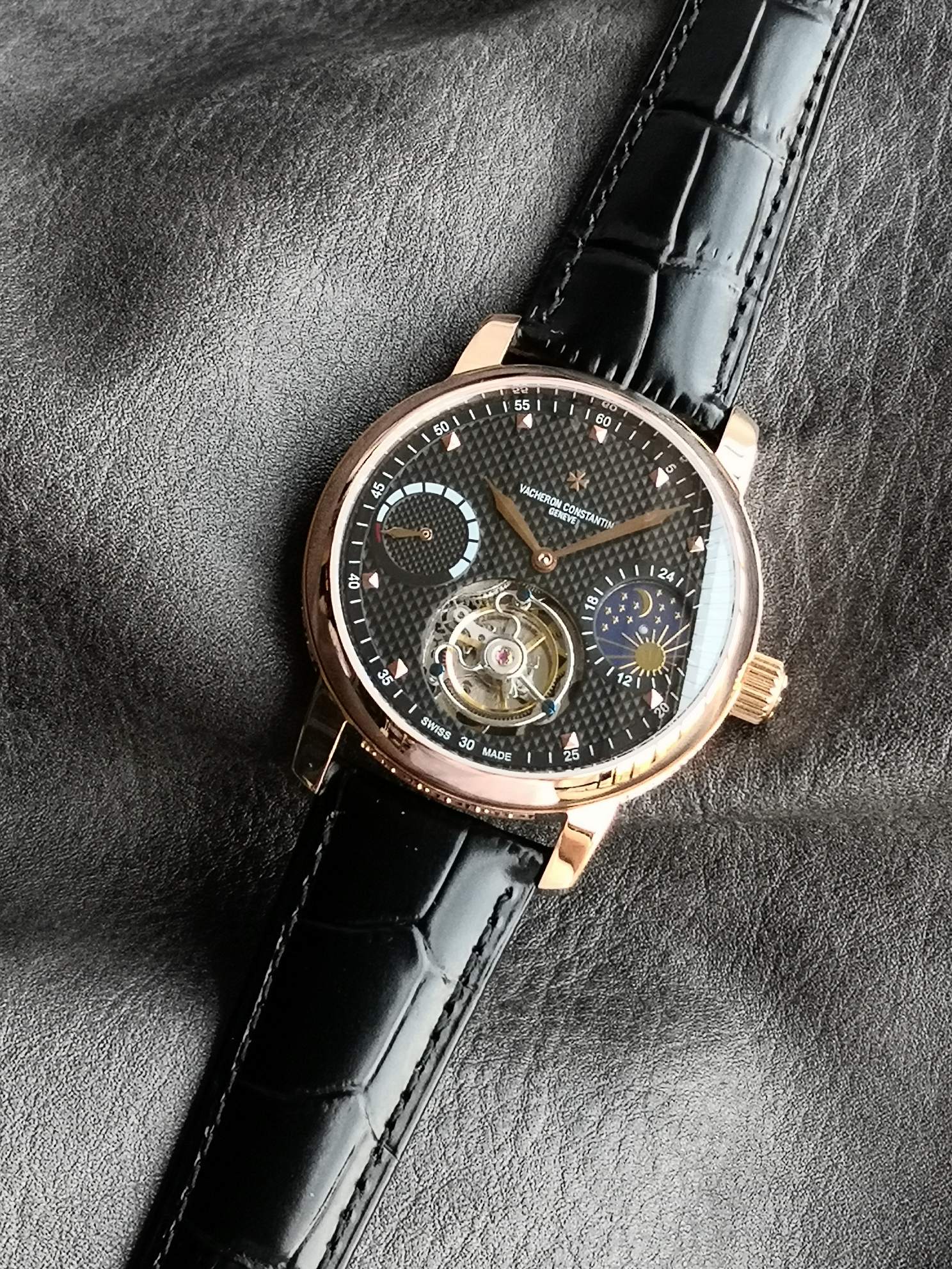 This watches is AAAAA 1:1 quality (superb). Materials used are identical to the original ones. Vacheron Constantin trademark marks are indistinguishable to the authentic. Photos take by actual watches, what you receive will be 100% same with our photos.