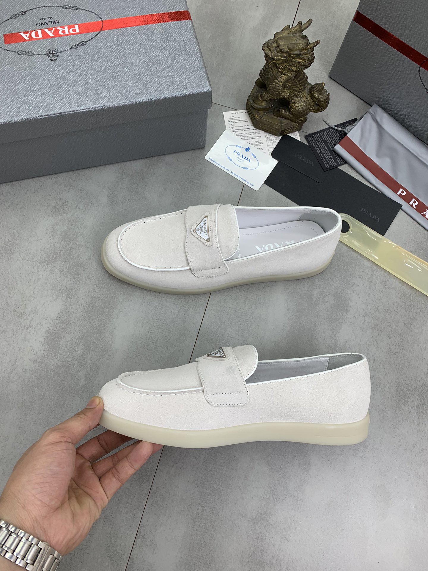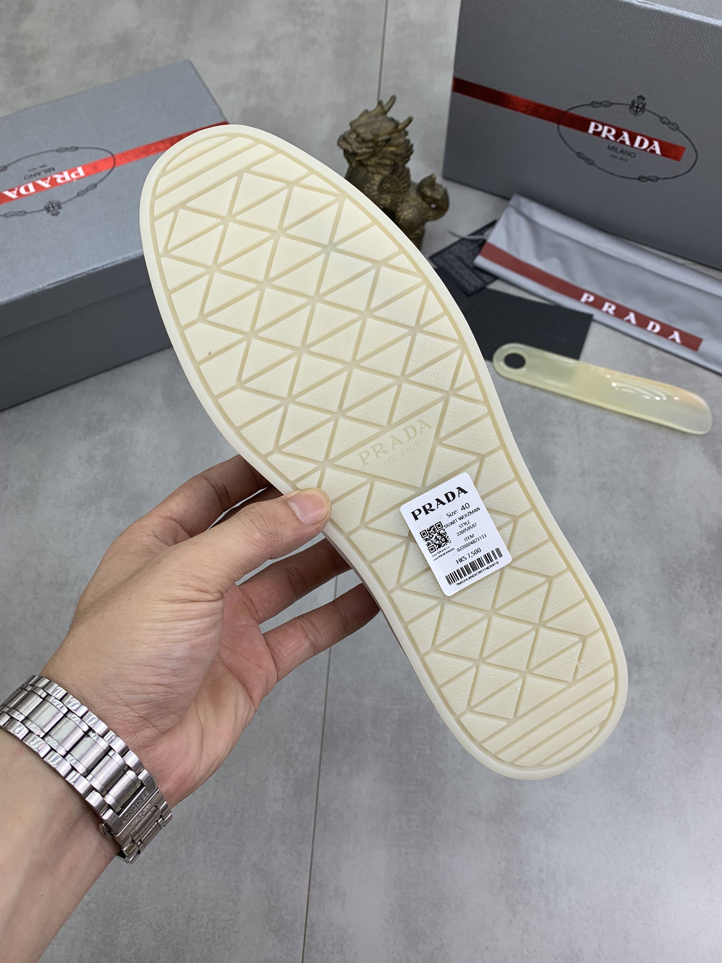 This shoes is AAAAA 1:1 quality (superb). Materials used are identical to the original ones. Prada trademark marks are indistinguishable to the authentic. Photos take by actual shoes, what you receive will be 100% same with our photos.