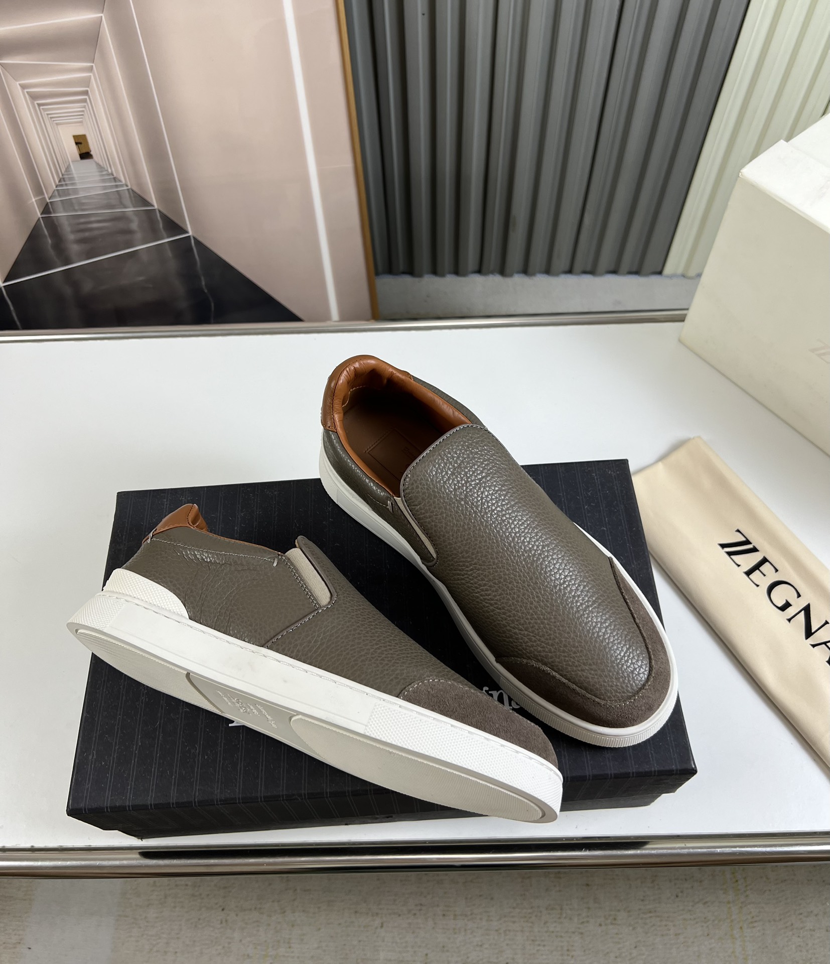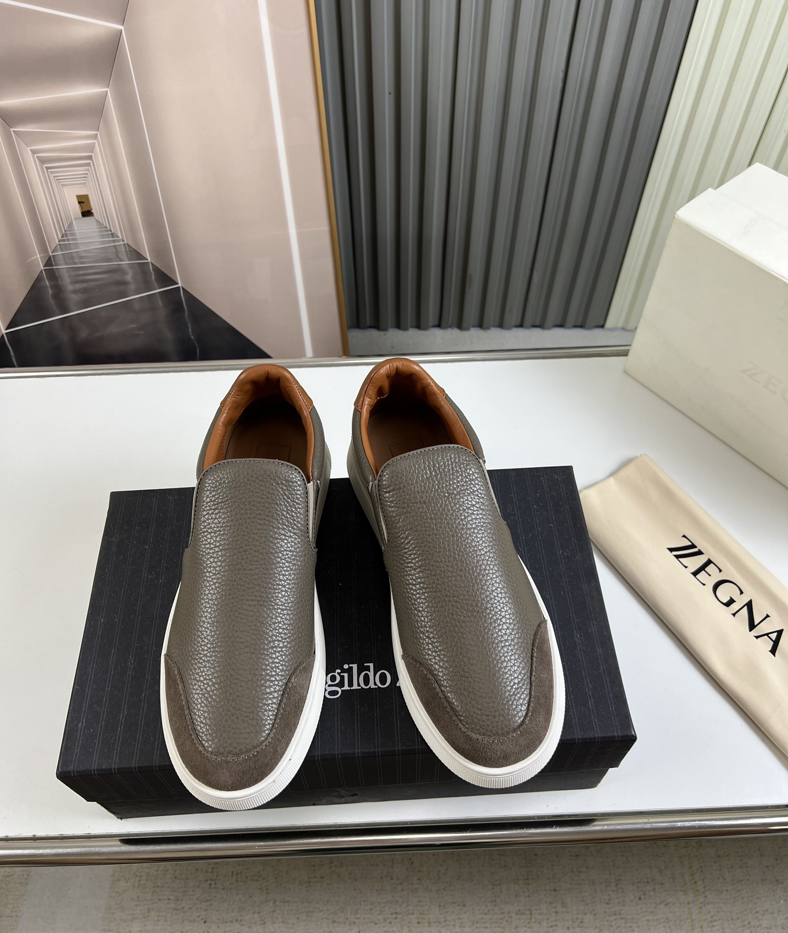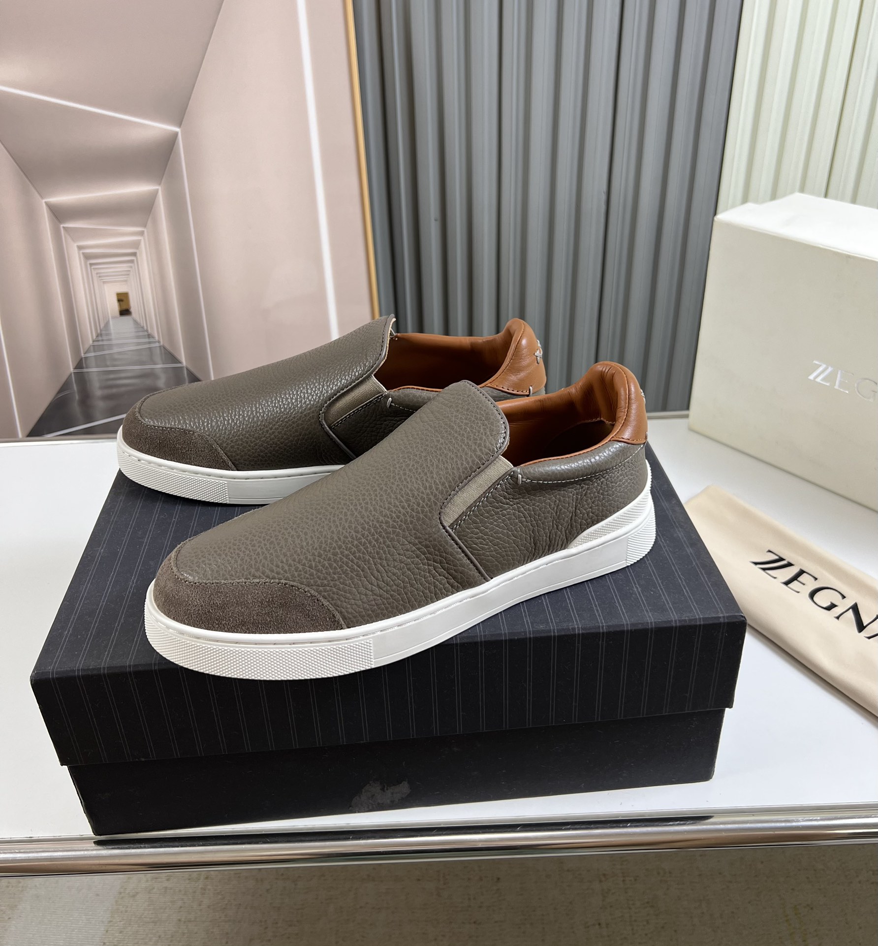 This shoes is AAAAA 1:1 quality (superb). Materials used are identical to the original ones. Zegna trademark marks are indistinguishable to the authentic. Photos take by actual shoes, what you receive will be 100% same with our photos.
