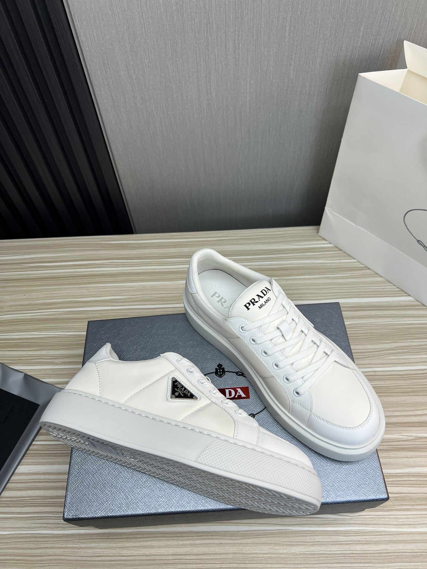 This shoes is AAAAA 1:1 quality (superb). Materials used are identical to the original ones. Prada trademark marks are indistinguishable to the authentic. Photos take by actual shoes, what you receive will be 100% same with our photos.