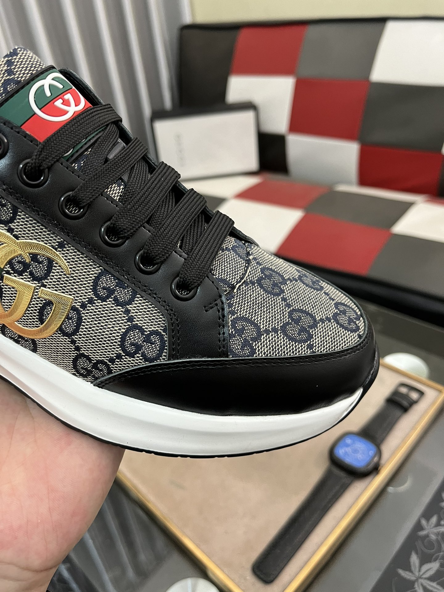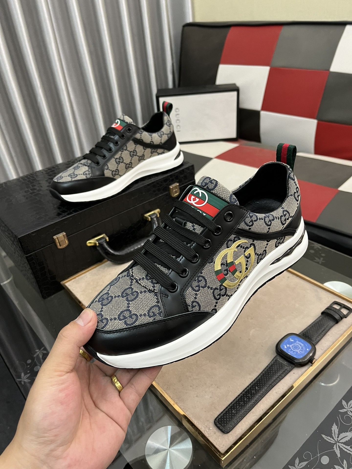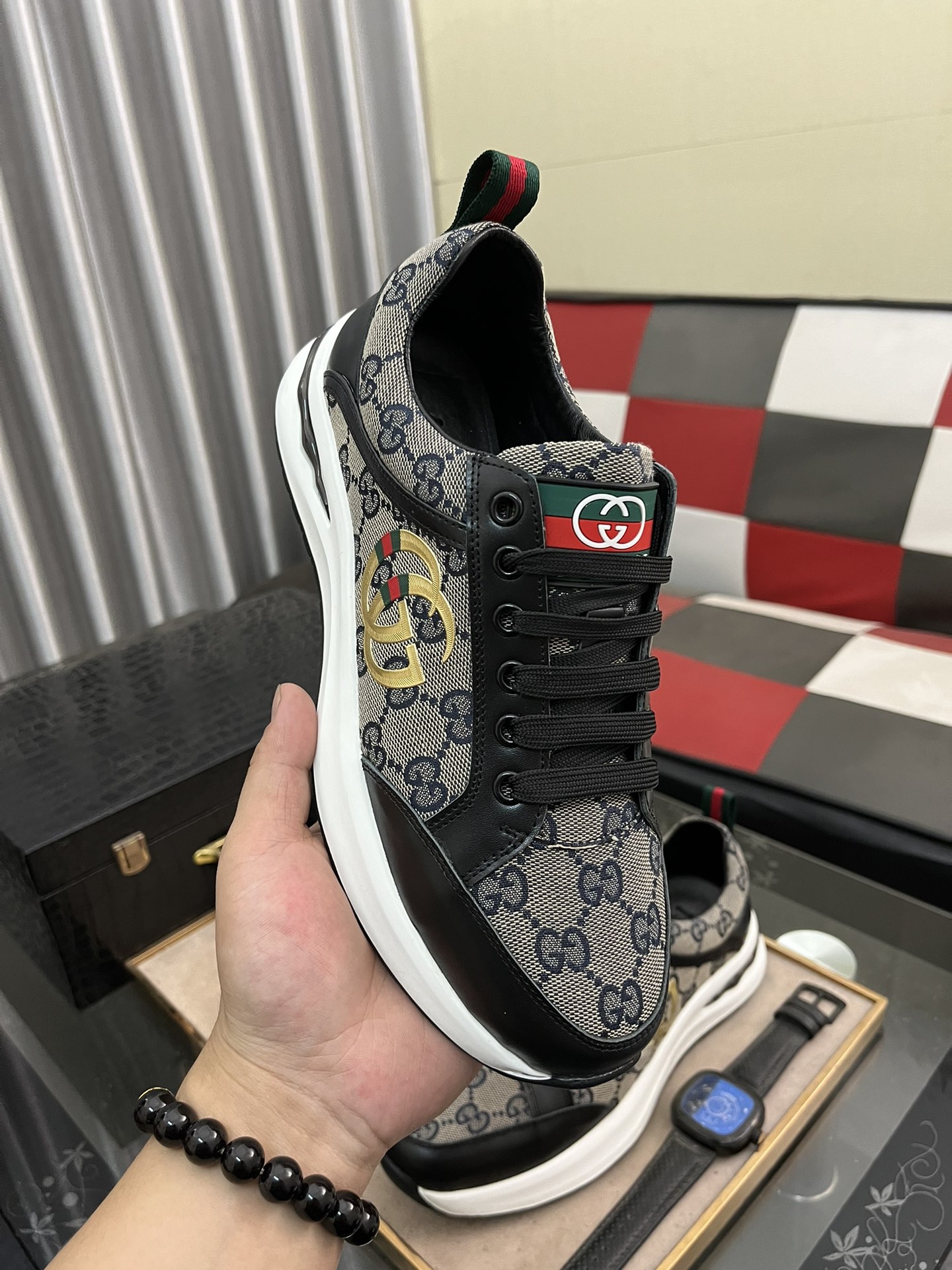 This shoes is AAAAA 1:1 quality (superb). Materials used are identical to the original ones. Gucci trademark marks are indistinguishable to the authentic. Photos take by actual shoes, what you receive will be 100% same with our photos.