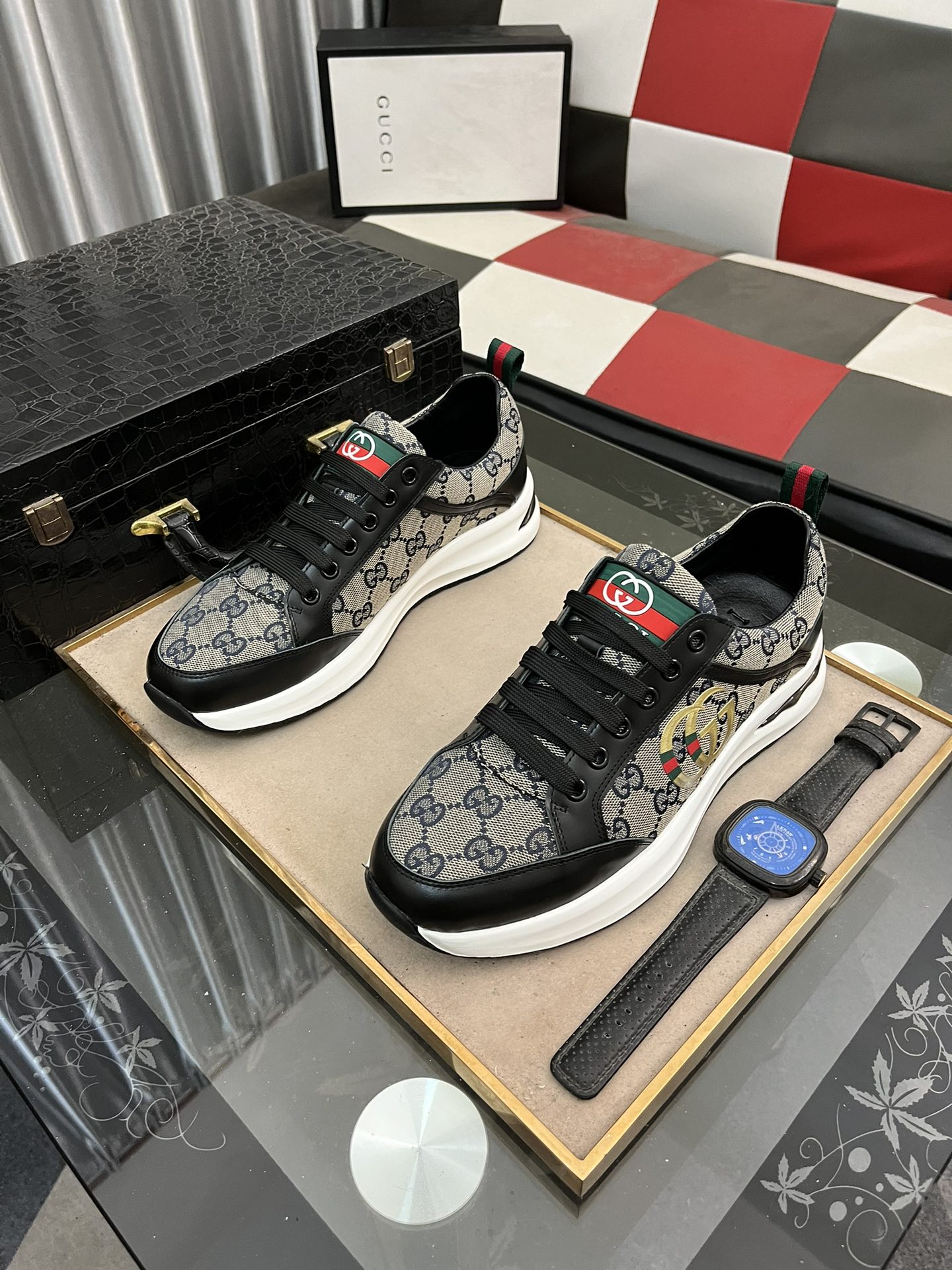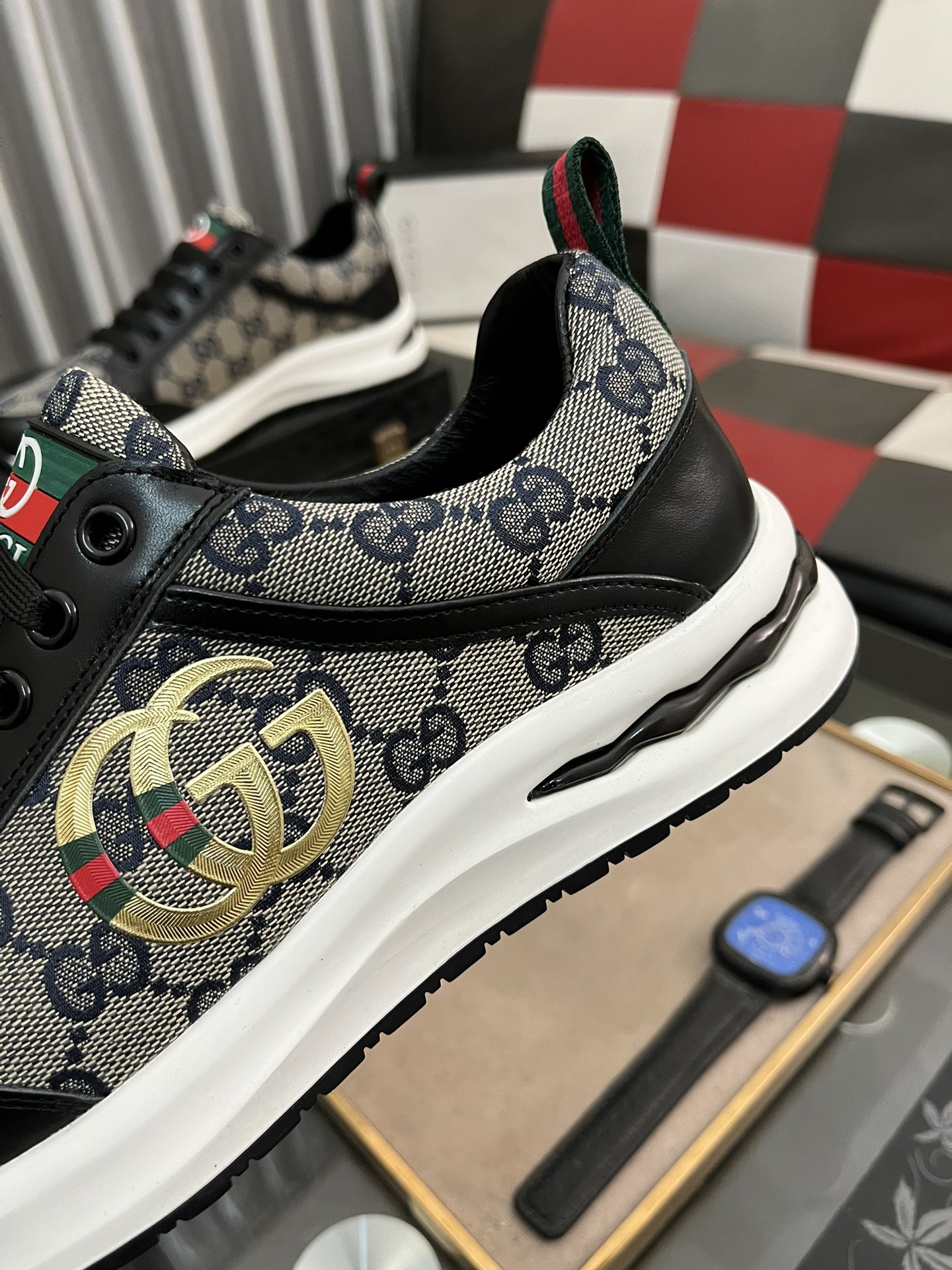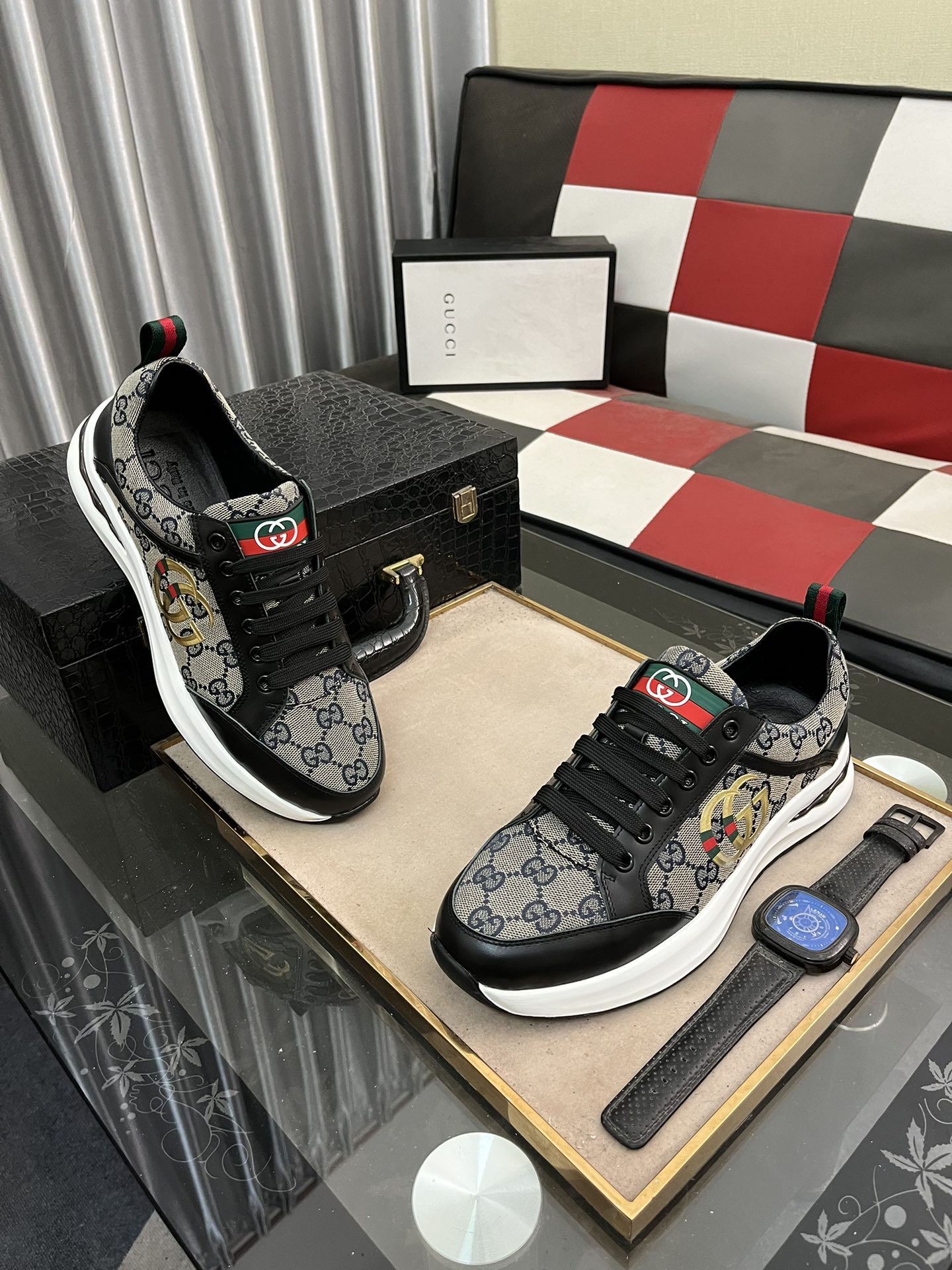 This shoes is AAAAA 1:1 quality (superb). Materials used are identical to the original ones. Gucci trademark marks are indistinguishable to the authentic. Photos take by actual shoes, what you receive will be 100% same with our photos.