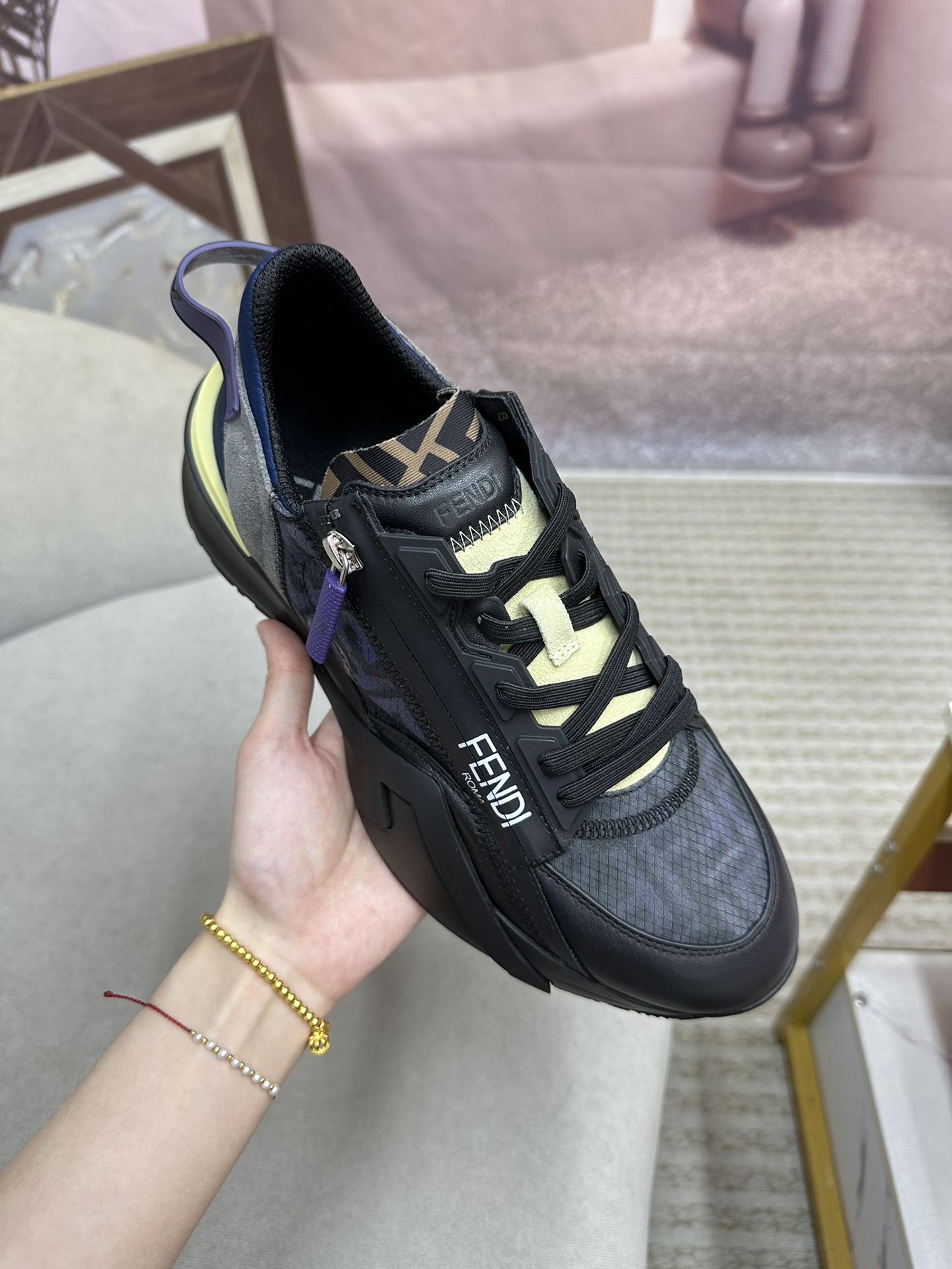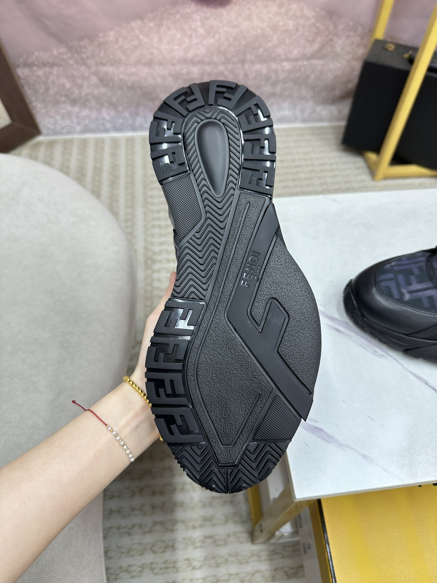 This shoes is AAAAA 1:1 quality (superb). Materials used are identical to the original ones. Fendi trademark marks are indistinguishable to the authentic. Photos take by actual shoes, what you receive will be 100% same with our photos.