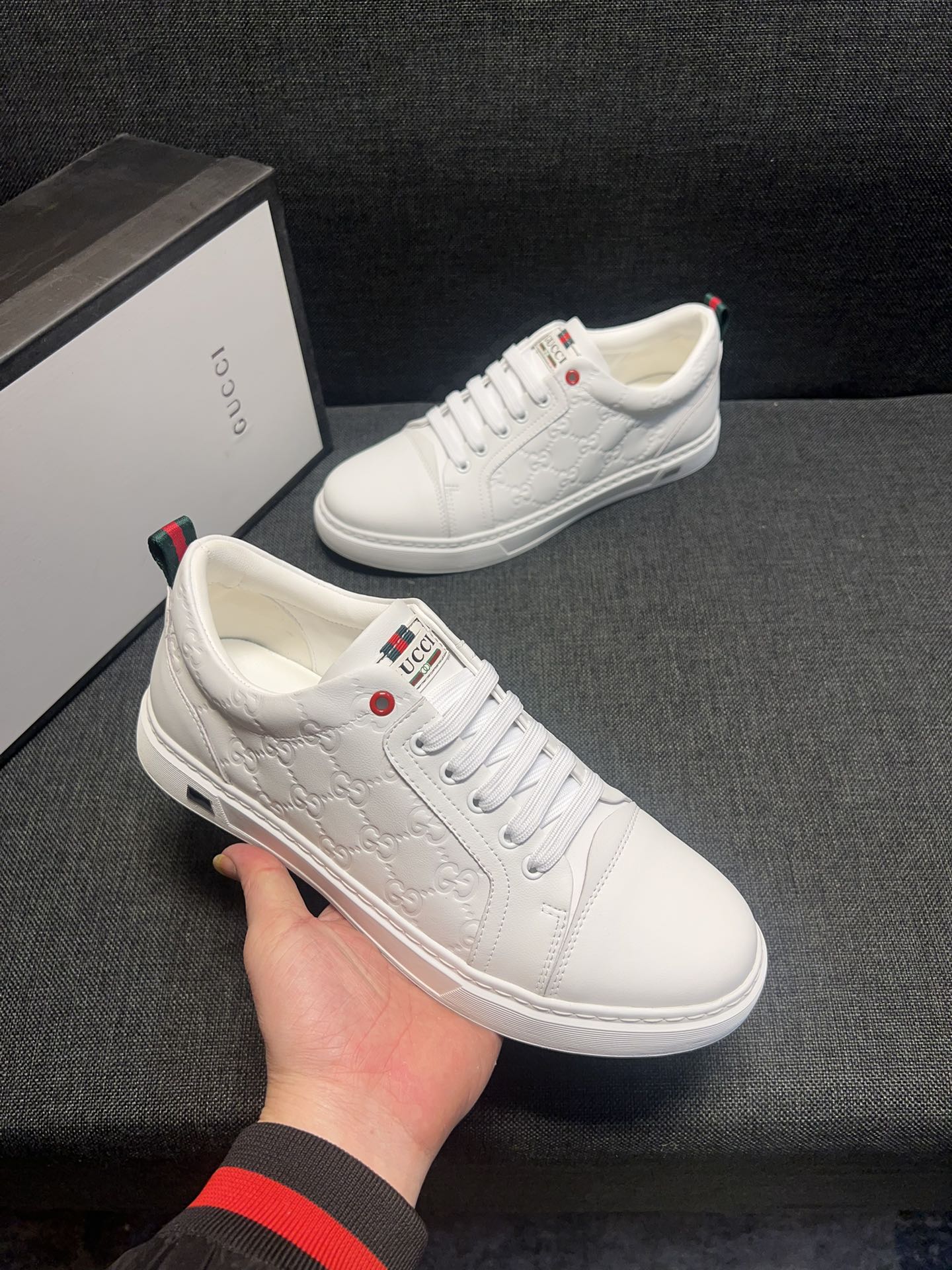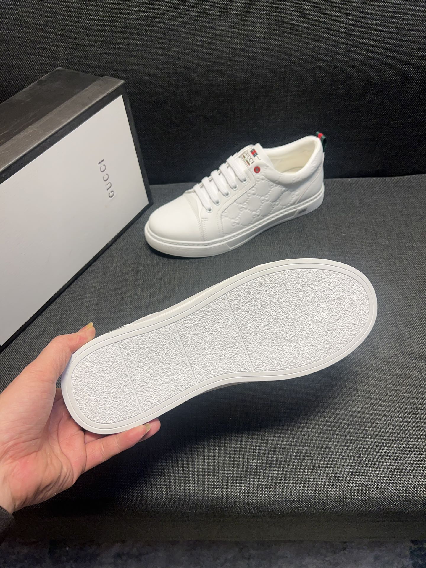 This shoes is AAAAA 1:1 quality (superb). Materials used are identical to the original ones. Gucci trademark marks are indistinguishable to the authentic. Photos take by actual shoes, what you receive will be 100% same with our photos.