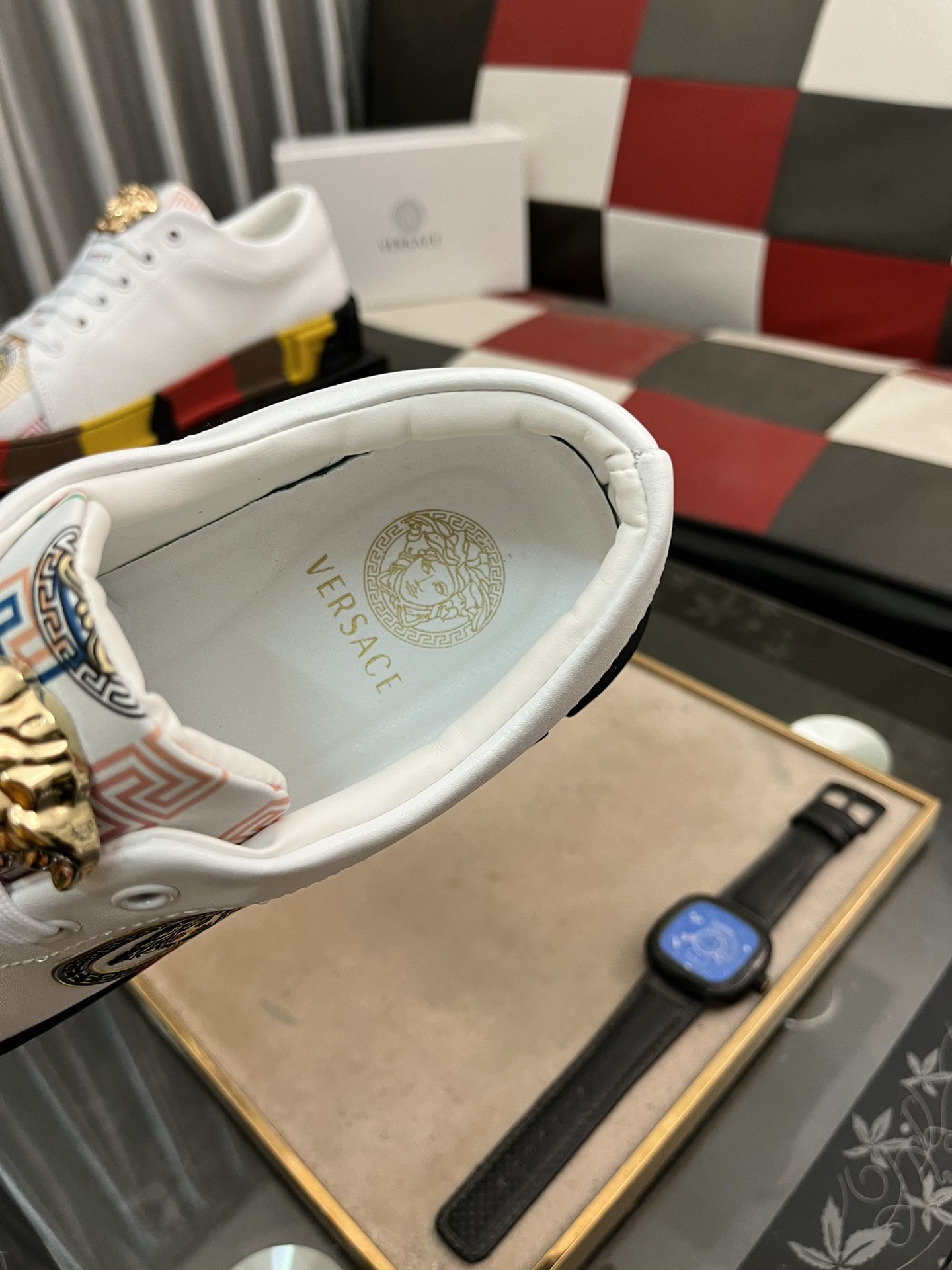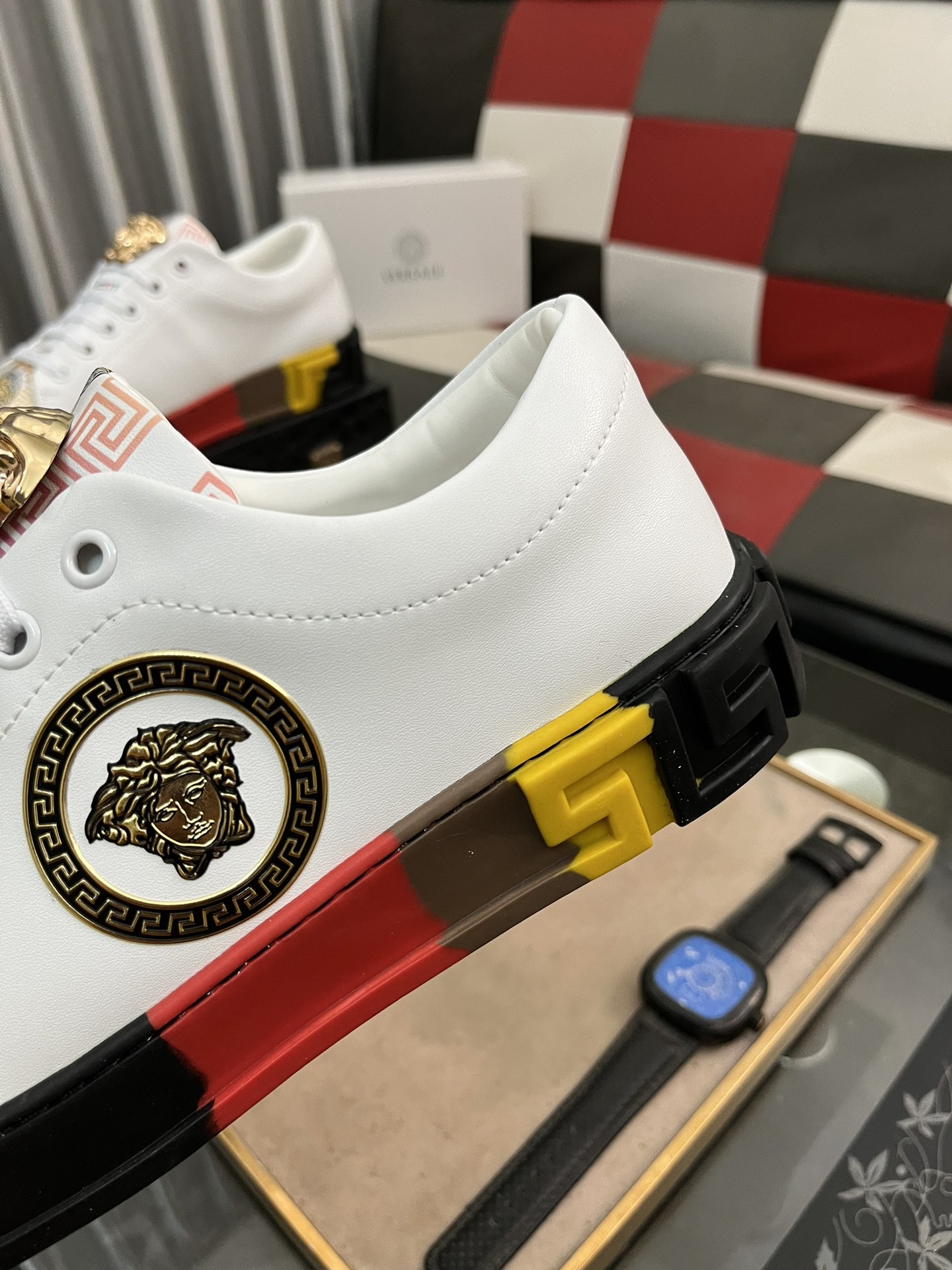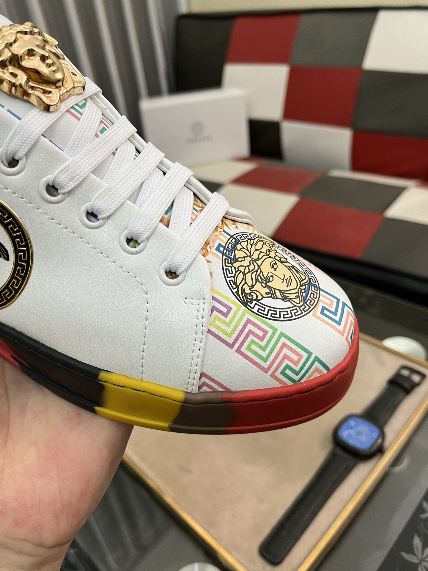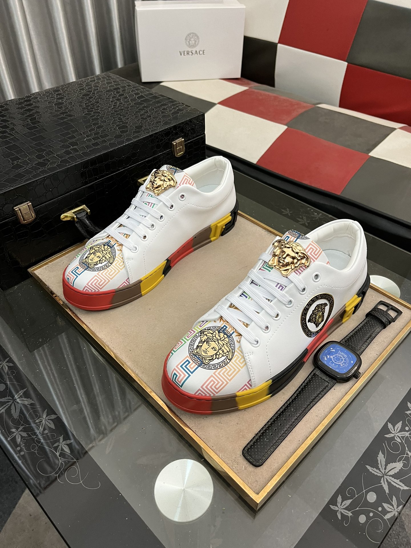 This shoes is AAAAA 1:1 quality (superb). Materials used are identical to the original ones. Versace trademark marks are indistinguishable to the authentic. Photos take by actual shoes, what you receive will be 100% same with our photos.