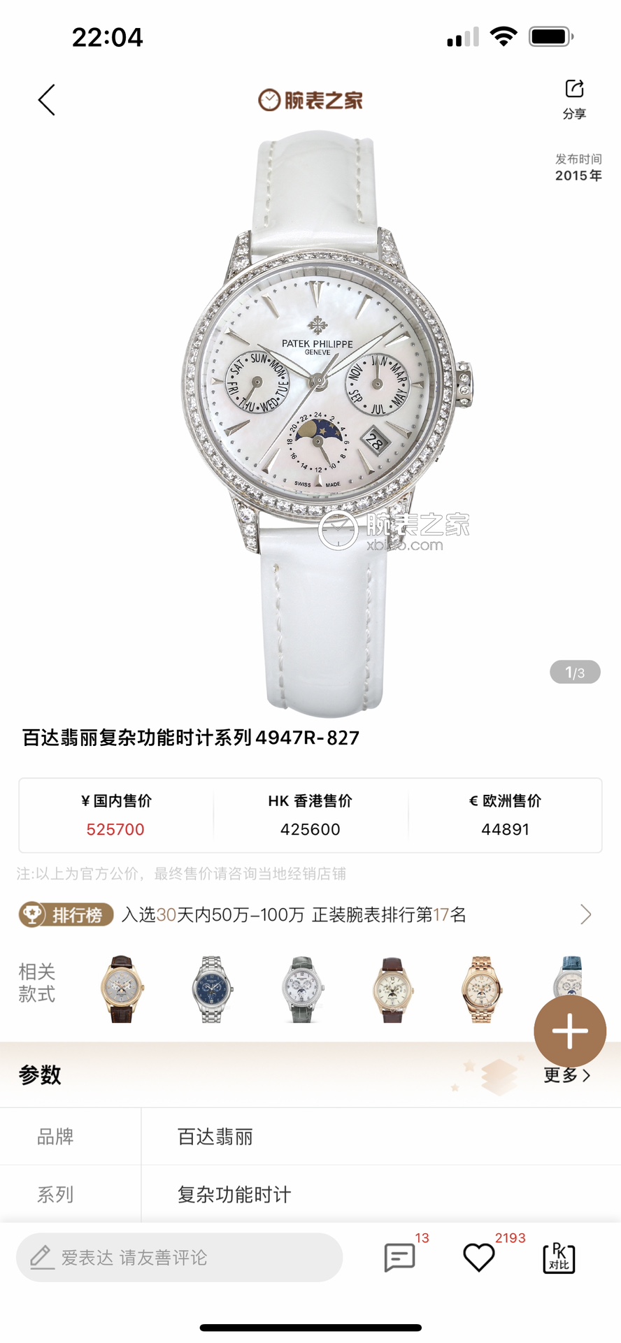 NO:1297646. The watches is from Patek Philippe designer.