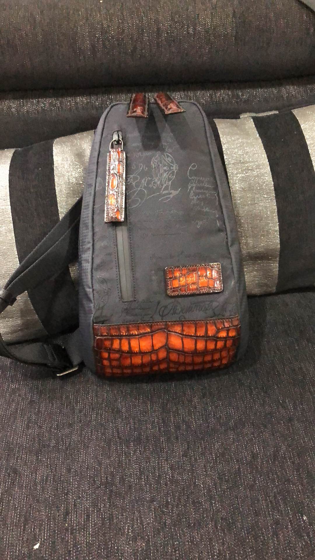 This backpack is AAAAA 1:1 quality (superb). Materials used are identical to the original ones. Berluti trademark marks are indistinguishable to the authentic. Photos take by actual backpack, what you receive will be 100% same with our photos.