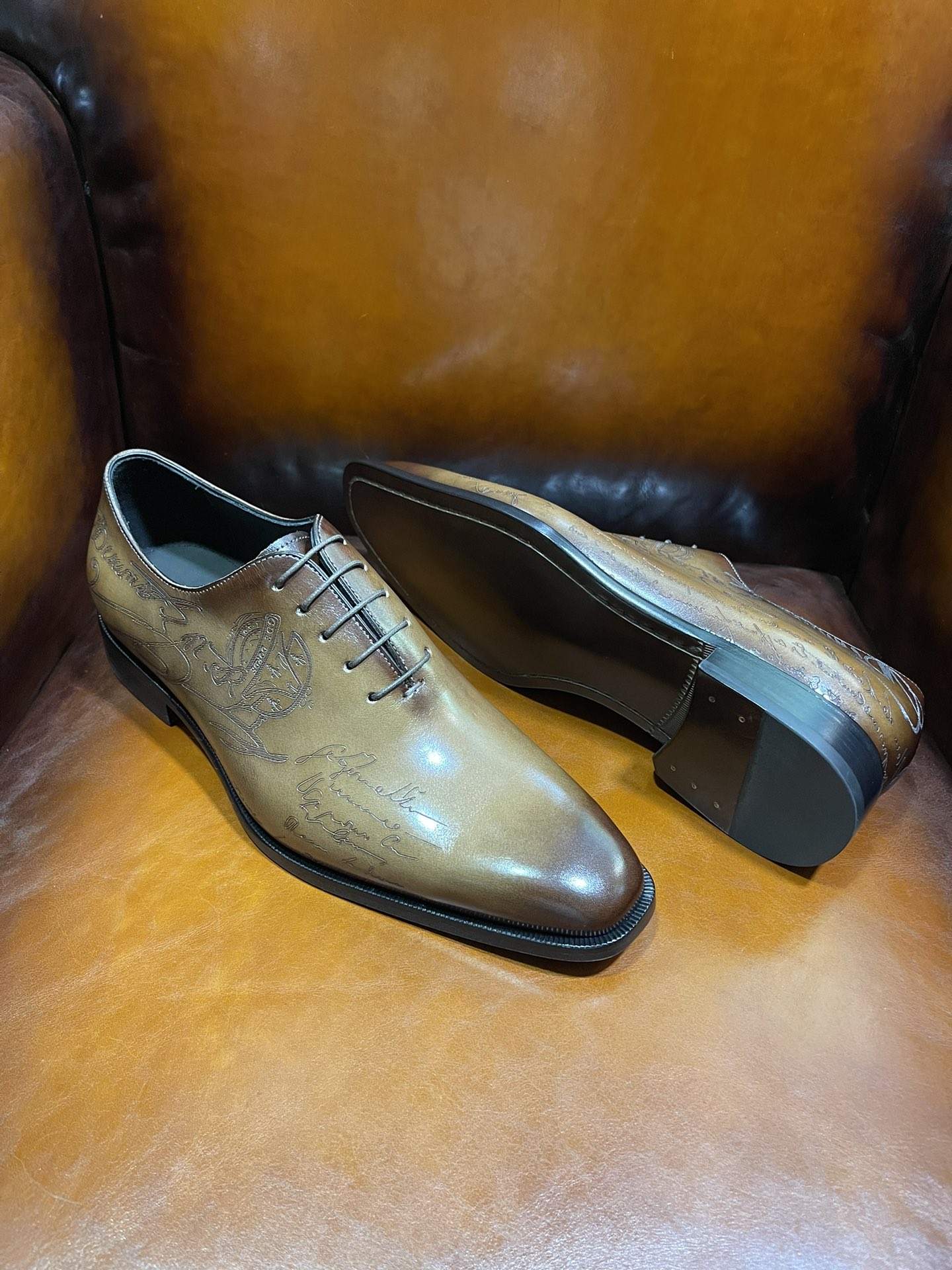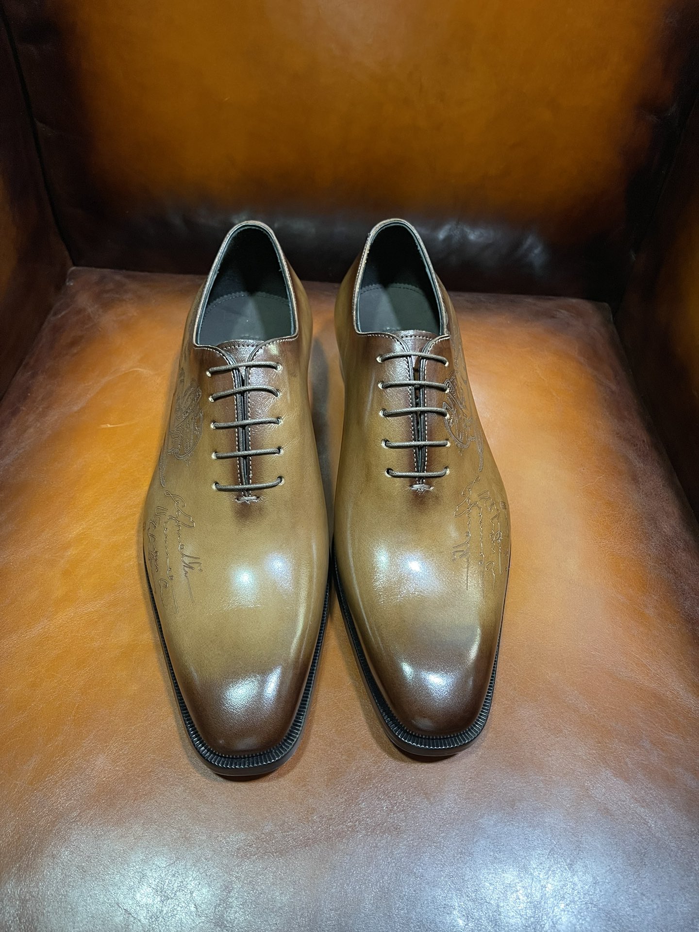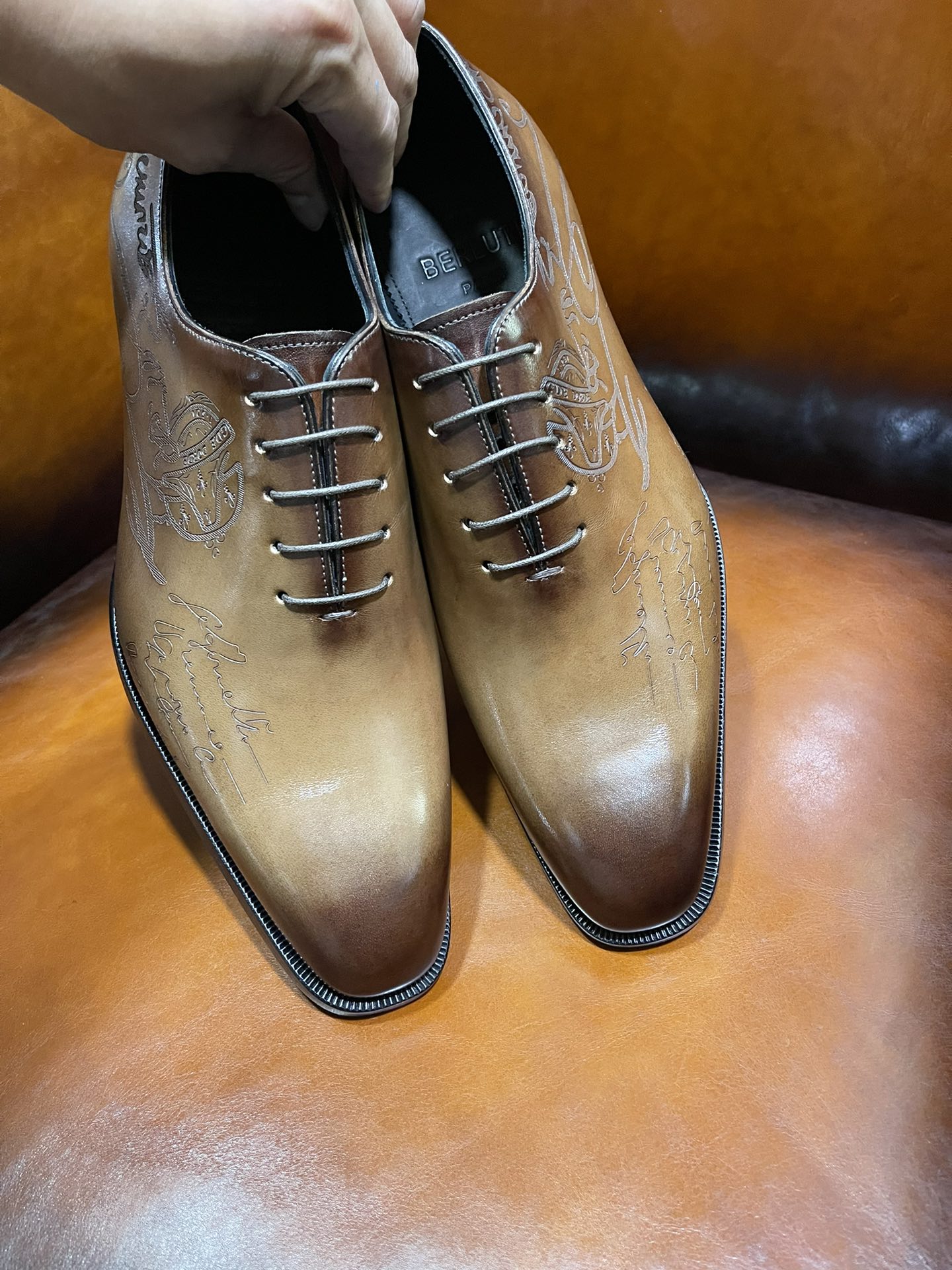 This shoes is AAAAA 1:1 quality (superb). Materials used are identical to the original ones. Berluti trademark marks are indistinguishable to the authentic. Photos take by actual shoes, what you receive will be 100% same with our photos.
