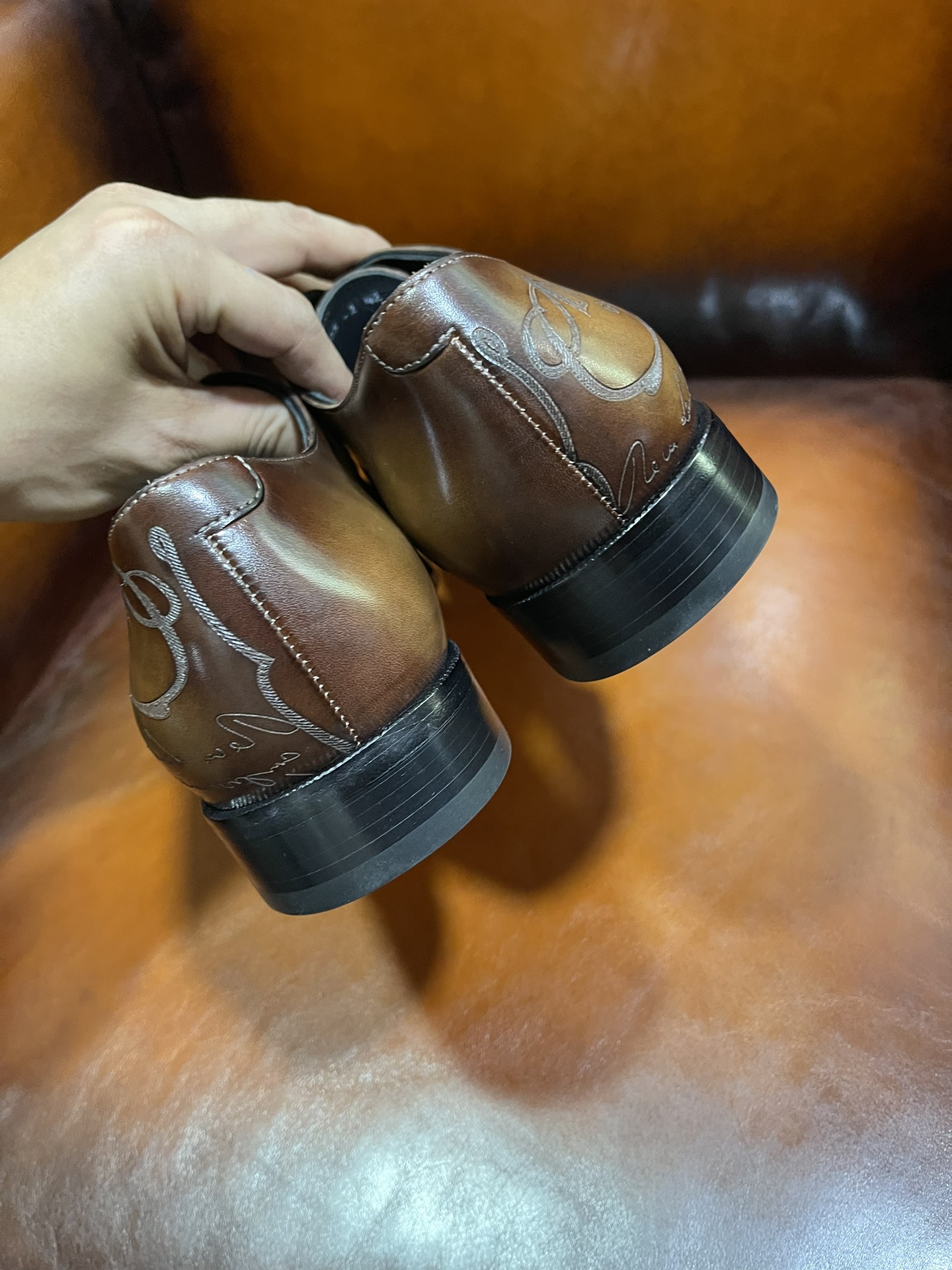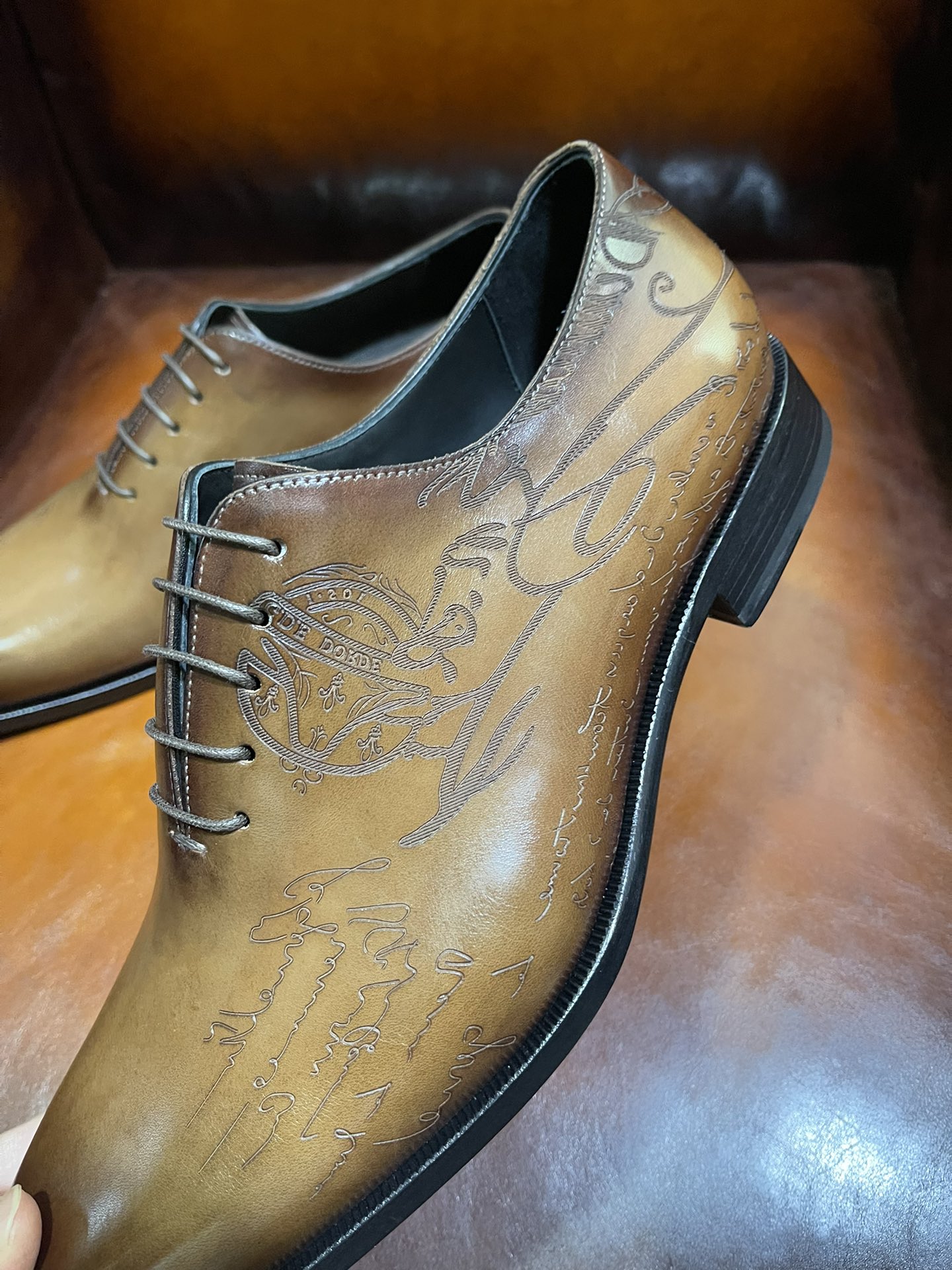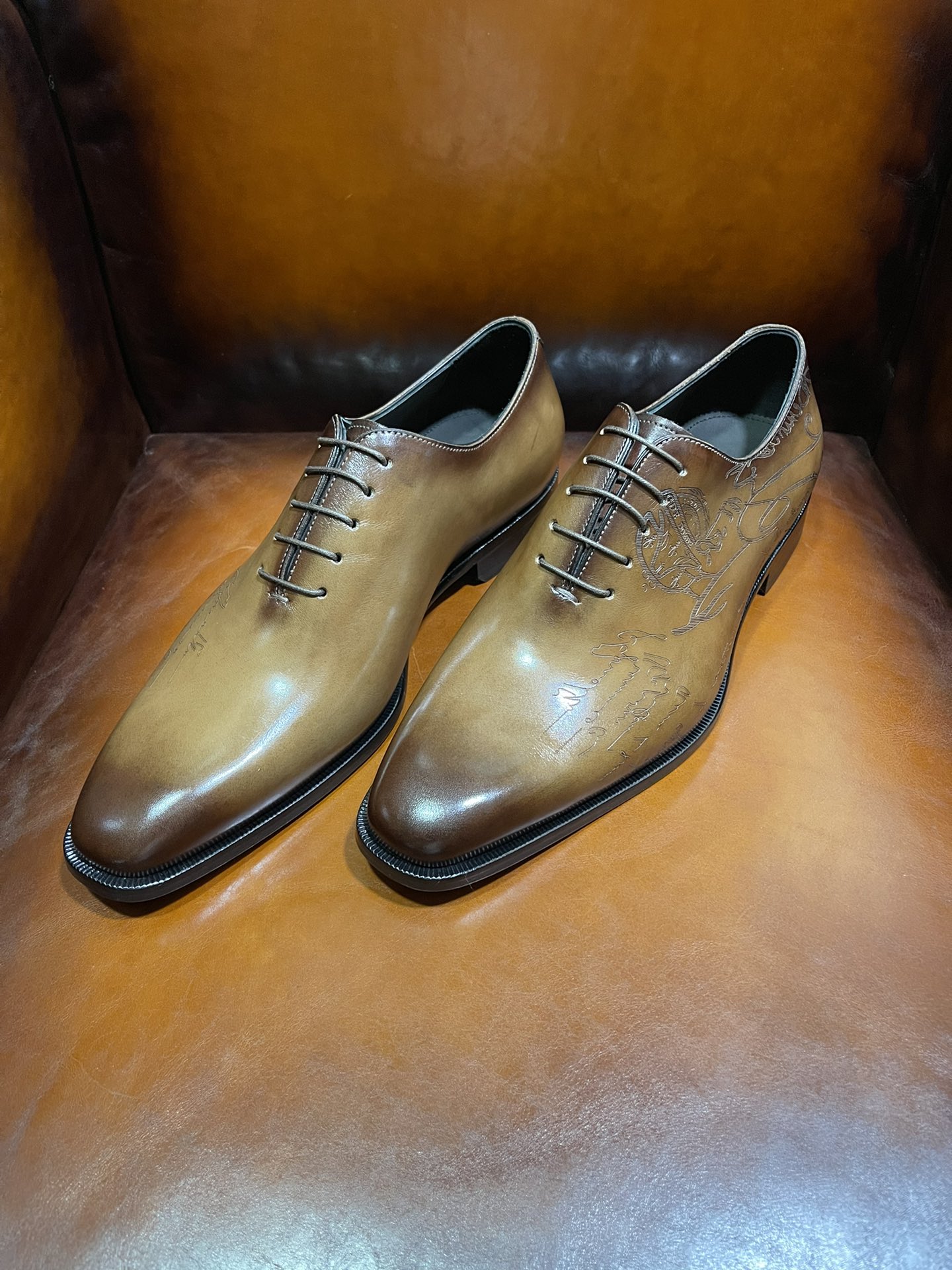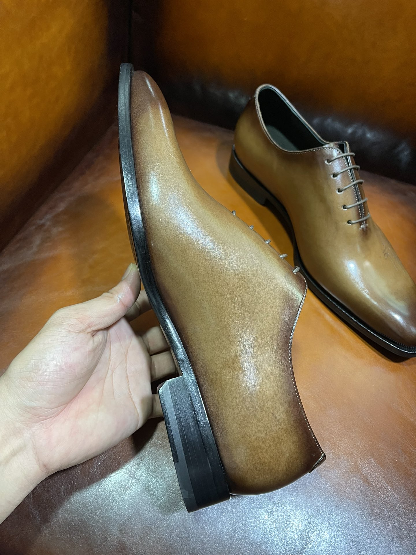 This shoes is AAAAA 1:1 quality (superb). Materials used are identical to the original ones. Berluti trademark marks are indistinguishable to the authentic. Photos take by actual shoes, what you receive will be 100% same with our photos.
