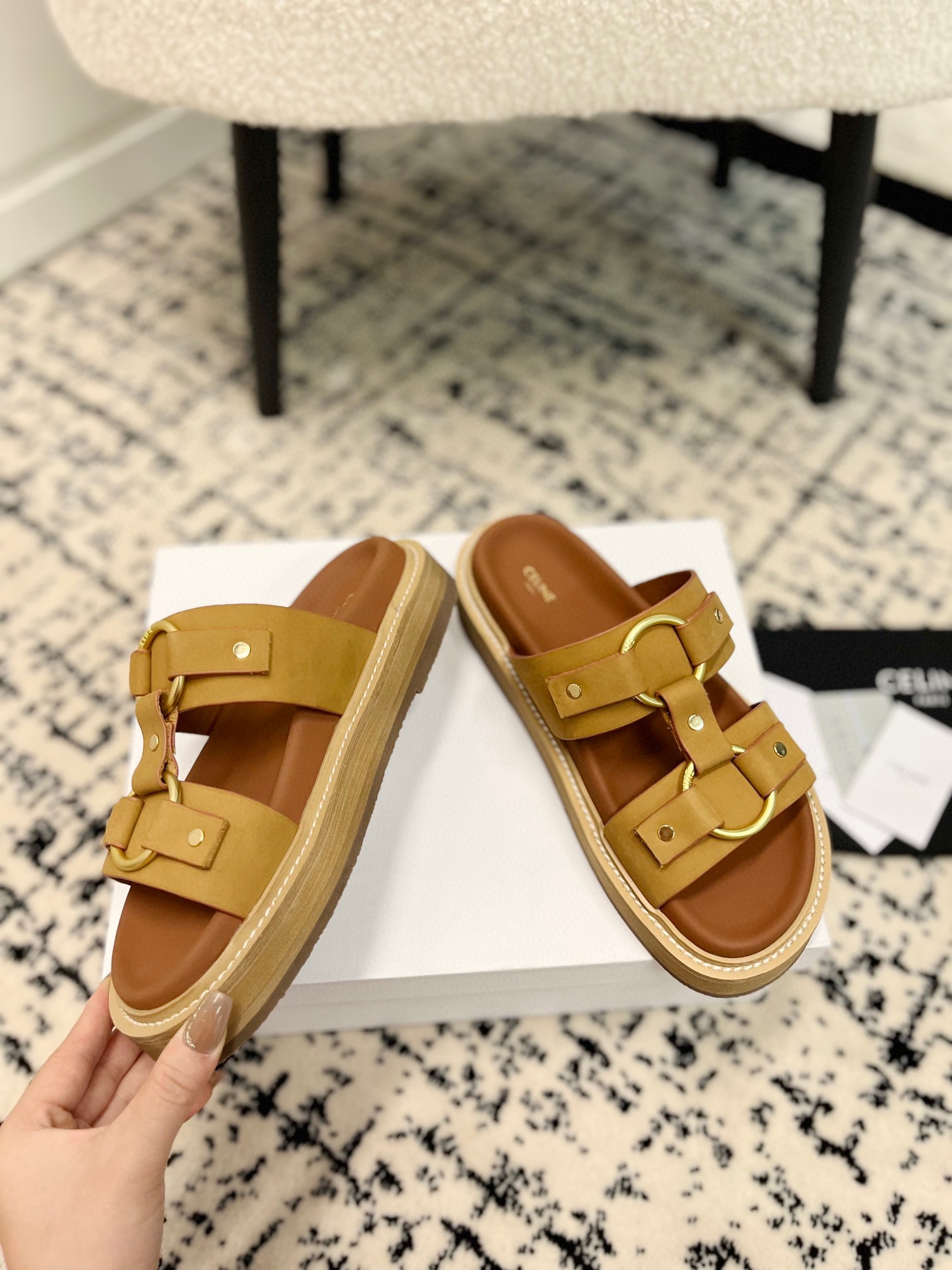 This shoes is AAAAA 1:1 quality (superb). Materials used are identical to the original ones. Celine trademark marks are indistinguishable to the authentic. Photos take by actual shoes, what you receive will be 100% same with our photos.