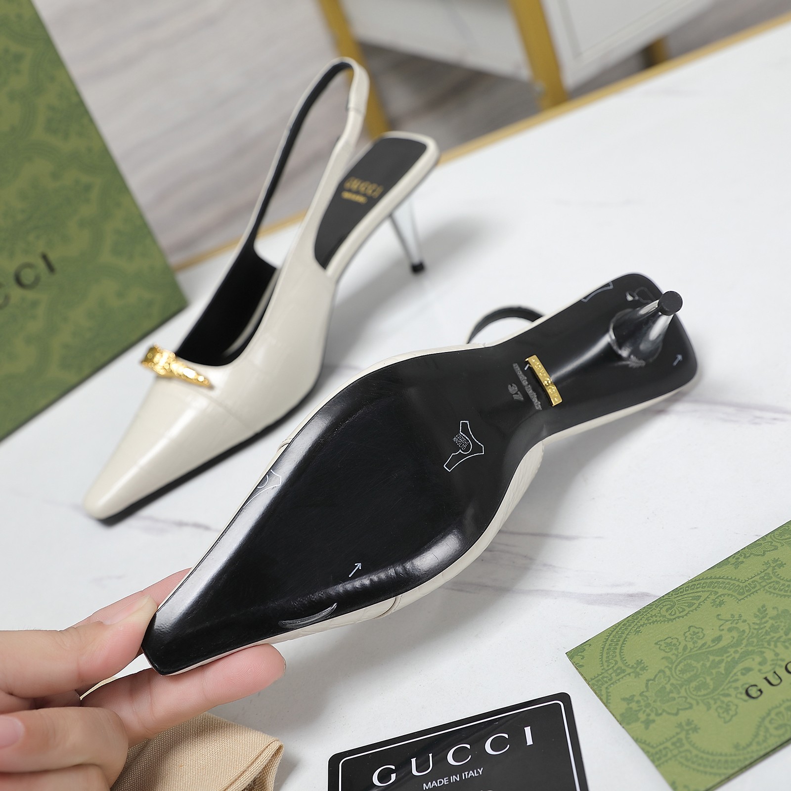 This shoes is AAAAA 1:1 quality (superb). Materials used are identical to the original ones. Gucci trademark marks are indistinguishable to the authentic. Photos take by actual shoes, what you receive will be 100% same with our photos.