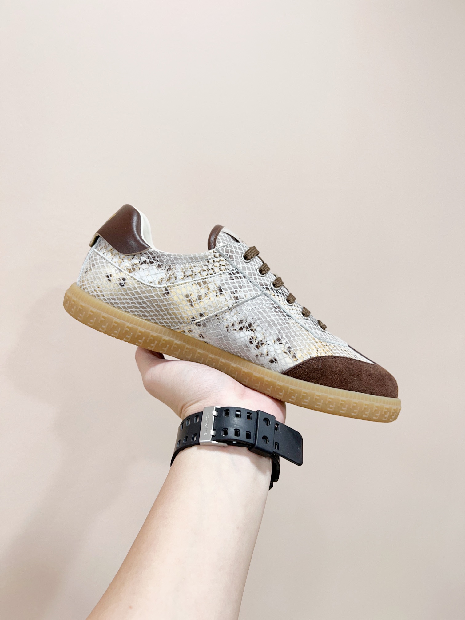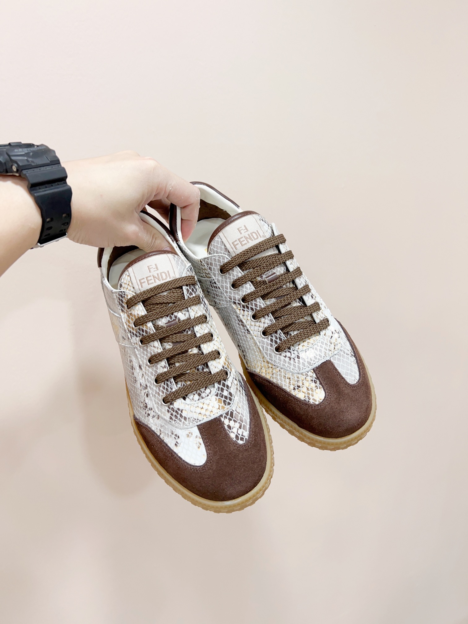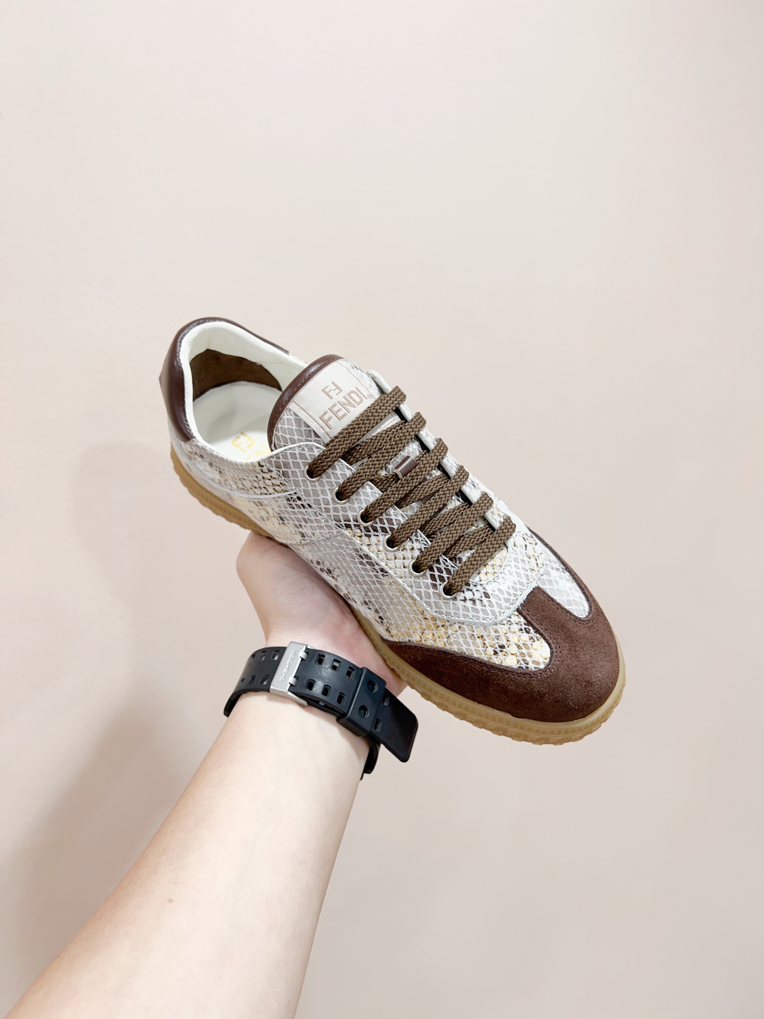 This shoes is AAAAA 1:1 quality (superb). Materials used are identical to the original ones. Fendi trademark marks are indistinguishable to the authentic. Photos take by actual shoes, what you receive will be 100% same with our photos.