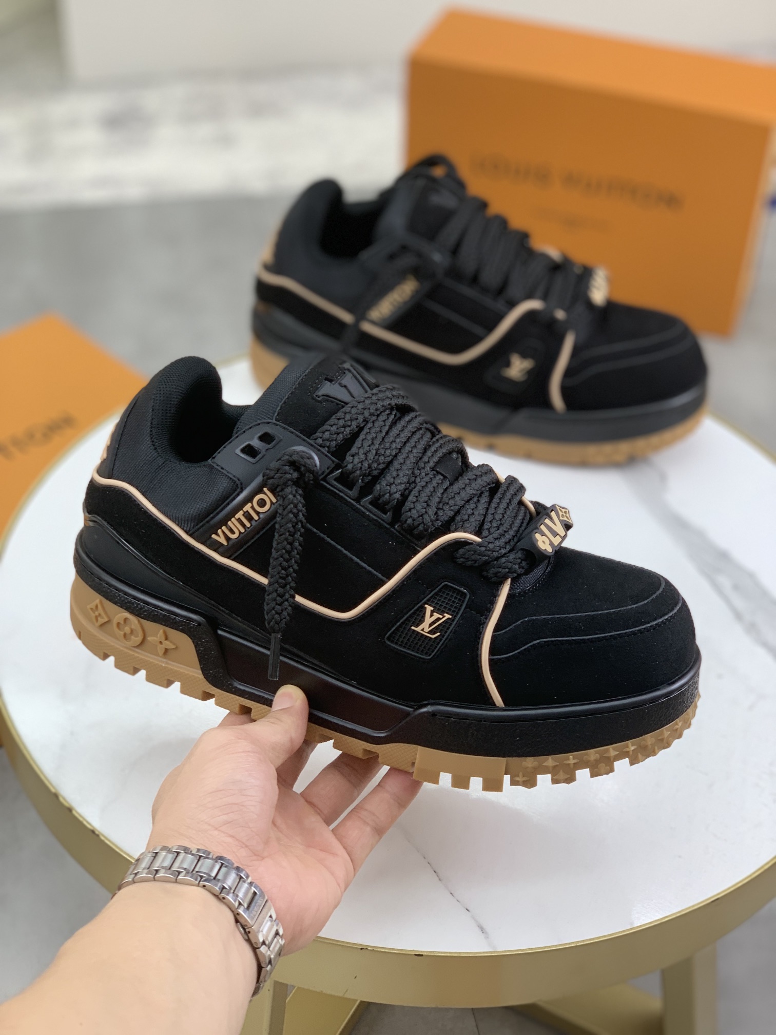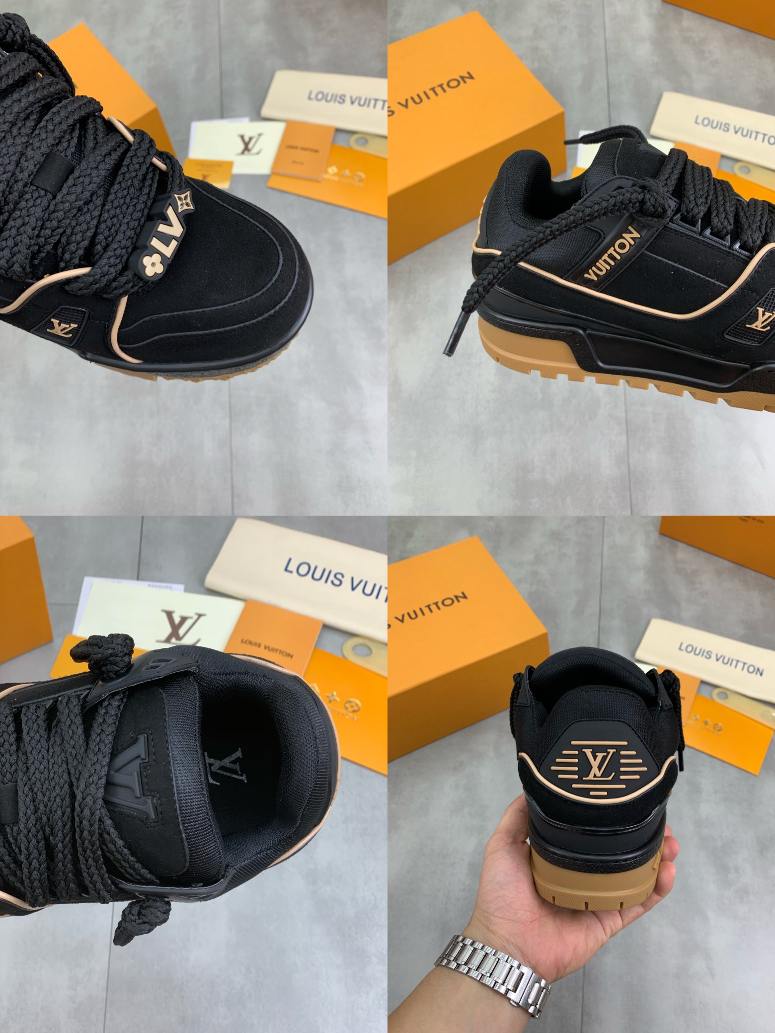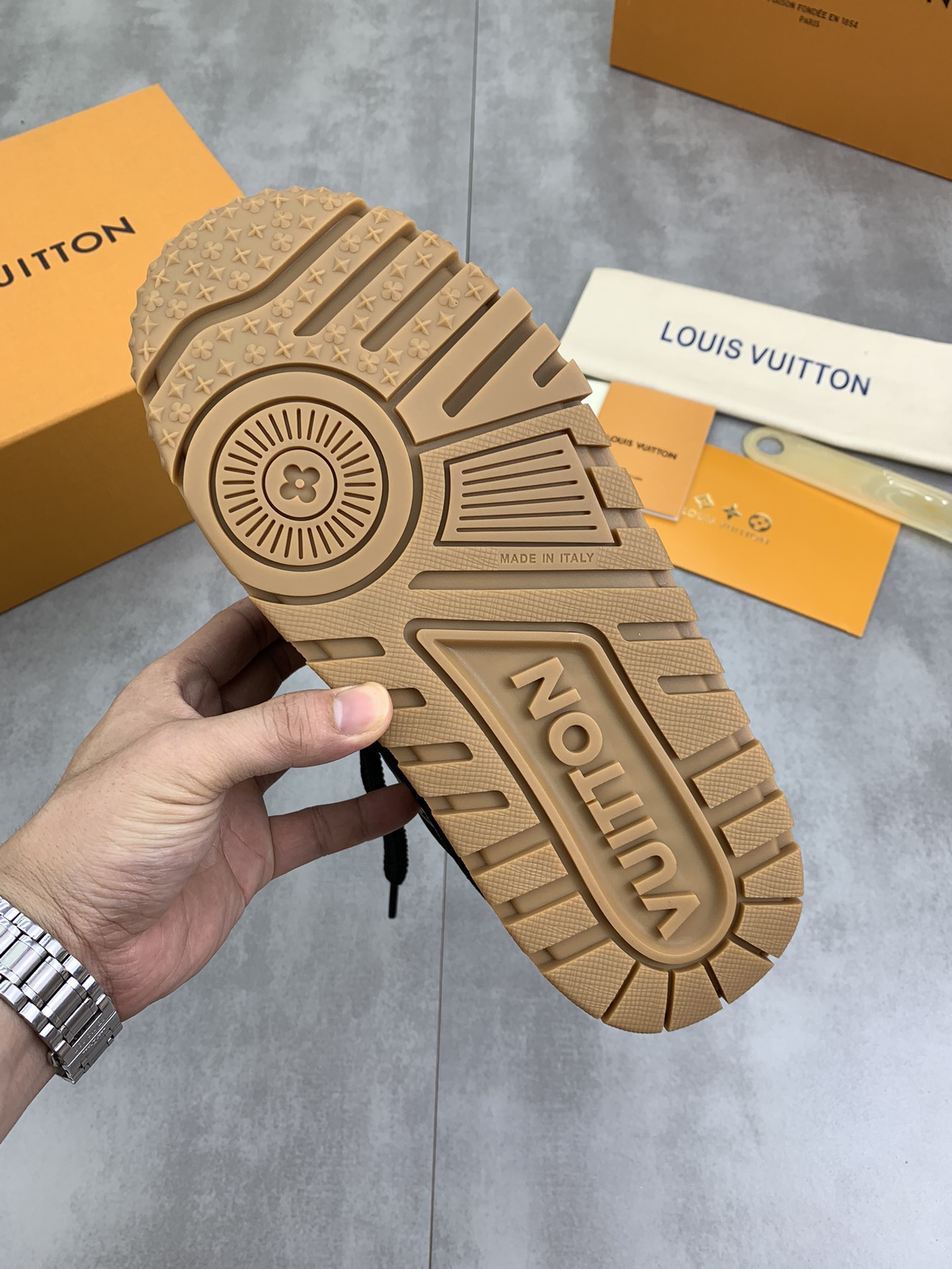 This shoes is AAAAA 1:1 quality (superb). Materials used are identical to the original ones. Louis Vuitton trademark marks are indistinguishable to the authentic. Photos take by actual shoes, what you receive will be 100% same with our photos.
