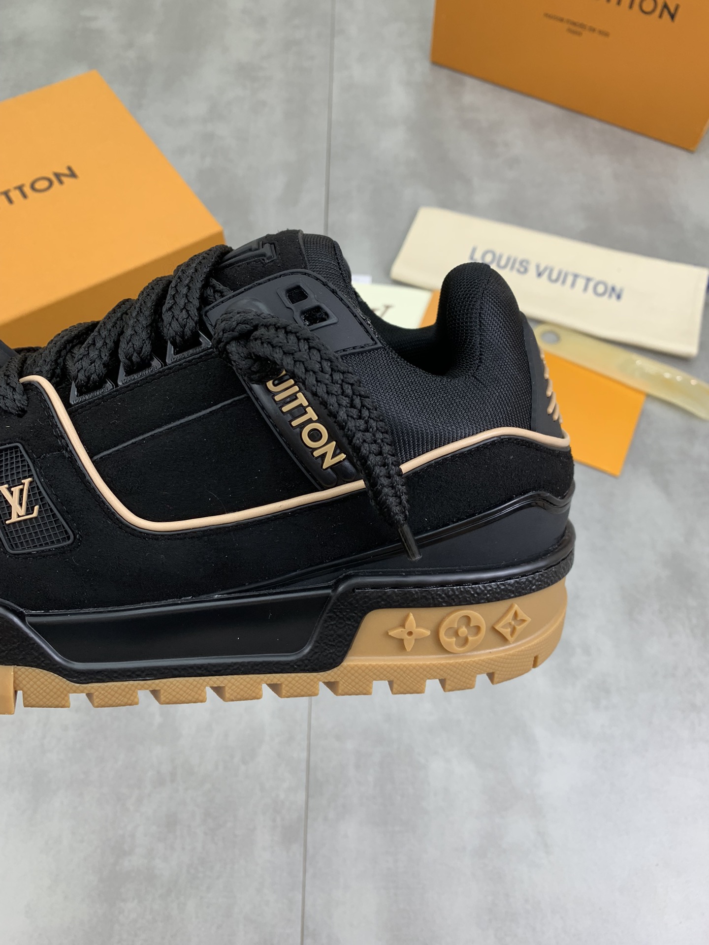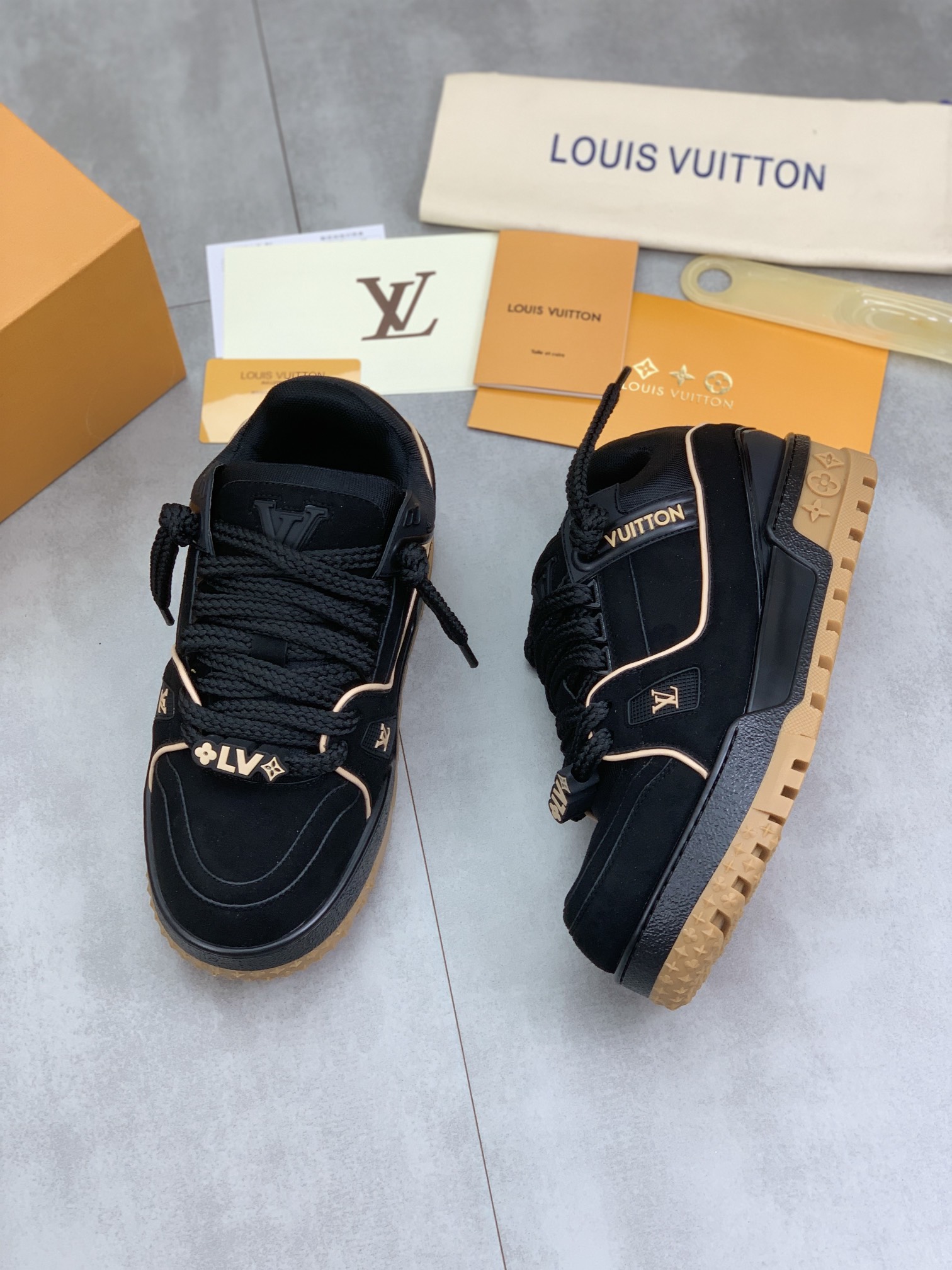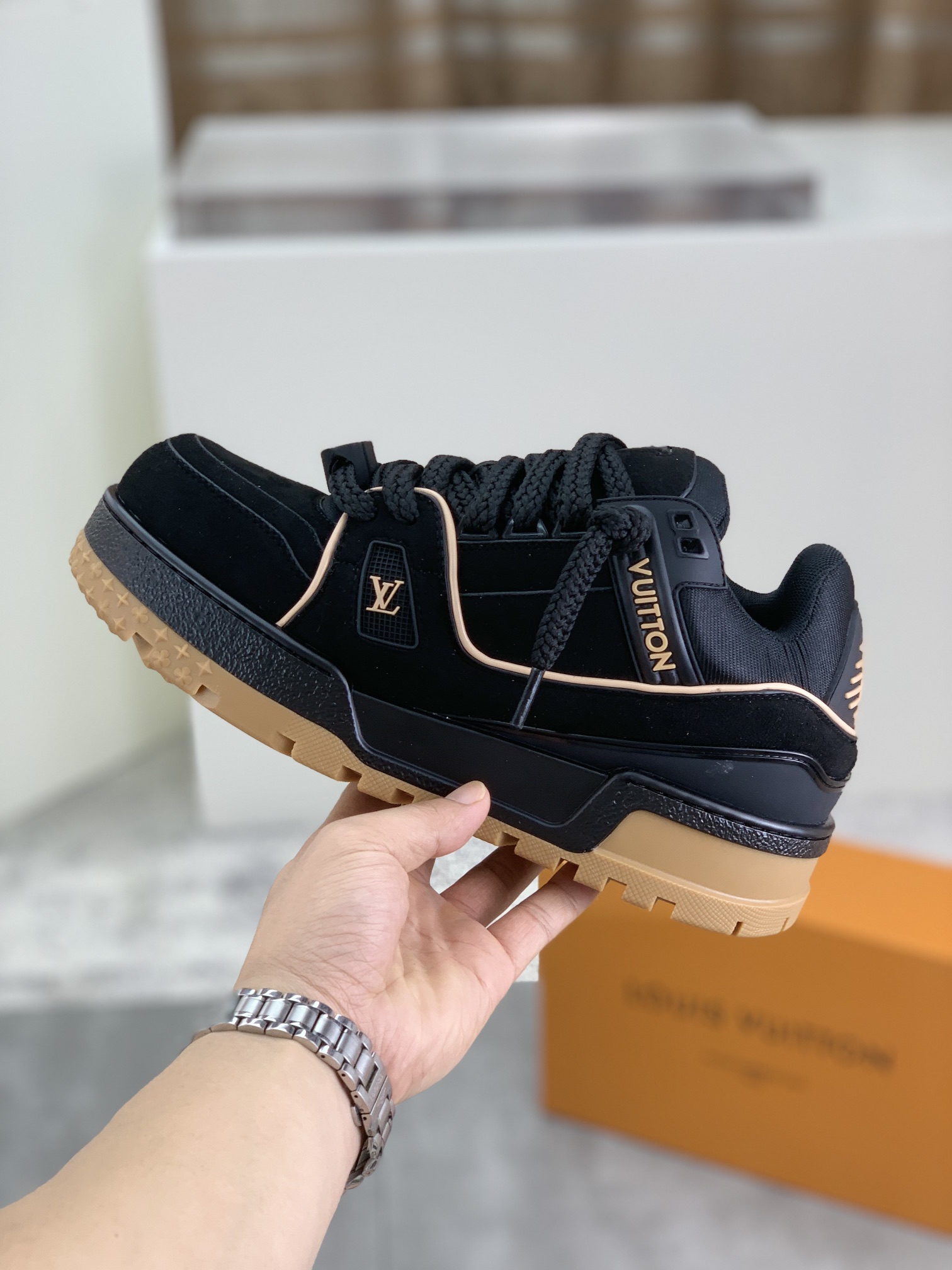 This shoes is AAAAA 1:1 quality (superb). Materials used are identical to the original ones. Louis Vuitton trademark marks are indistinguishable to the authentic. Photos take by actual shoes, what you receive will be 100% same with our photos.