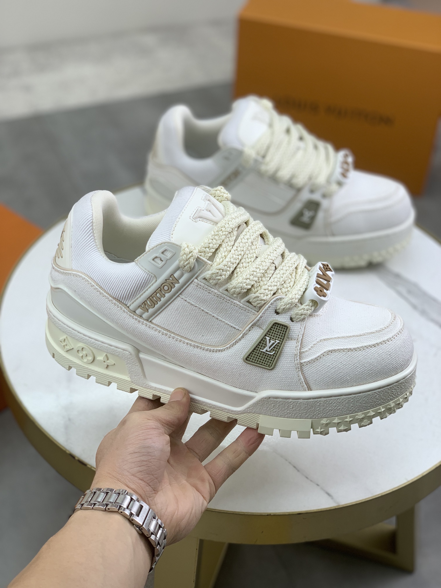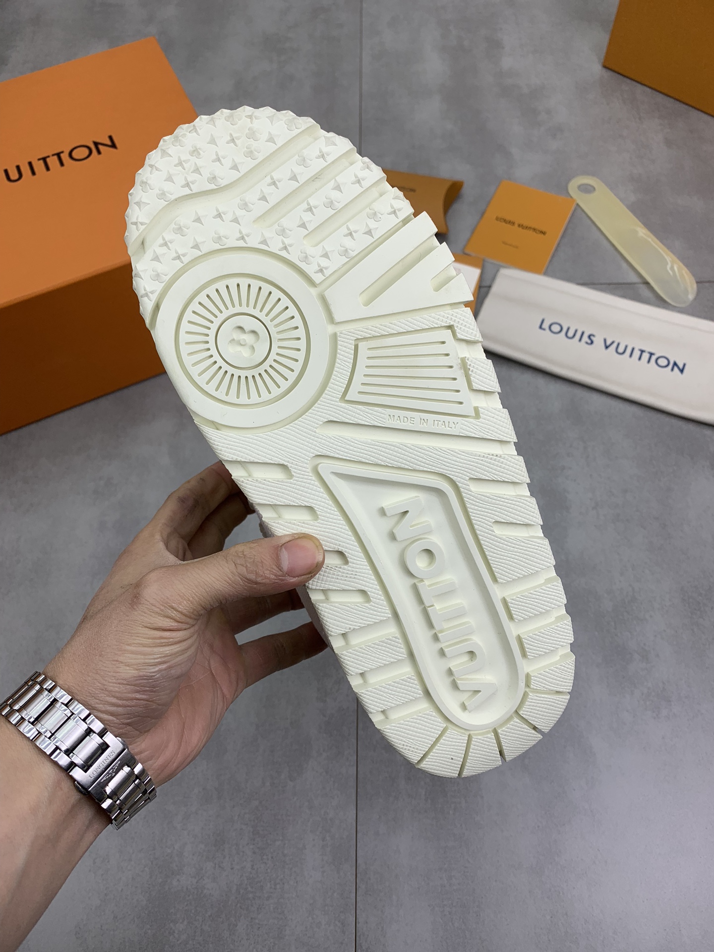 This shoes is AAAAA 1:1 quality (superb). Materials used are identical to the original ones. Louis Vuitton trademark marks are indistinguishable to the authentic. Photos take by actual shoes, what you receive will be 100% same with our photos.