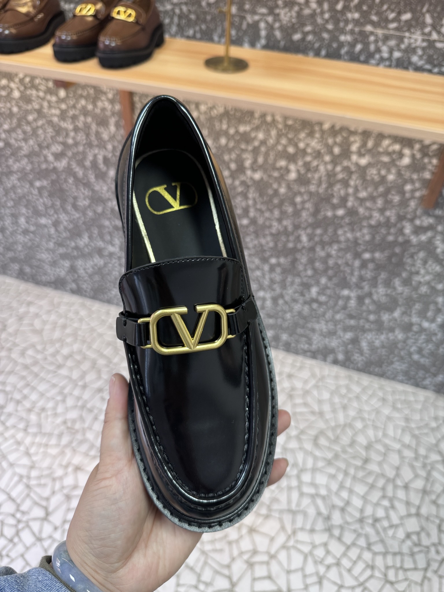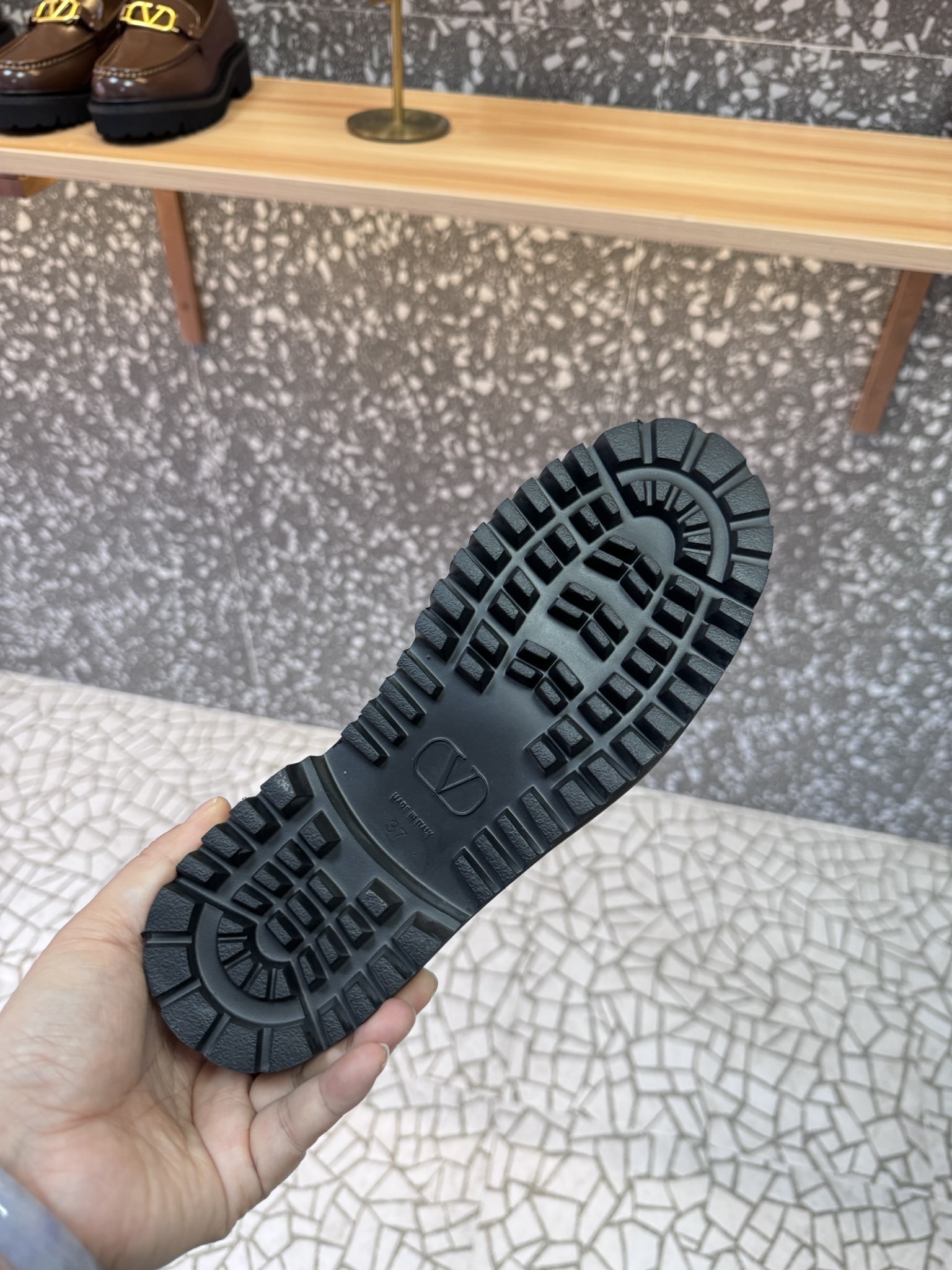 This shoes is AAAAA 1:1 quality (superb). Materials used are identical to the original ones. Valentino trademark marks are indistinguishable to the authentic. Photos take by actual shoes, what you receive will be 100% same with our photos.