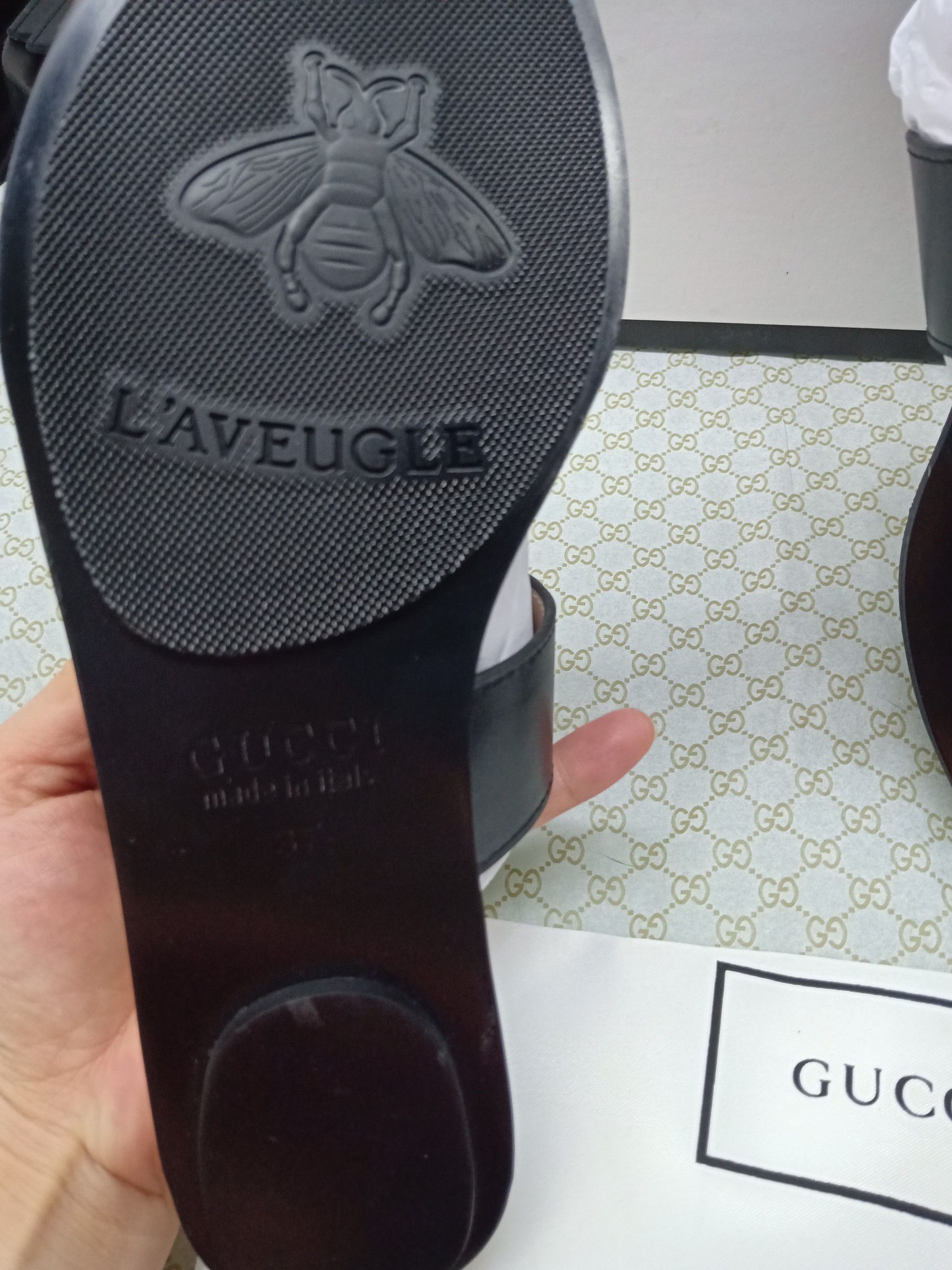 This shoes is AAAAA 1:1 quality (superb). Materials used are identical to the original ones. Gucci trademark marks are indistinguishable to the authentic. Photos take by actual shoes, what you receive will be 100% same with our photos.