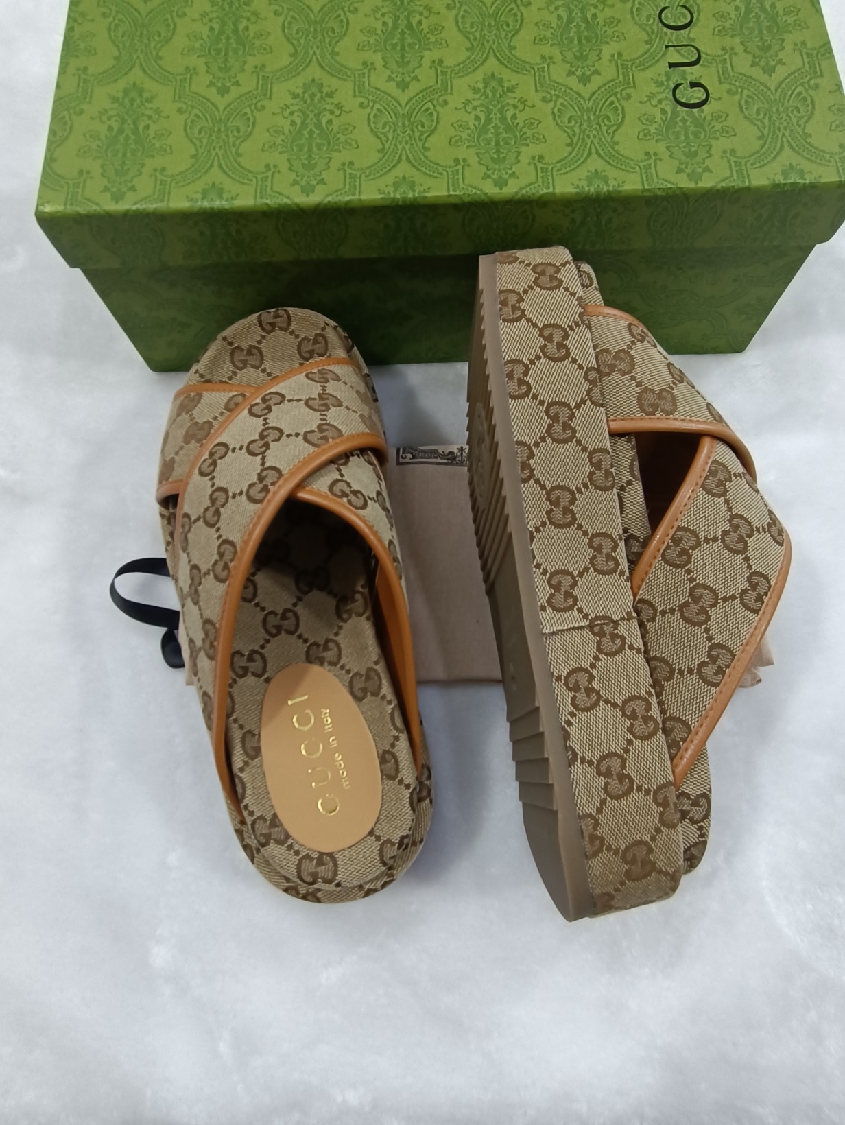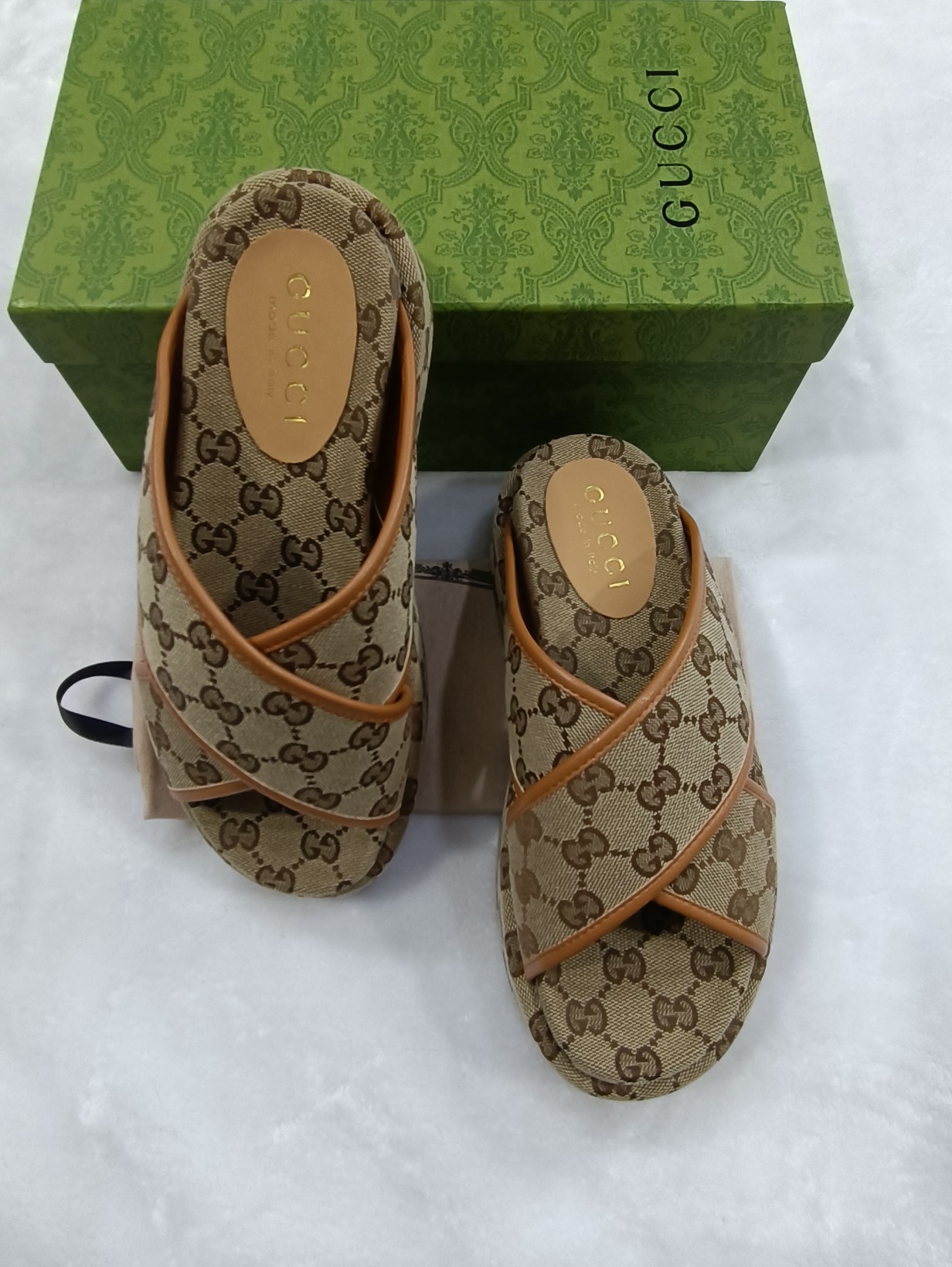 This shoes is AAAAA 1:1 quality (superb). Materials used are identical to the original ones. Gucci trademark marks are indistinguishable to the authentic. Photos take by actual shoes, what you receive will be 100% same with our photos.