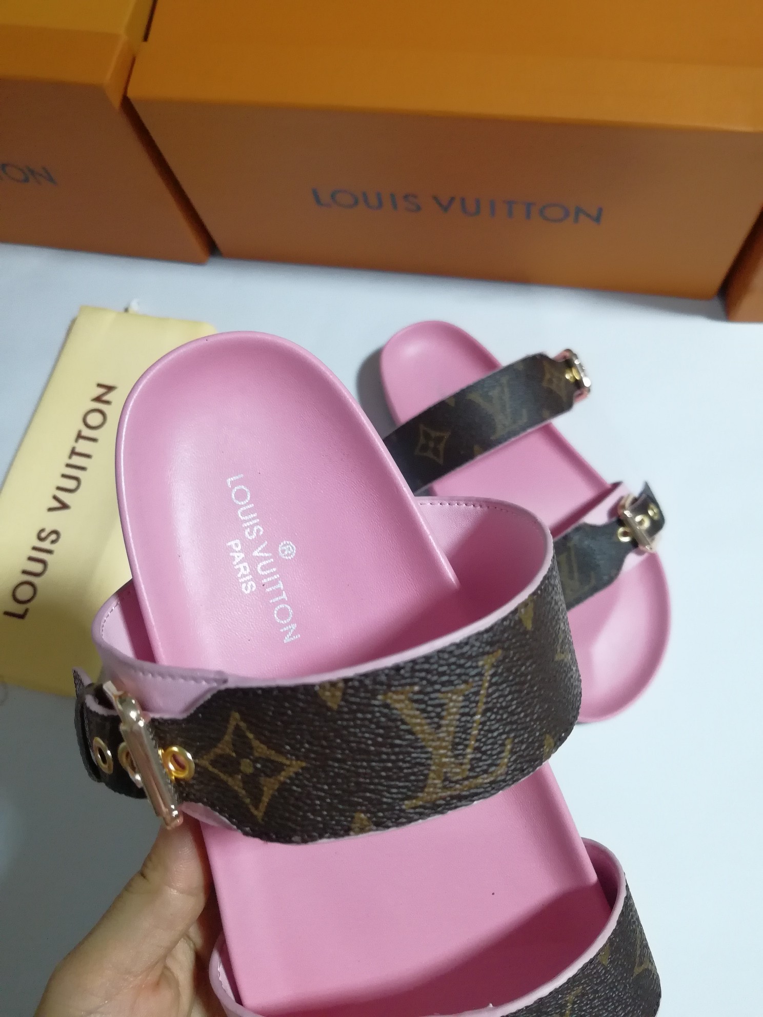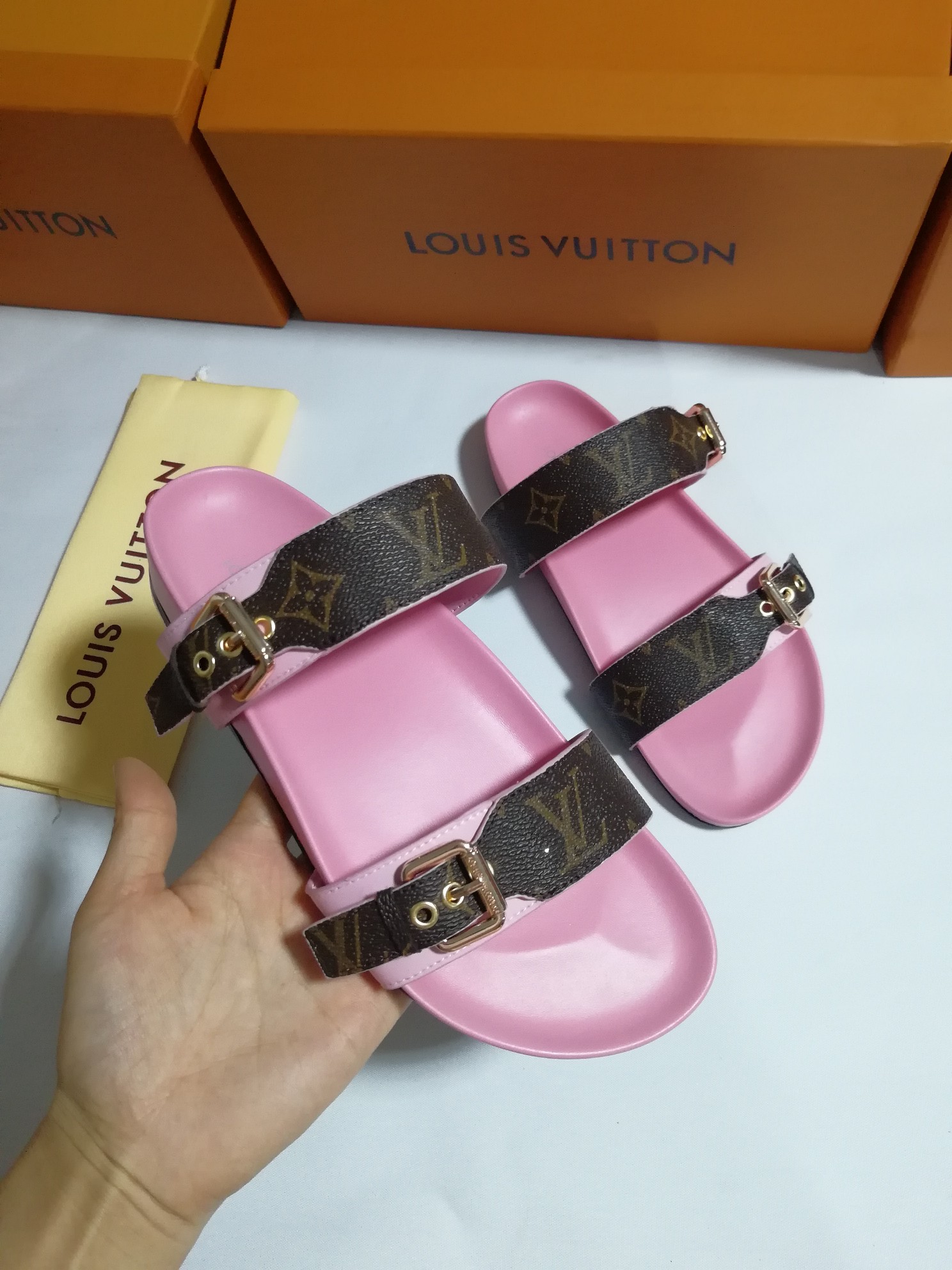 This shoes is AAAAA 1:1 quality (superb). Materials used are identical to the original ones. Louis Vuitton trademark marks are indistinguishable to the authentic. Photos take by actual shoes, what you receive will be 100% same with our photos.