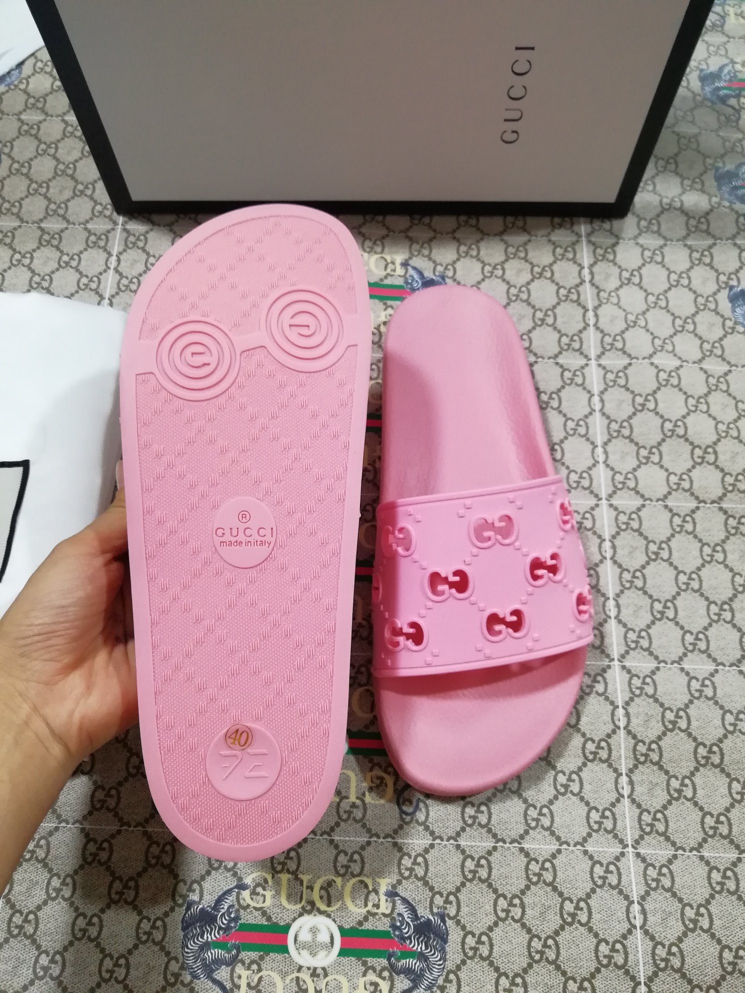 This shoes is AAAAA 1:1 quality (superb). Materials used are identical to the original ones. Gucci trademark marks are indistinguishable to the authentic. Photos take by actual shoes, what you receive will be 100% same with our photos.