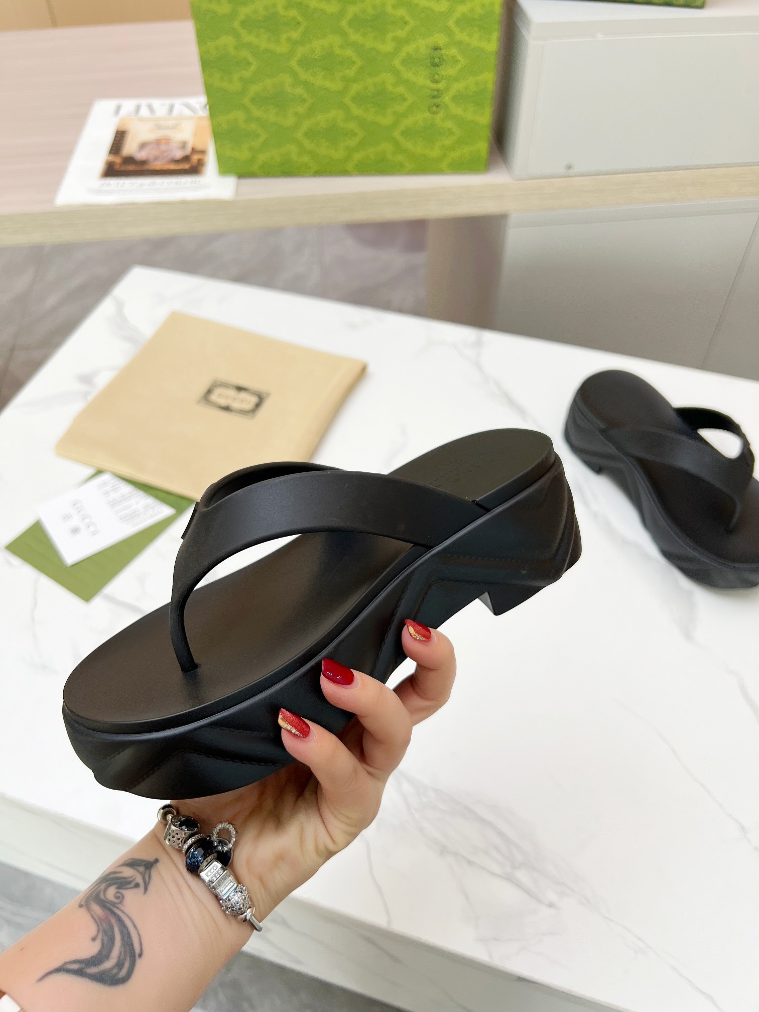 This shoes is AAAAA 1:1 quality (superb). Materials used are identical to the original ones. Gucci trademark marks are indistinguishable to the authentic. Photos take by actual shoes, what you receive will be 100% same with our photos.