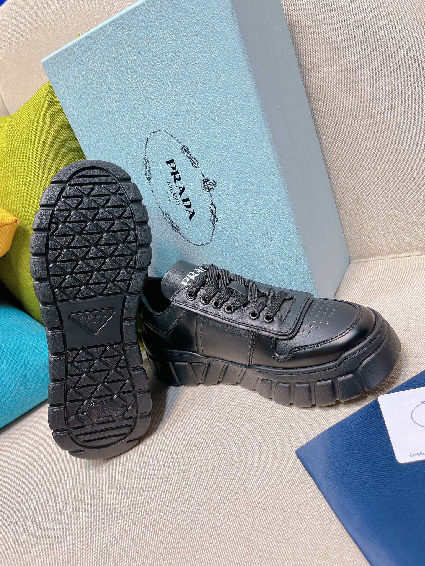 This shoes is AAAAA 1:1 quality (superb). Materials used are identical to the original ones. Prada trademark marks are indistinguishable to the authentic. Photos take by actual shoes, what you receive will be 100% same with our photos.