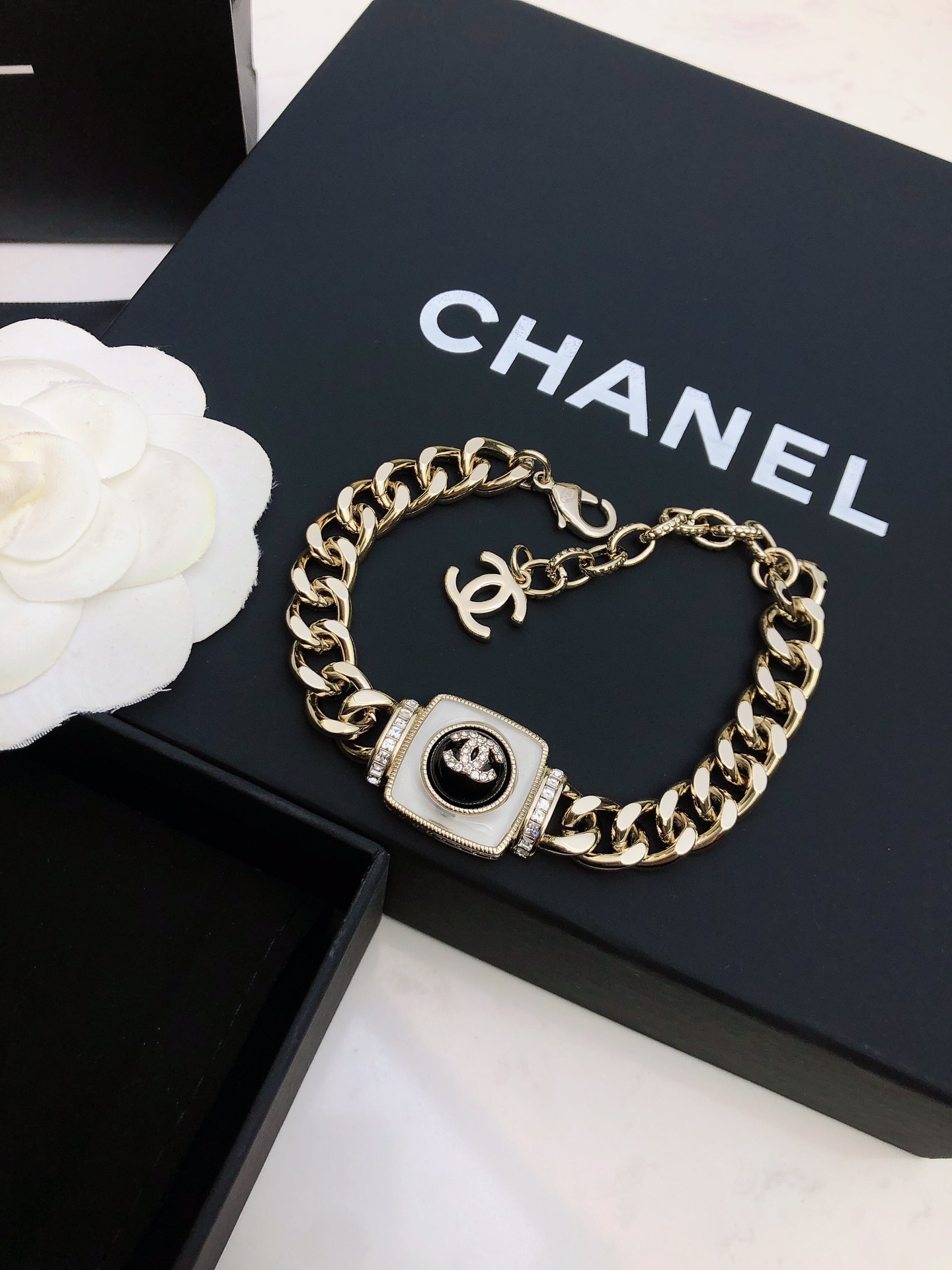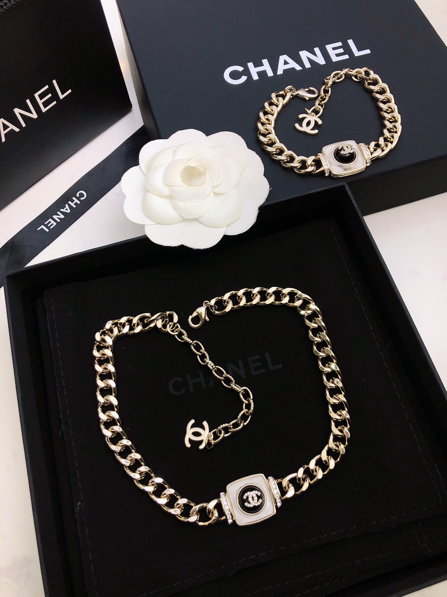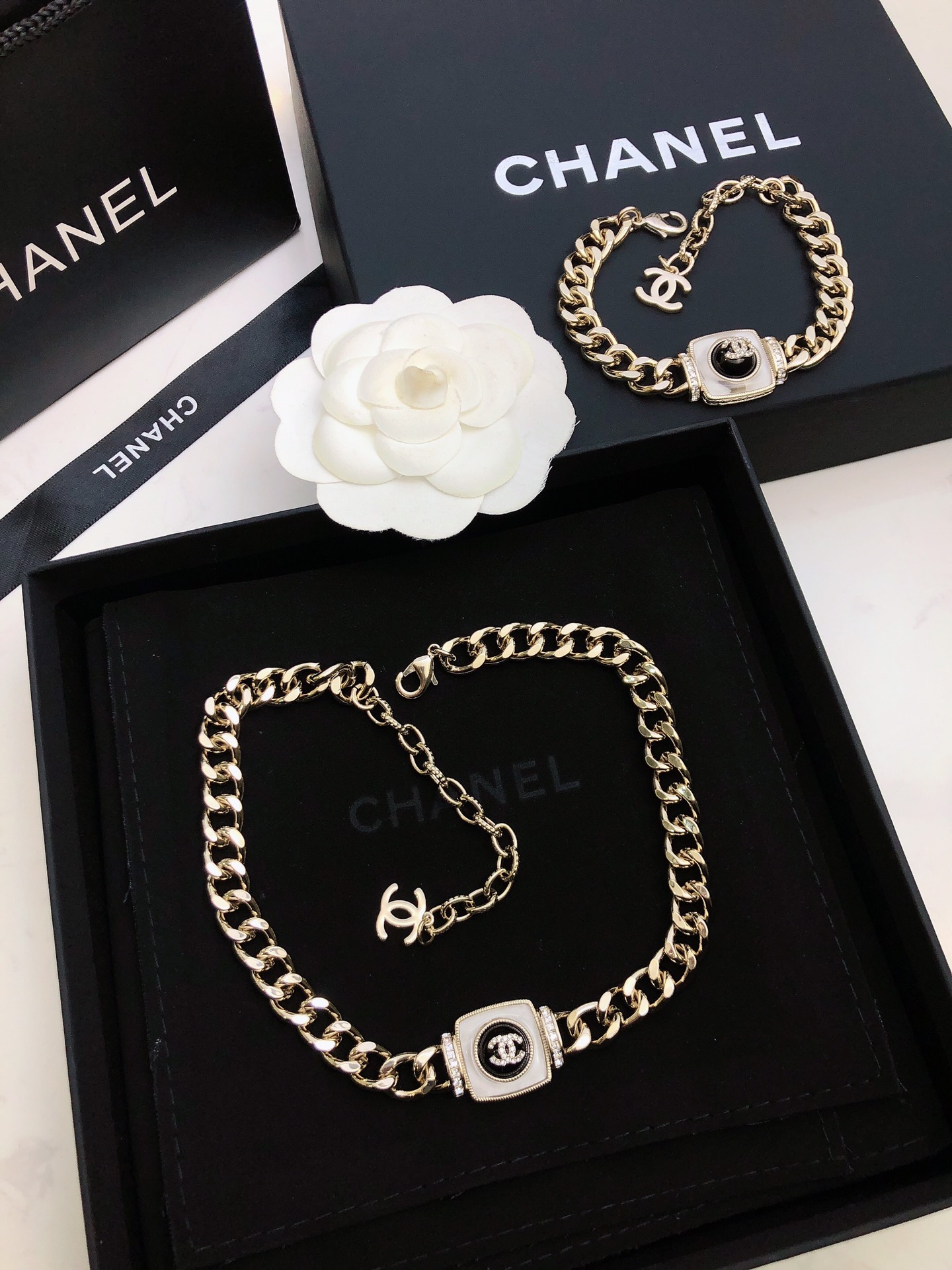 This jewelry is AAAAA 1:1 quality (superb). Materials used are identical to the original ones. Chanel trademark marks are indistinguishable to the authentic. Photos take by actual jewelry, what you receive will be 100% same with our photos.