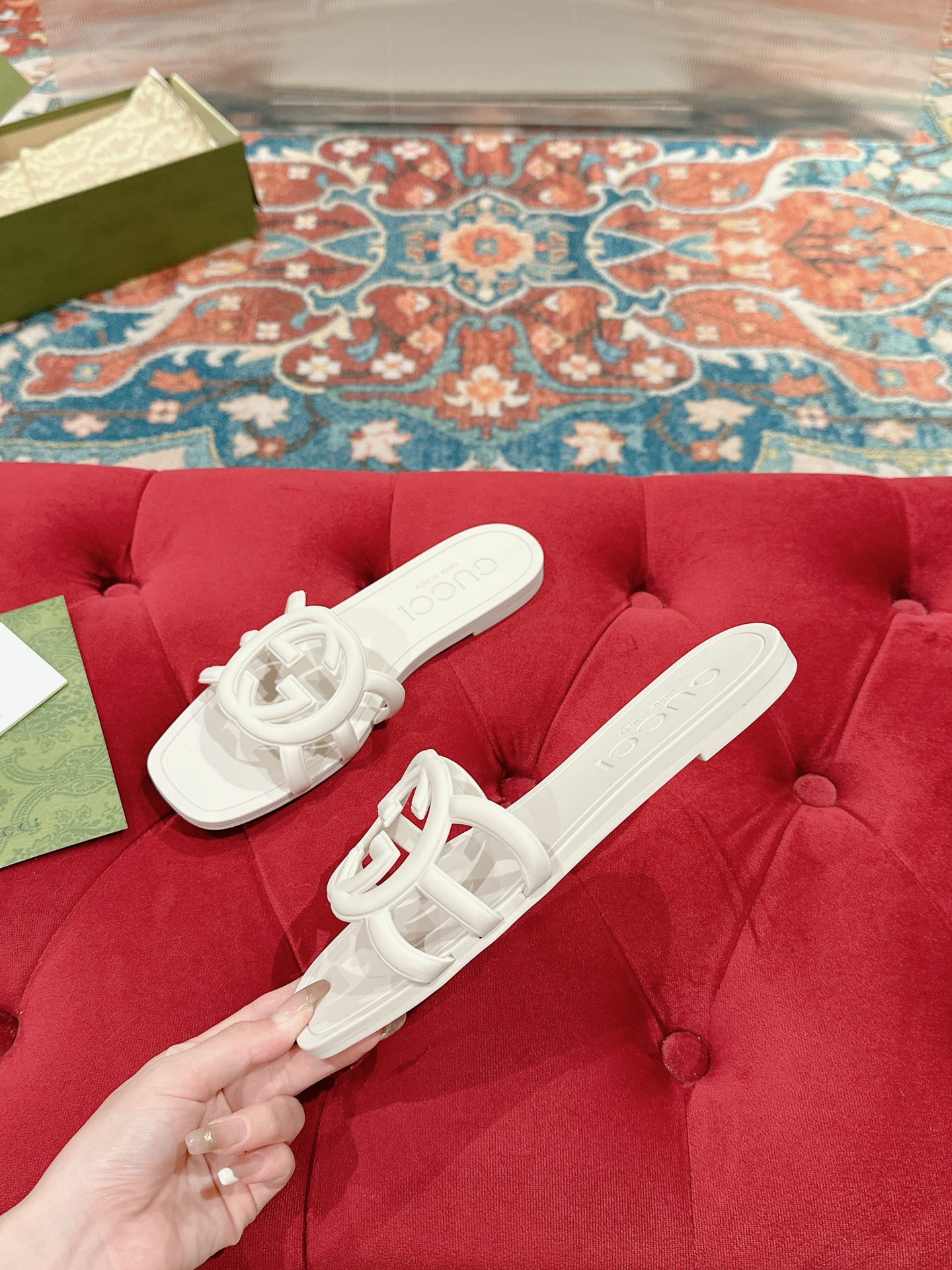 This shoes is AAAAA 1:1 quality (superb). Materials used are identical to the original ones. Gucci trademark marks are indistinguishable to the authentic. Photos take by actual shoes, what you receive will be 100% same with our photos.