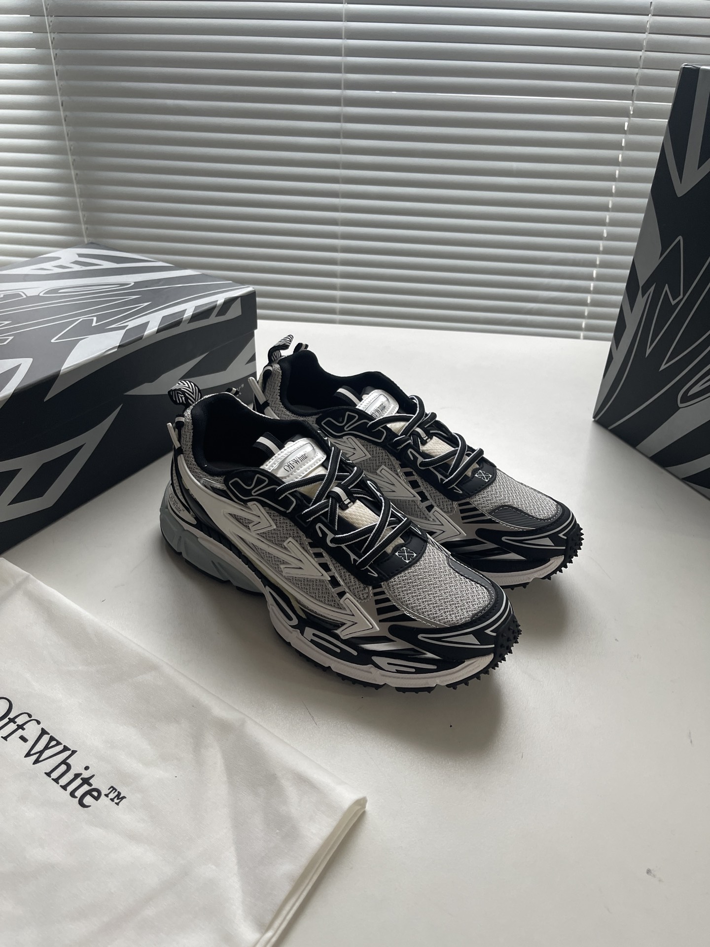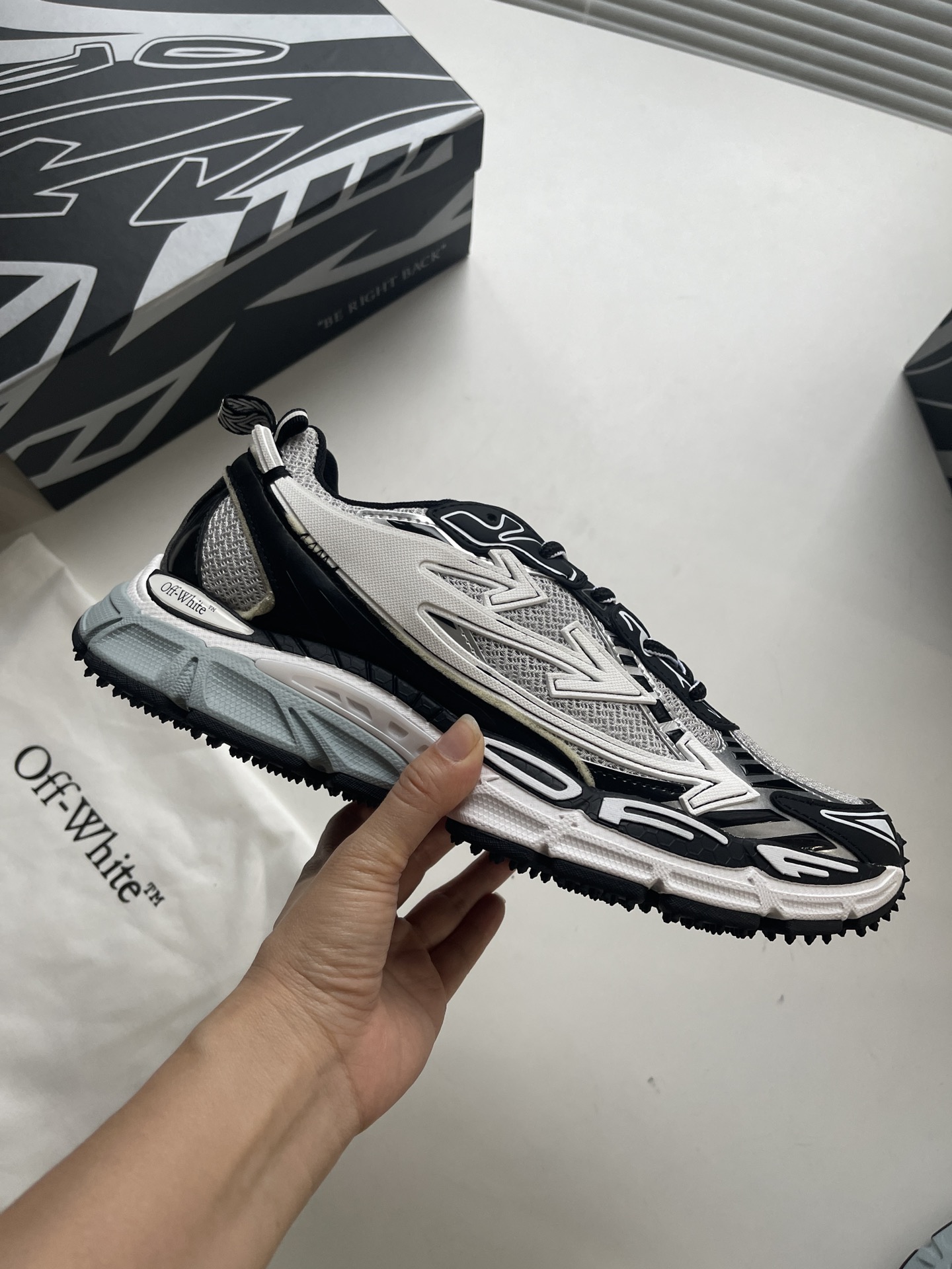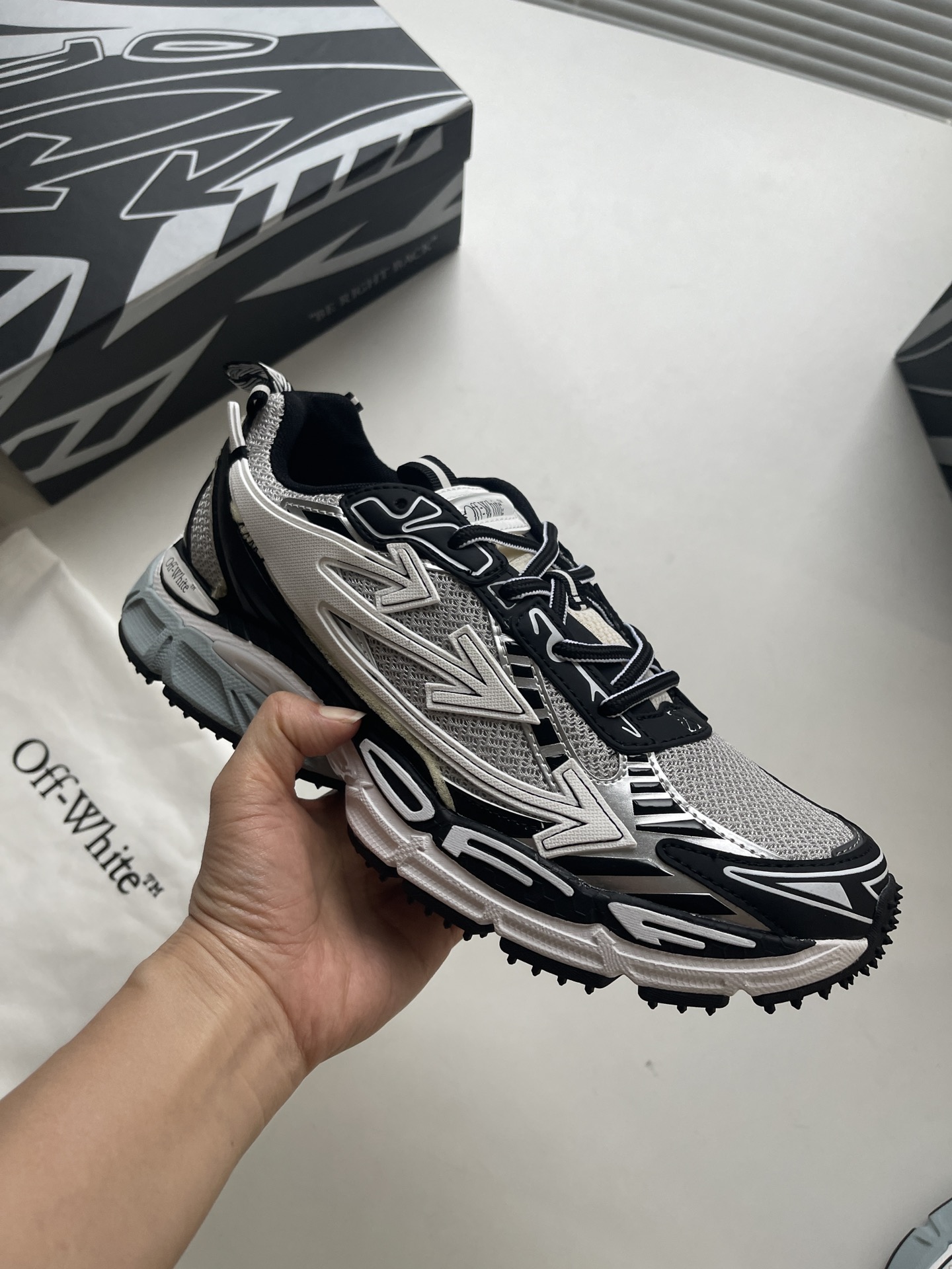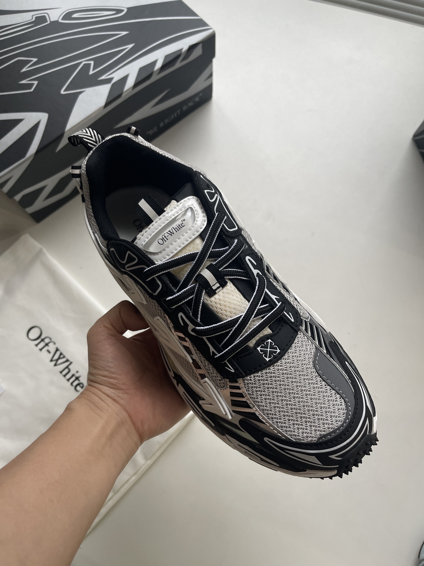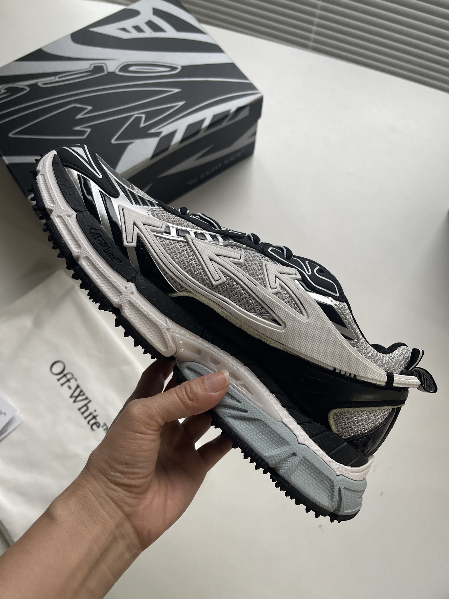 This shoes is AAAAA 1:1 quality (superb). Materials used are identical to the original ones. OFF WHITE trademark marks are indistinguishable to the authentic. Photos take by actual shoes, what you receive will be 100% same with our photos.