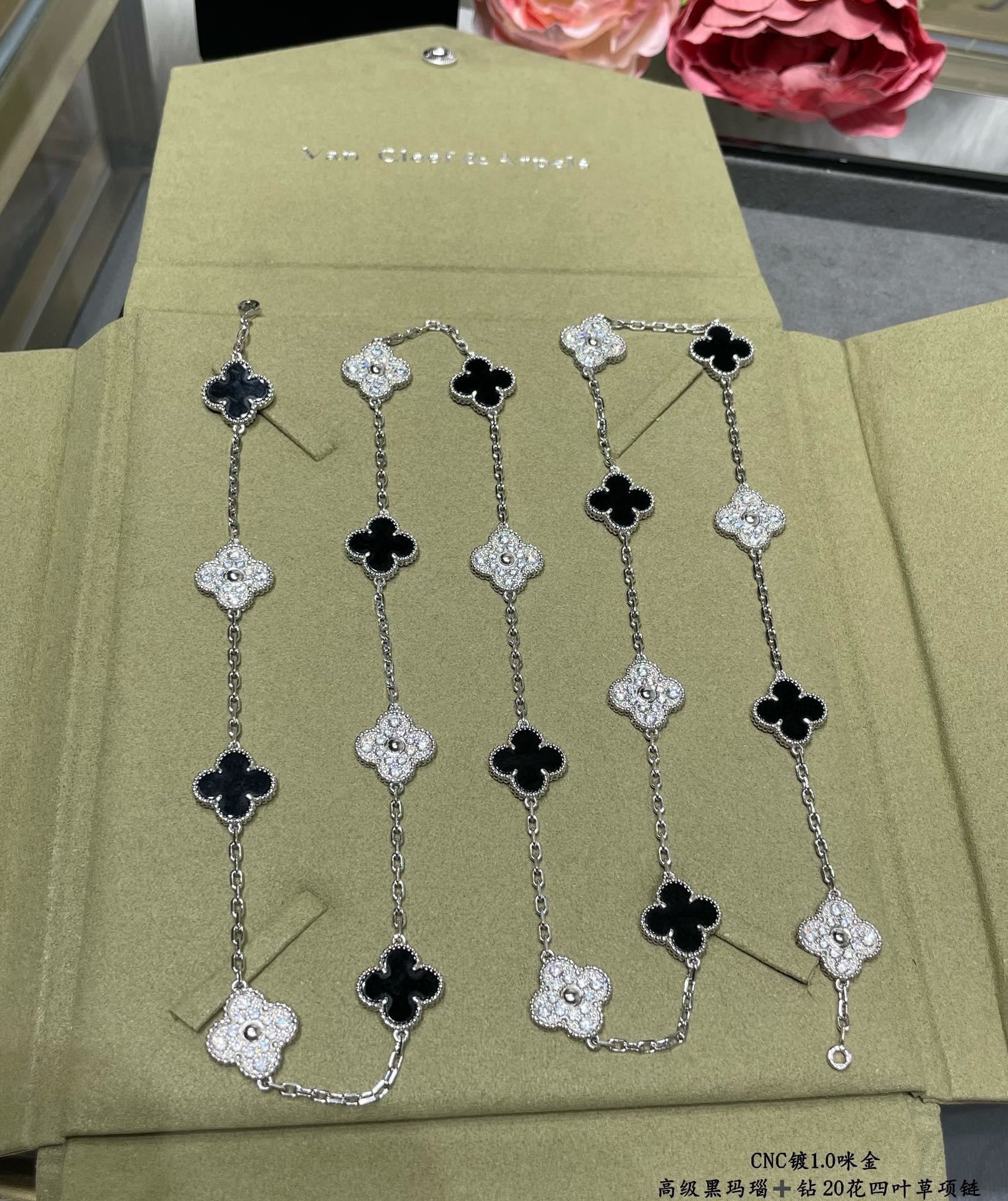 This jewelry is AAAAA 1:1 quality (superb). Materials used are identical to the original ones. Van Cleef & Arpels trademark marks are indistinguishable to the authentic. Photos take by actual jewelry, what you receive will be 100% same with our photos.