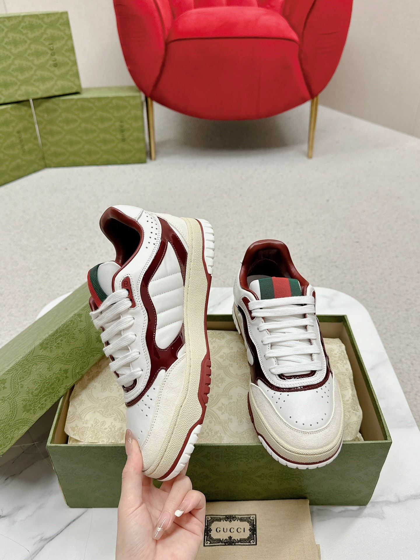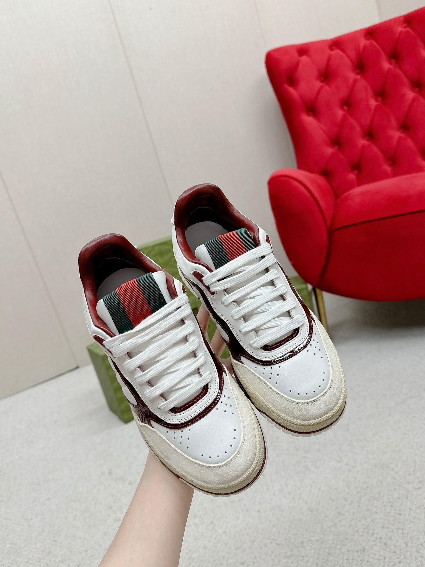 This shoes is AAAAA 1:1 quality (superb). Materials used are identical to the original ones. Gucci trademark marks are indistinguishable to the authentic. Photos take by actual shoes, what you receive will be 100% same with our photos.