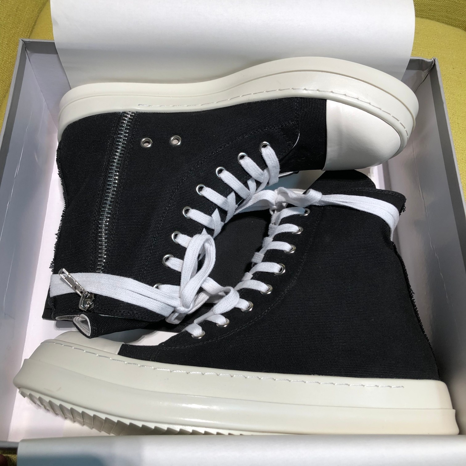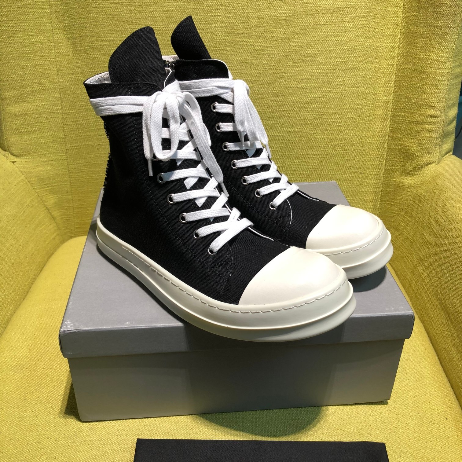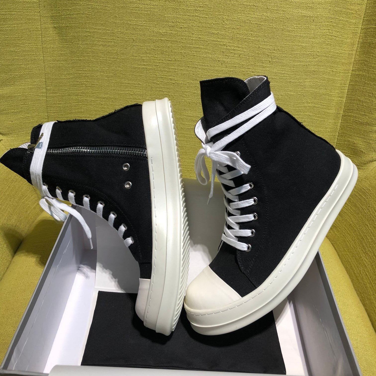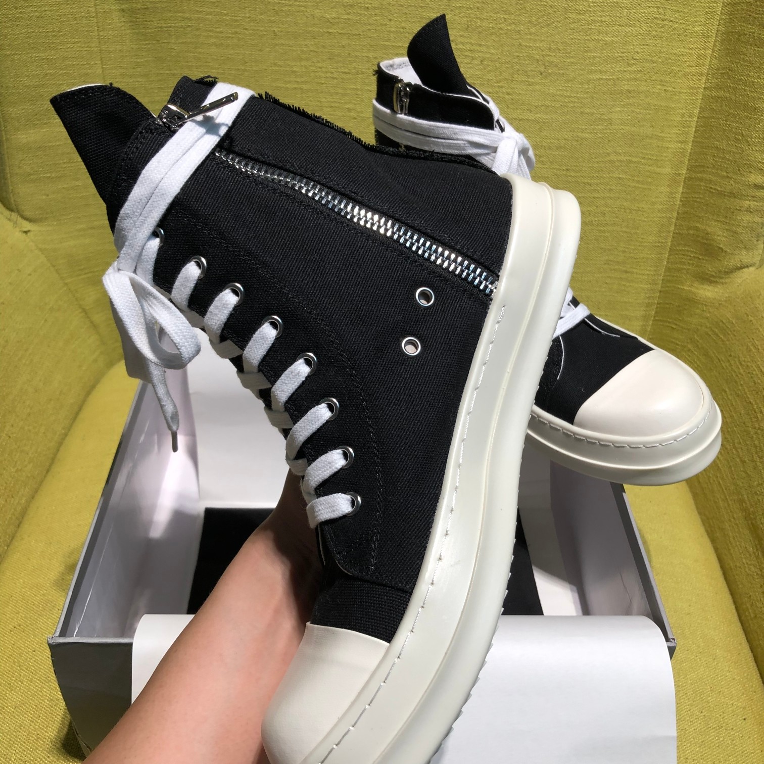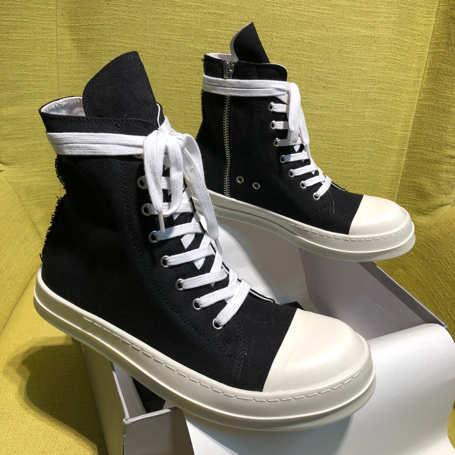 This shoes is AAAAA 1:1 quality (superb). Materials used are identical to the original ones. Rick Owens trademark marks are indistinguishable to the authentic. Photos take by actual shoes, what you receive will be 100% same with our photos.