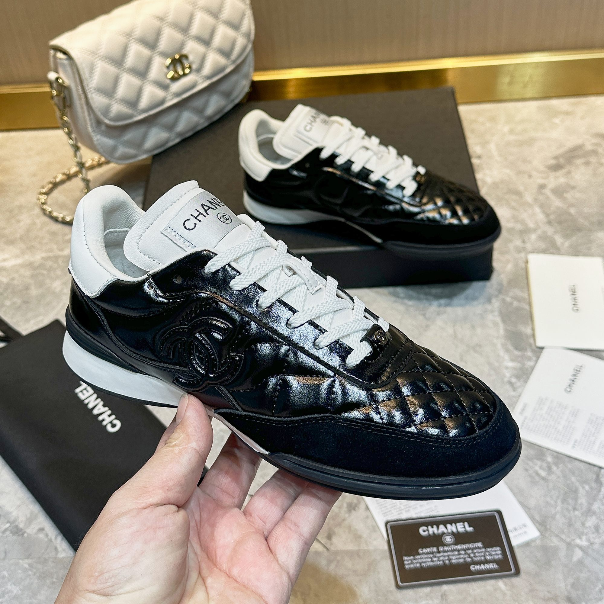 This shoes is AAAAA 1:1 quality (superb). Materials used are identical to the original ones. Chanel trademark marks are indistinguishable to the authentic. Photos take by actual shoes, what you receive will be 100% same with our photos.