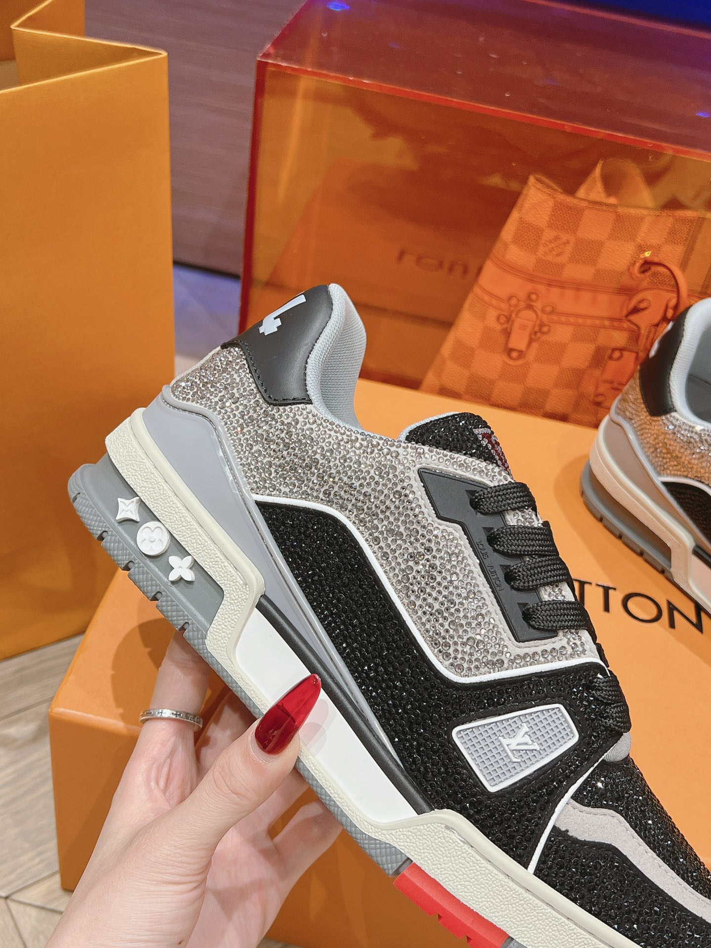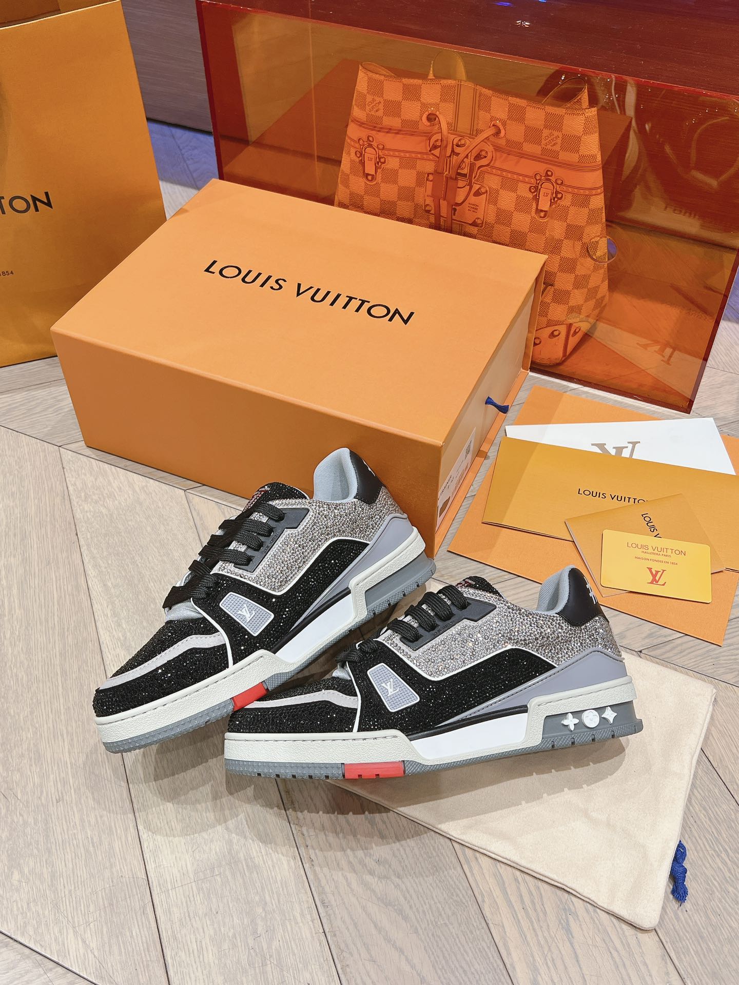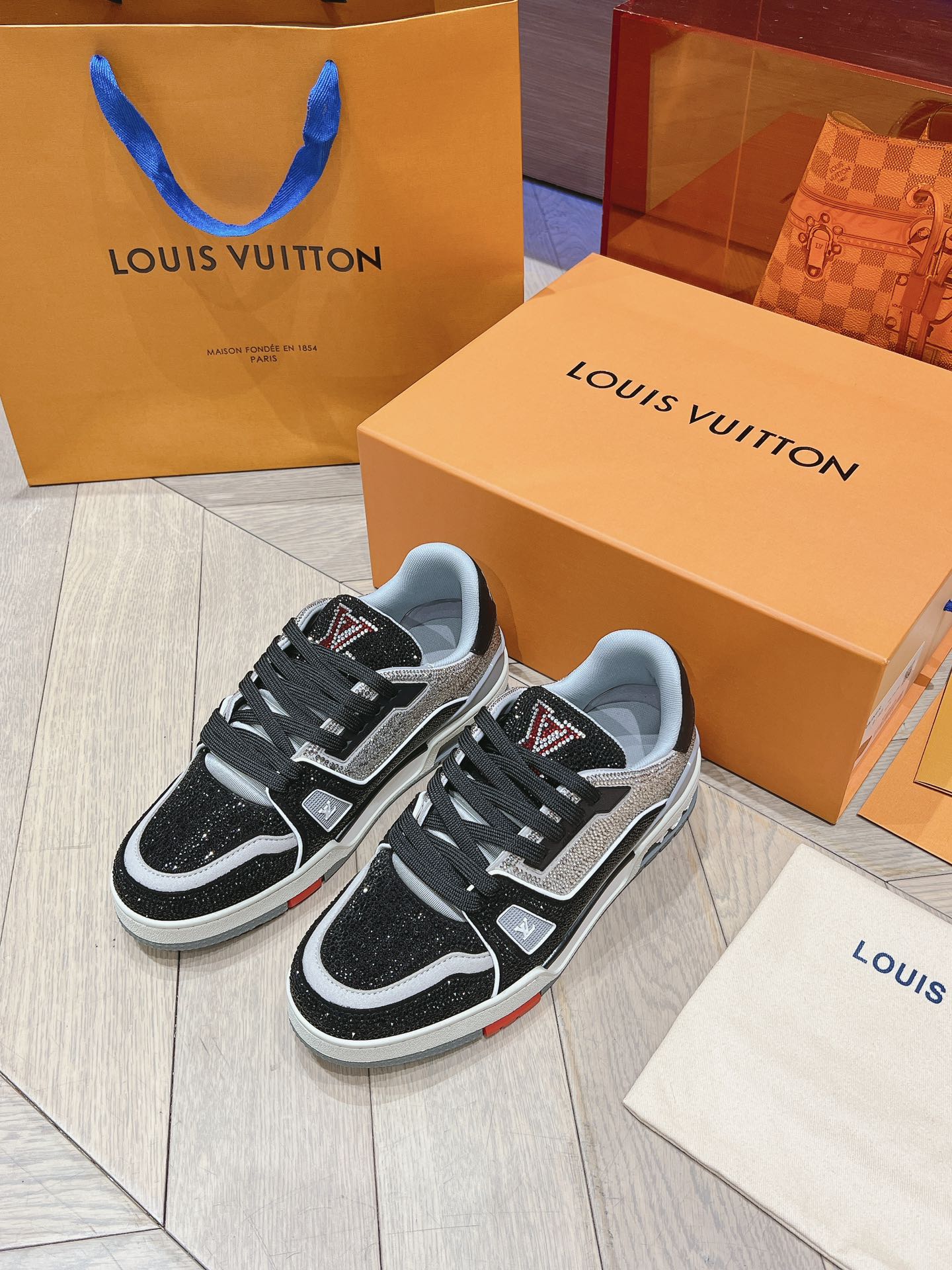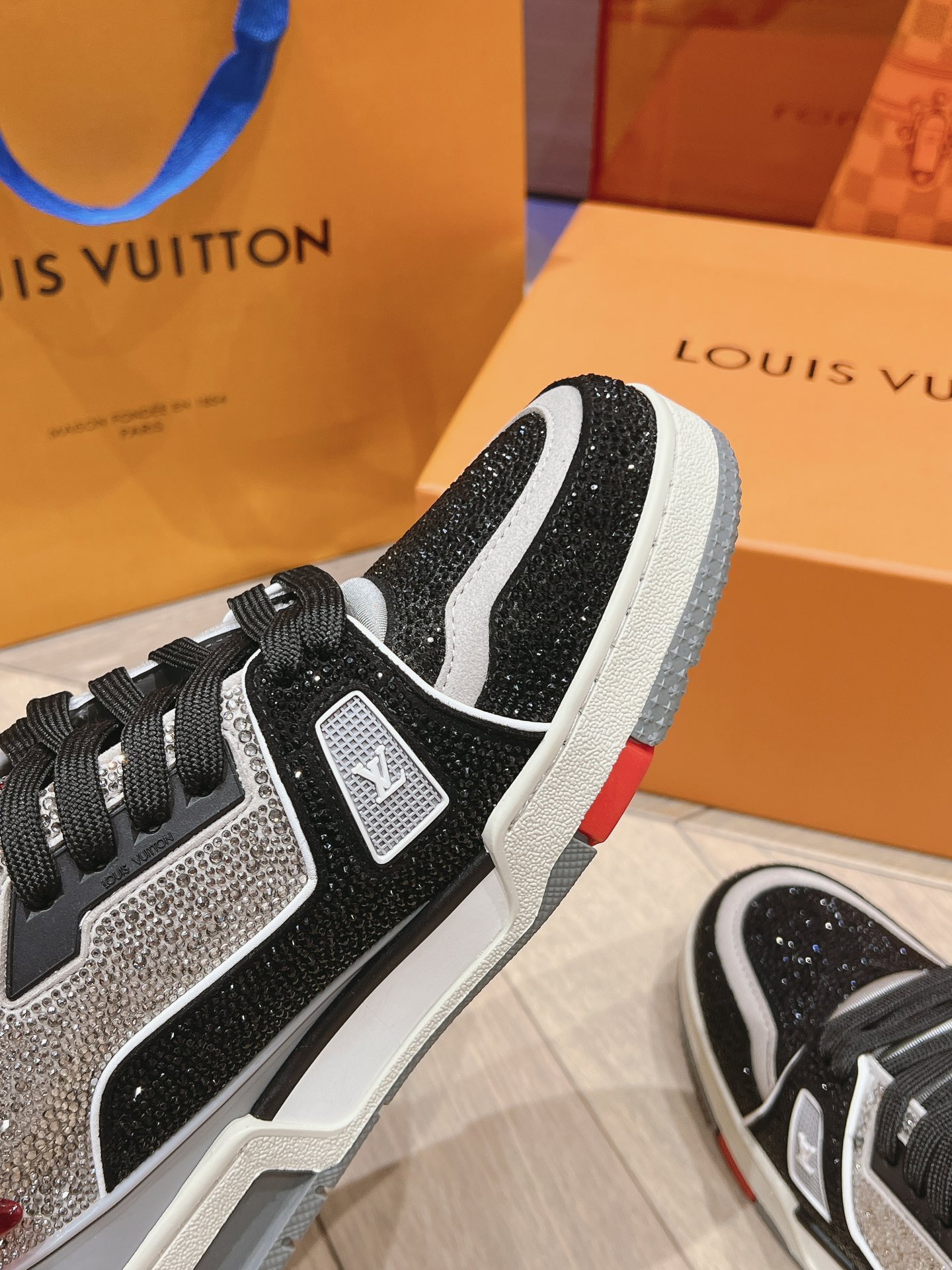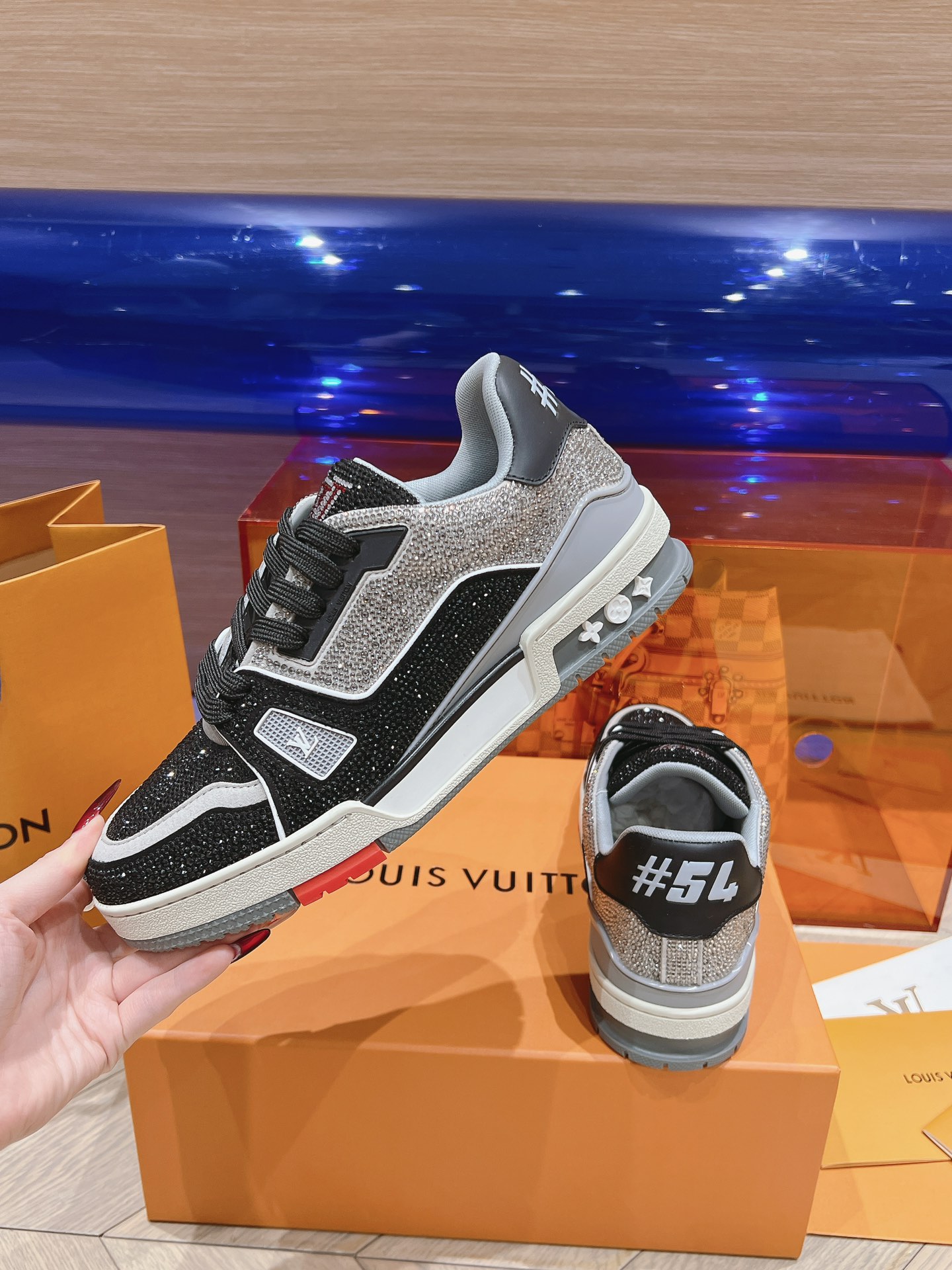 This shoes is AAAAA 1:1 quality (superb). Materials used are identical to the original ones. Louis Vuitton trademark marks are indistinguishable to the authentic. Photos take by actual shoes, what you receive will be 100% same with our photos.
