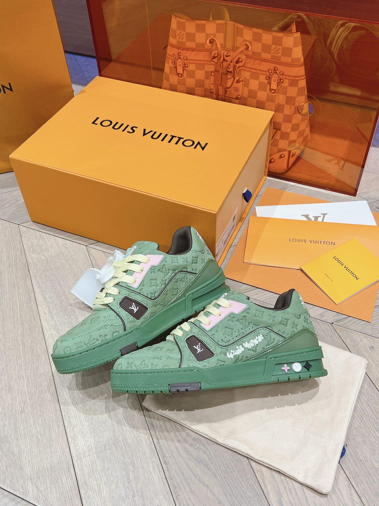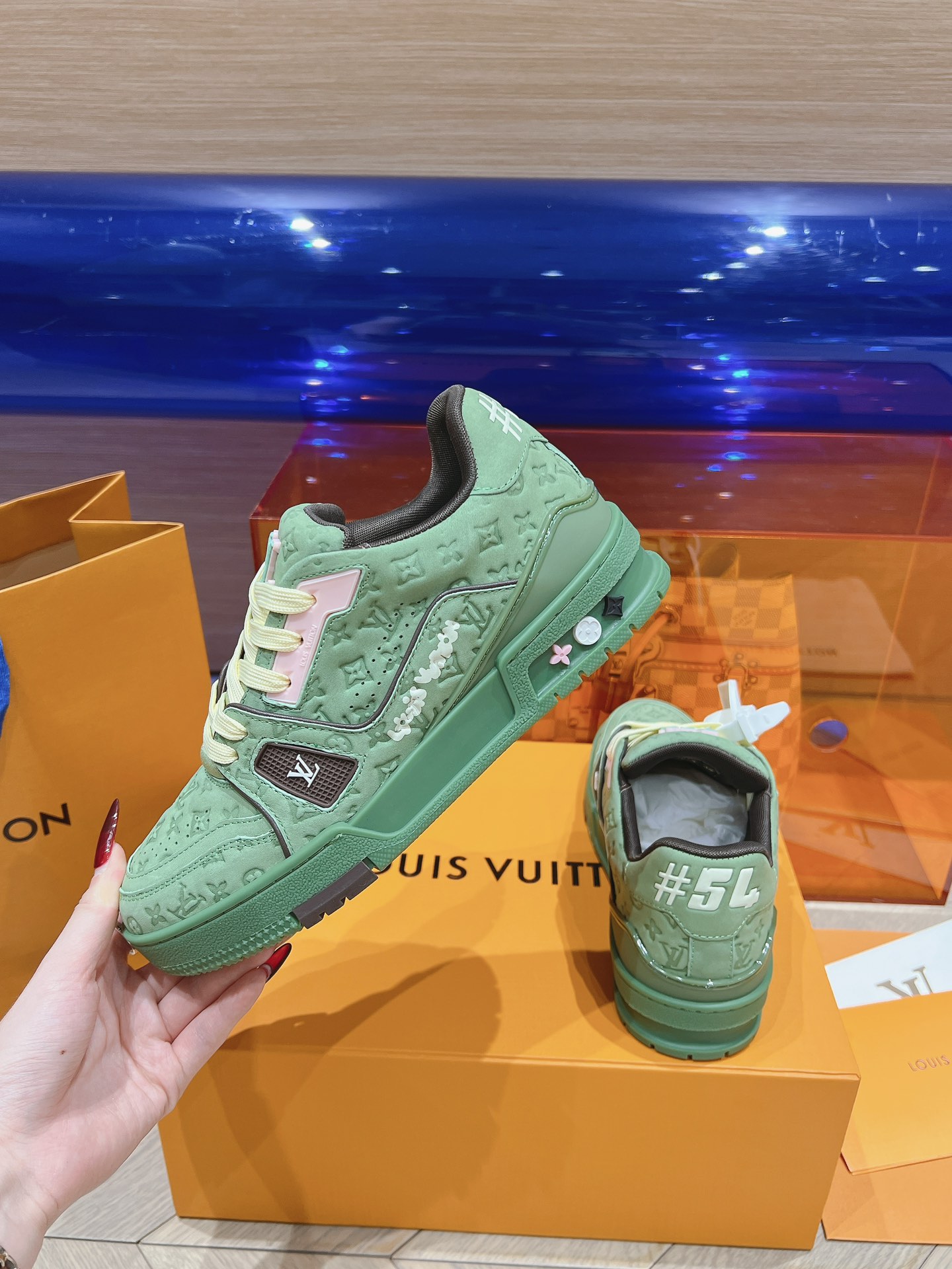 This shoes is AAAAA 1:1 quality (superb). Materials used are identical to the original ones. Louis Vuitton trademark marks are indistinguishable to the authentic. Photos take by actual shoes, what you receive will be 100% same with our photos.